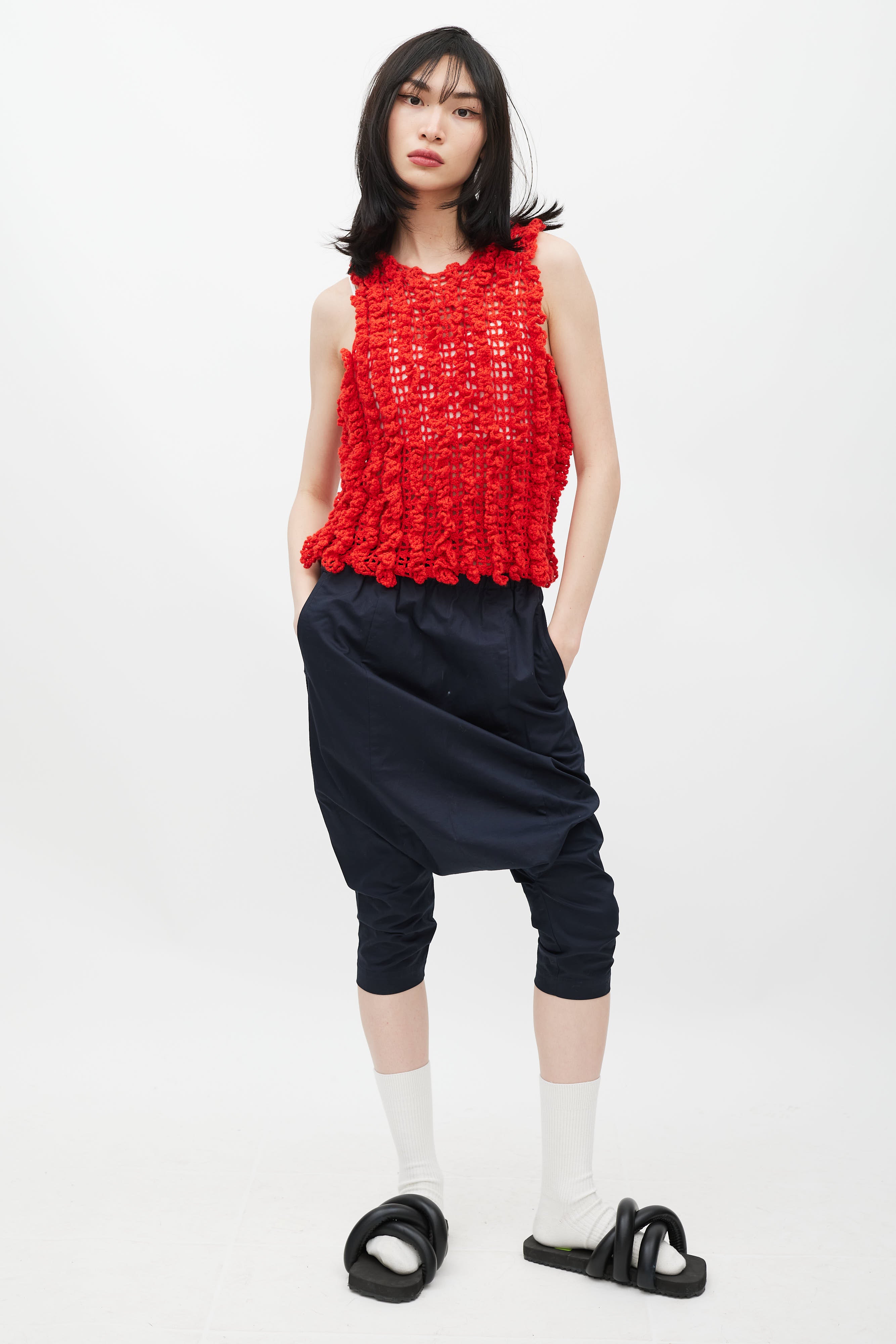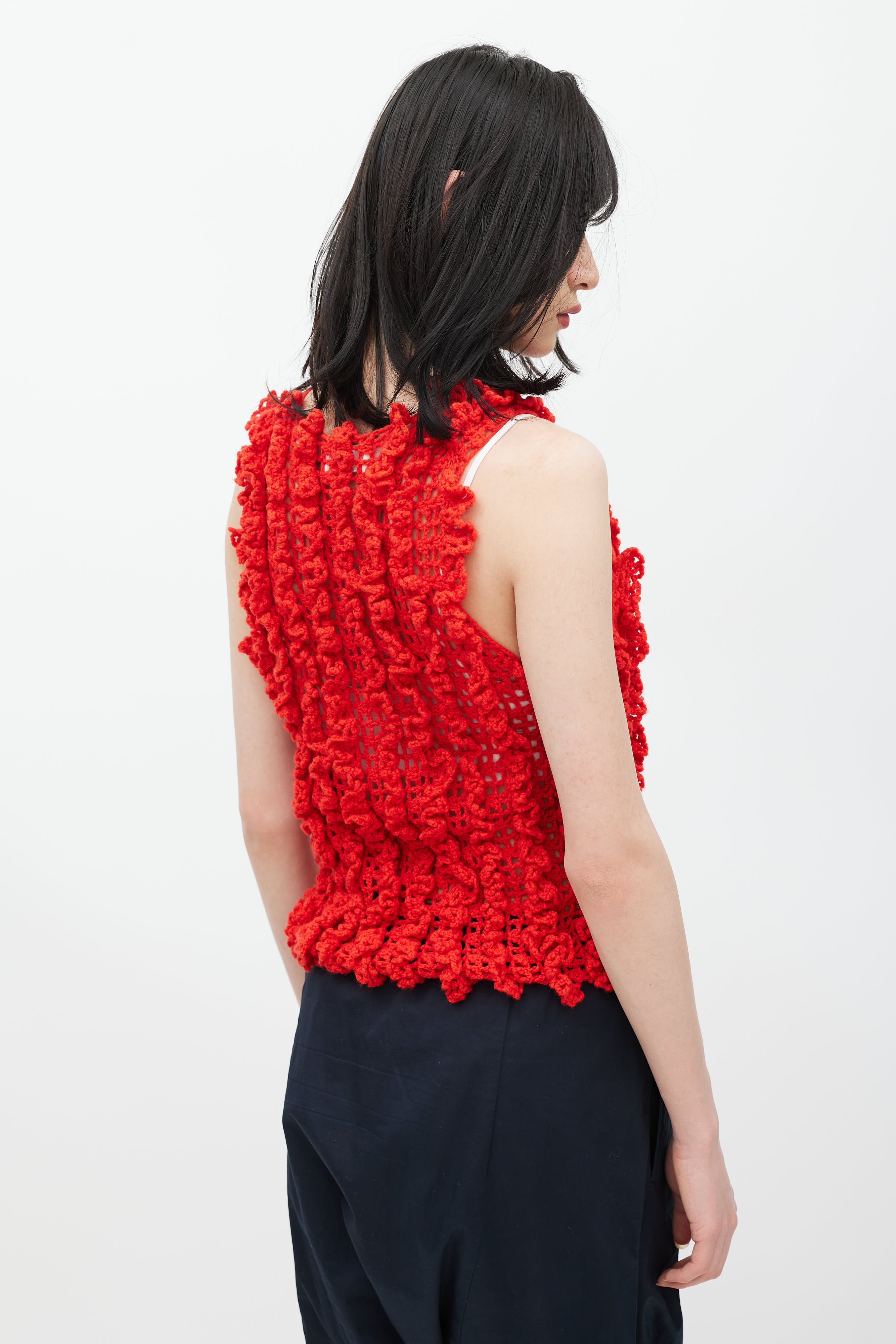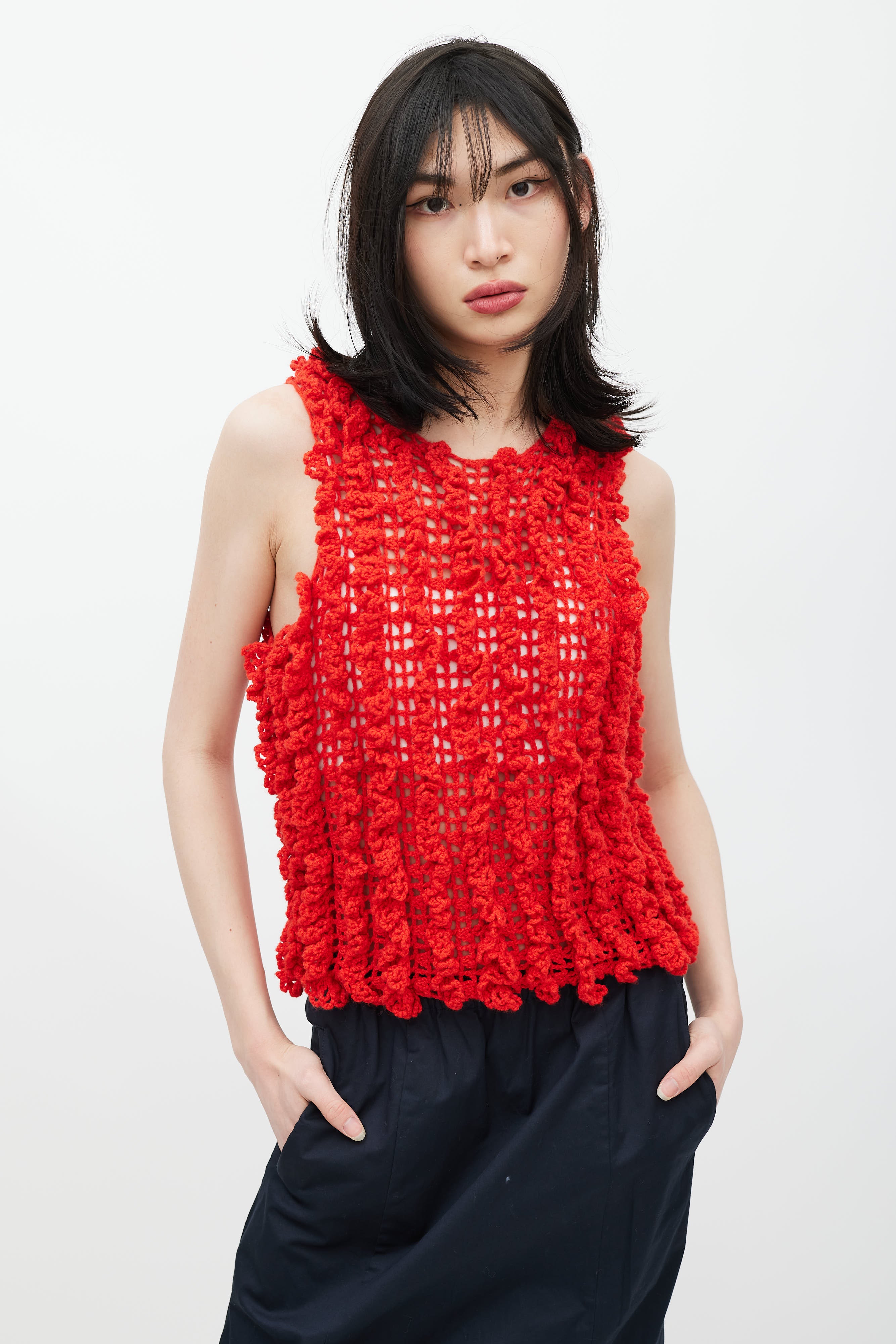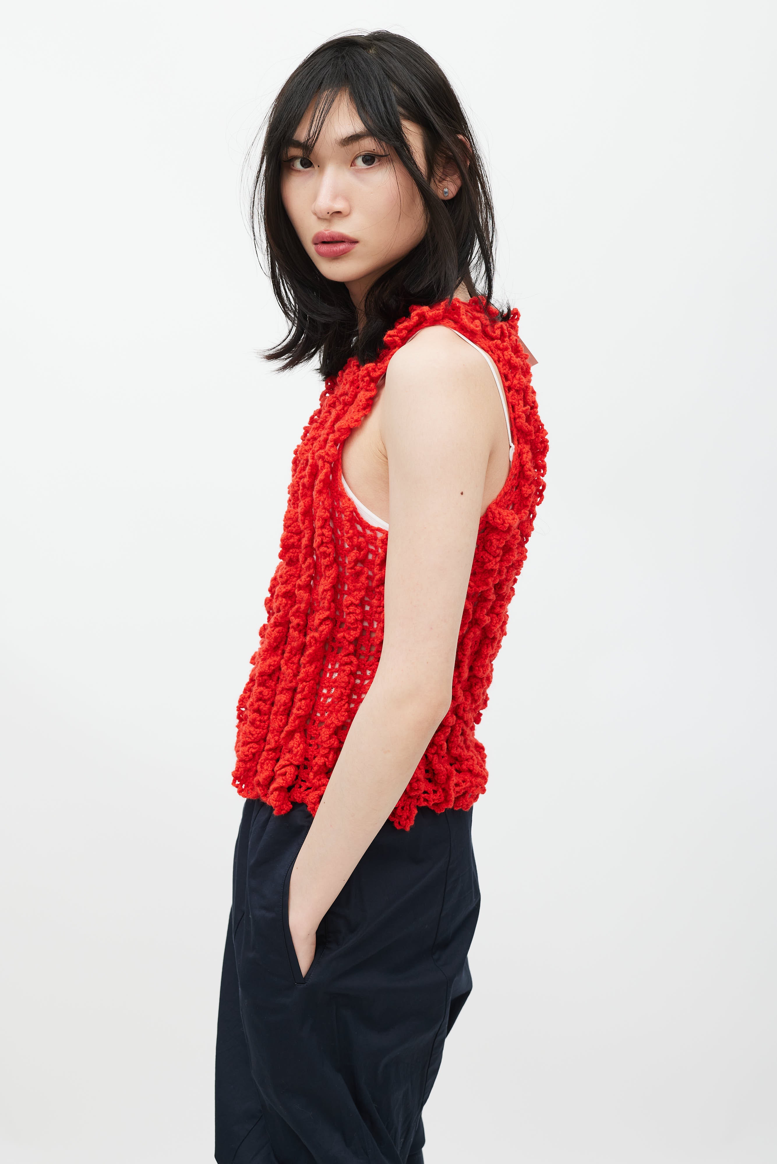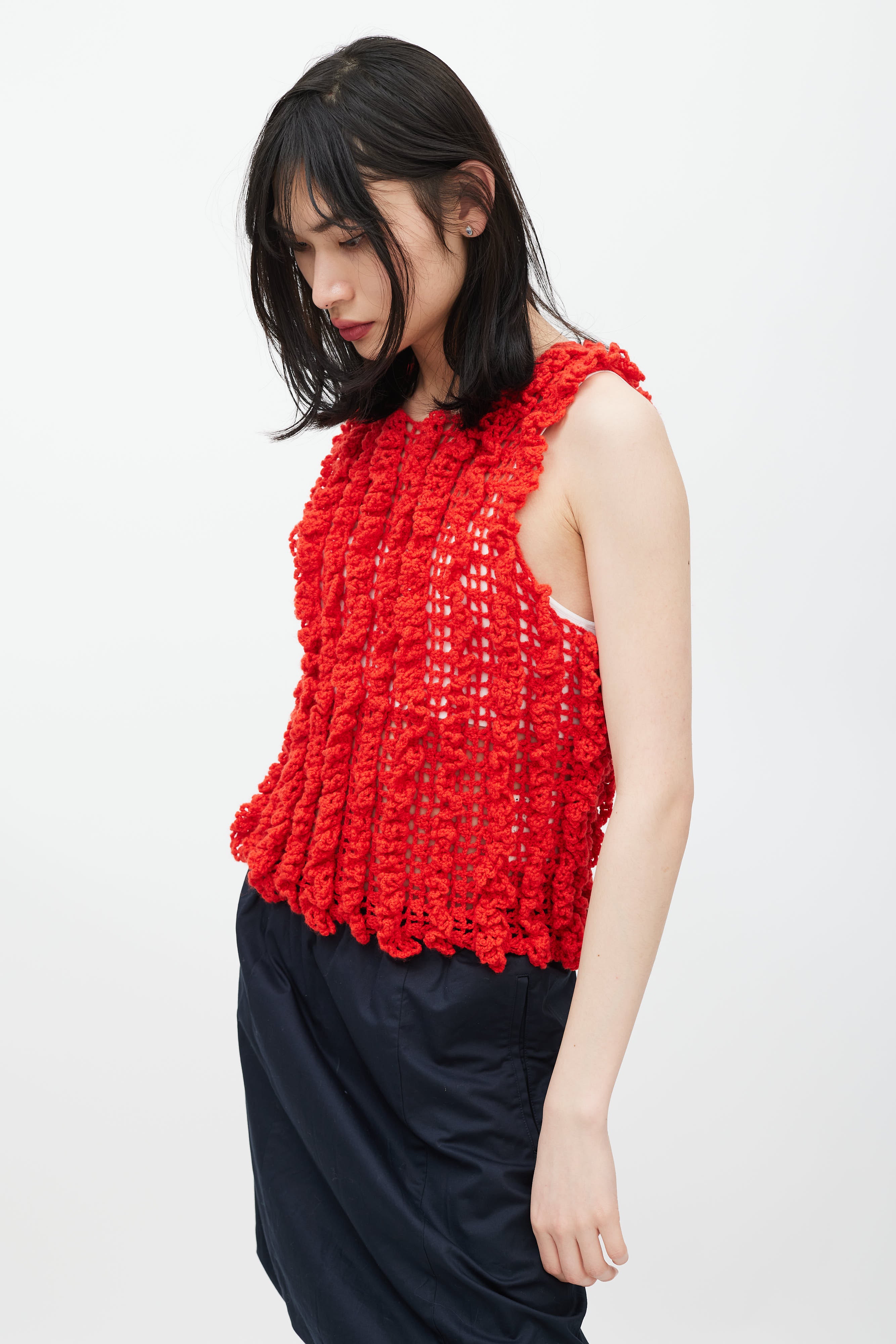 Pre-owned Comme des Garçons GIRL red vest featuring a round neckline, crocheted detailing, and sleeveless styling.