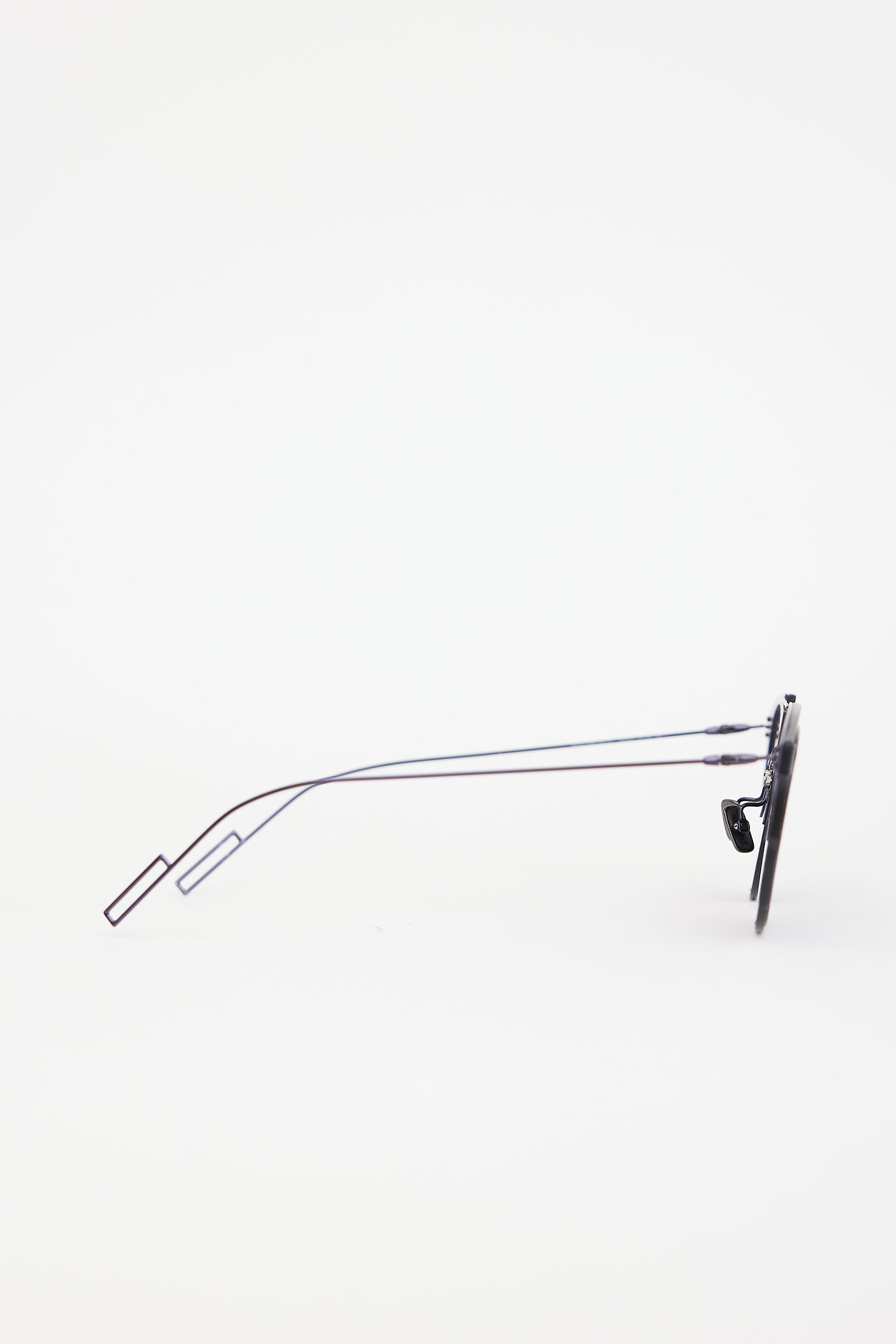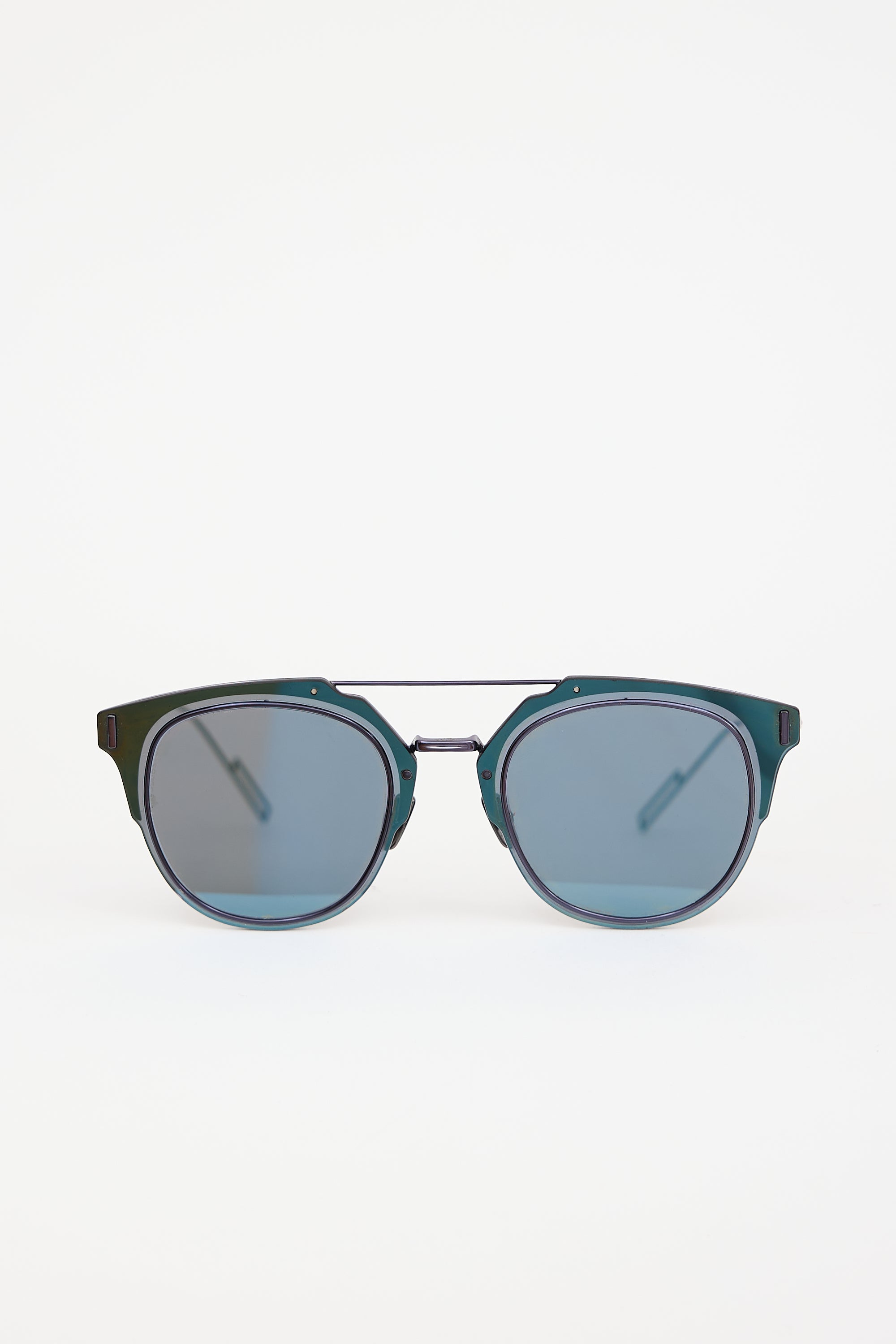 Pre-owned Dior Homme Dior Composit 1.0 sunglasses featuring blue tinted mirrored lenses, navy round wire frame, and etched CD logo at nose bridge.