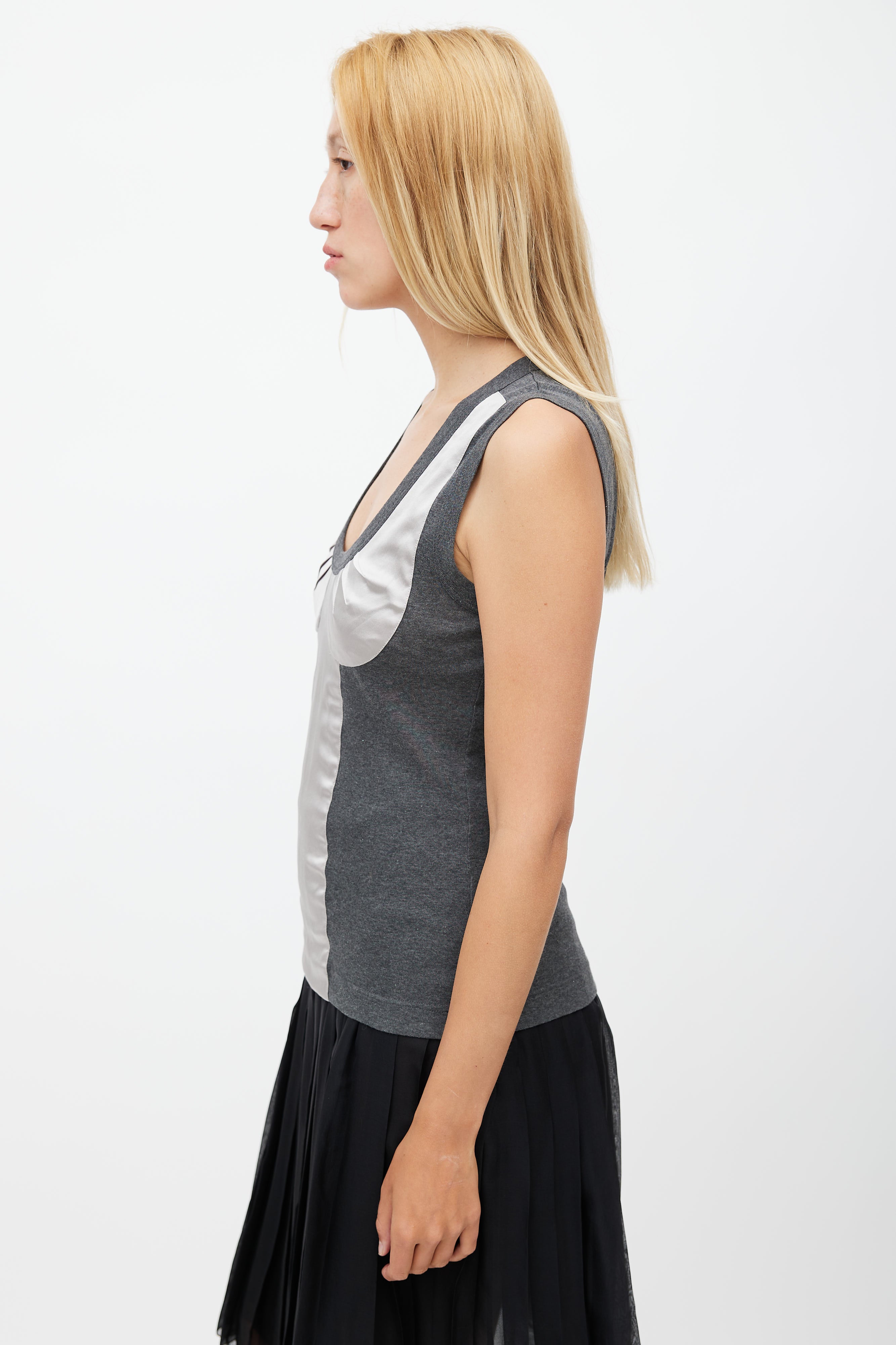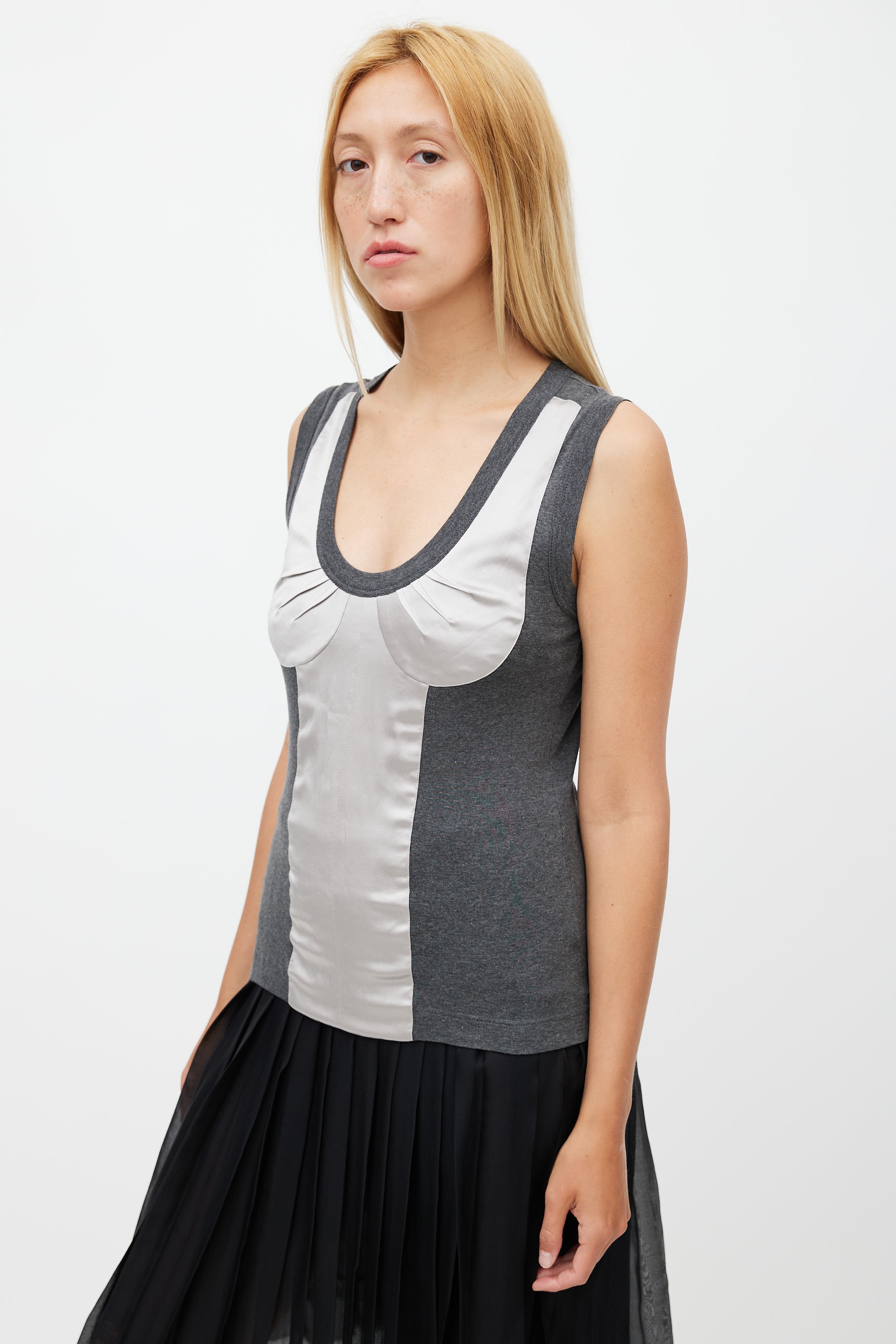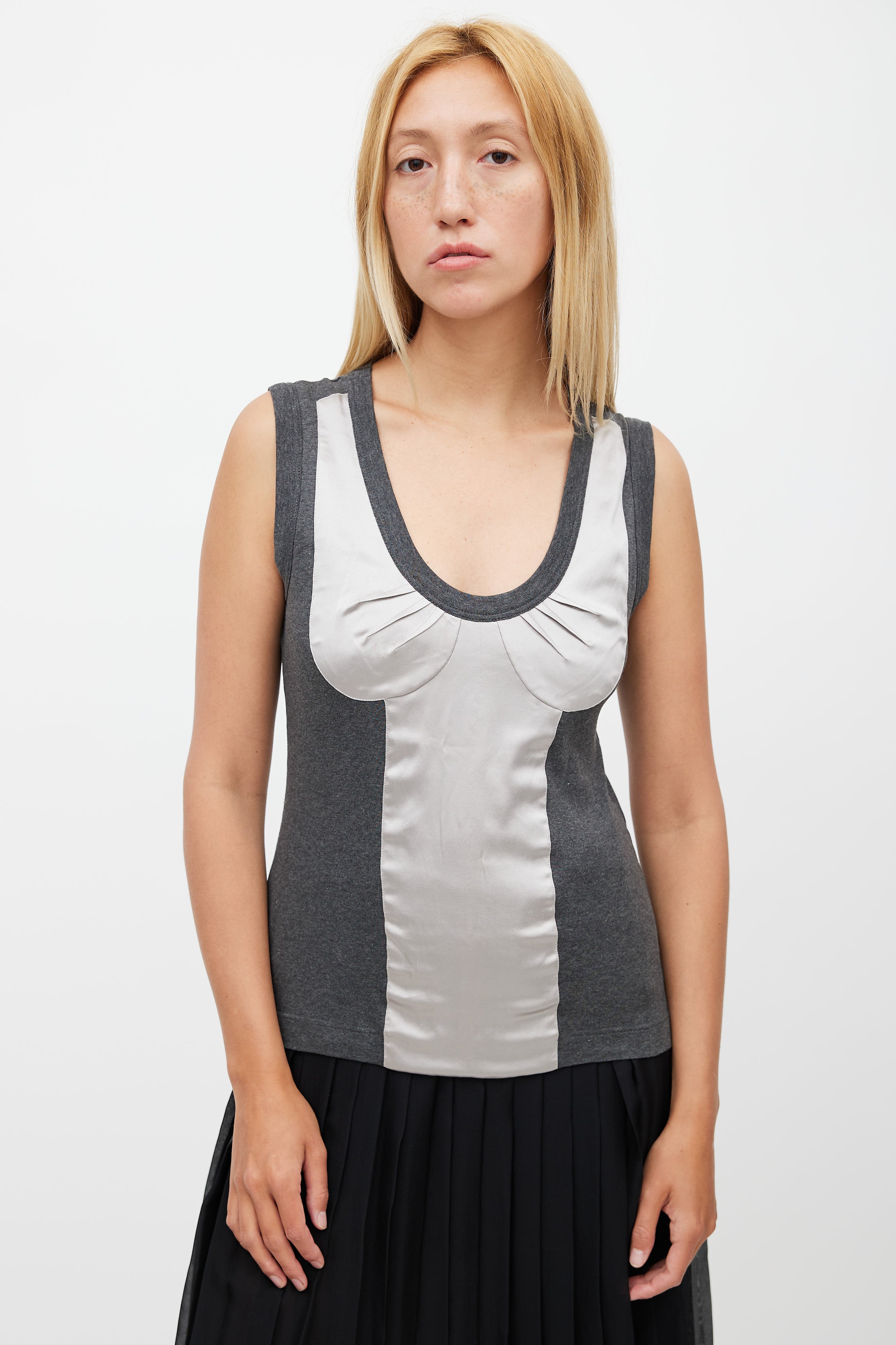 Pre-owned Dolce & Gabbana grey top featuring a satin bustier insert at front, and scoop neckline.