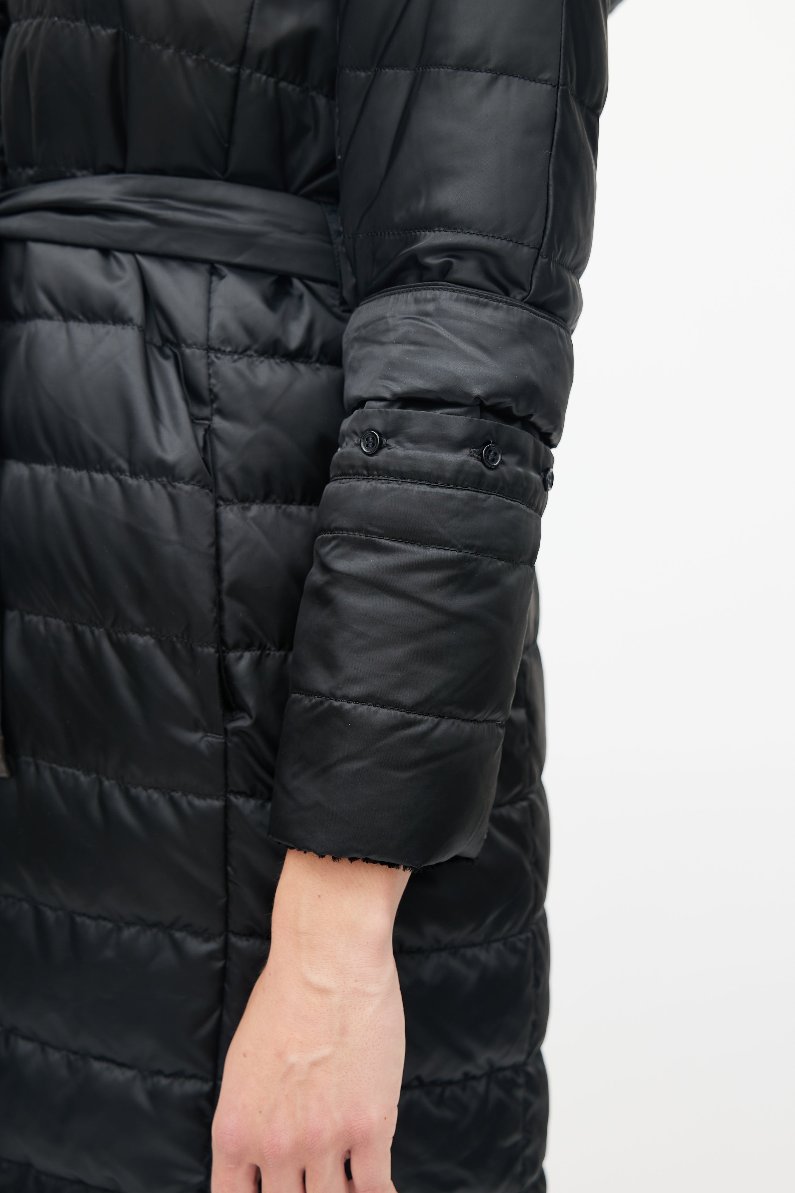Black Novef Quilted Reversible Down Coat US 6 Size Guide