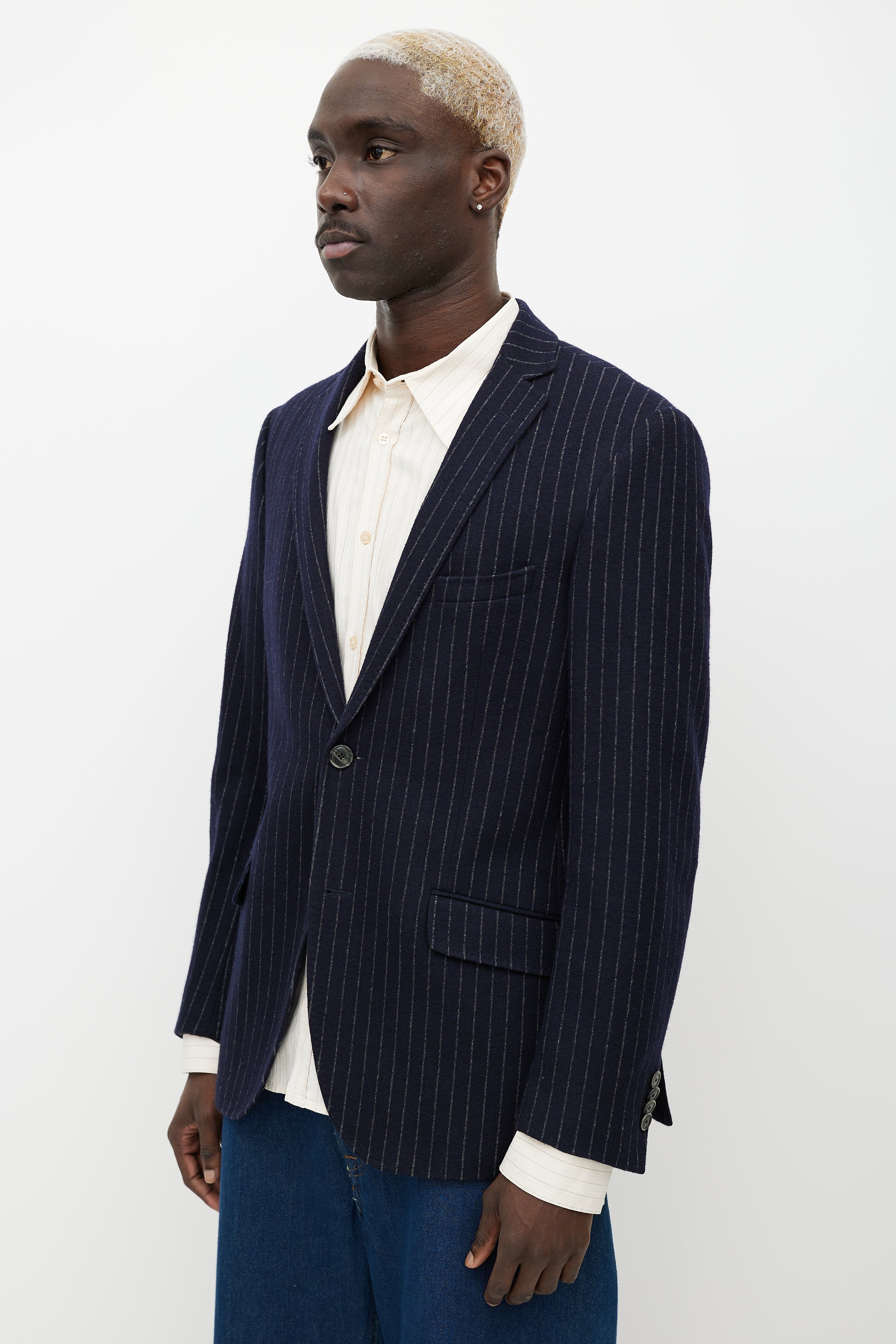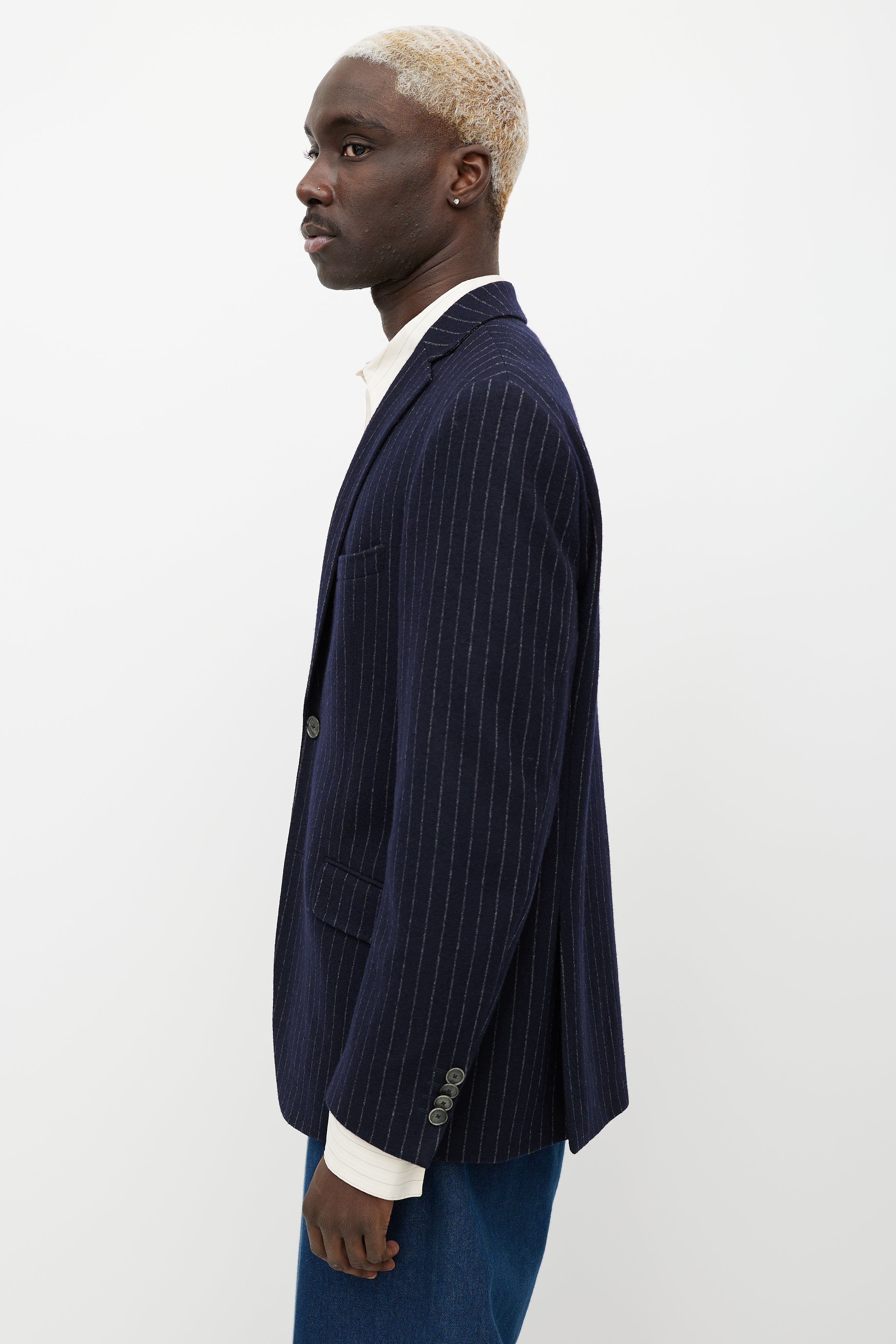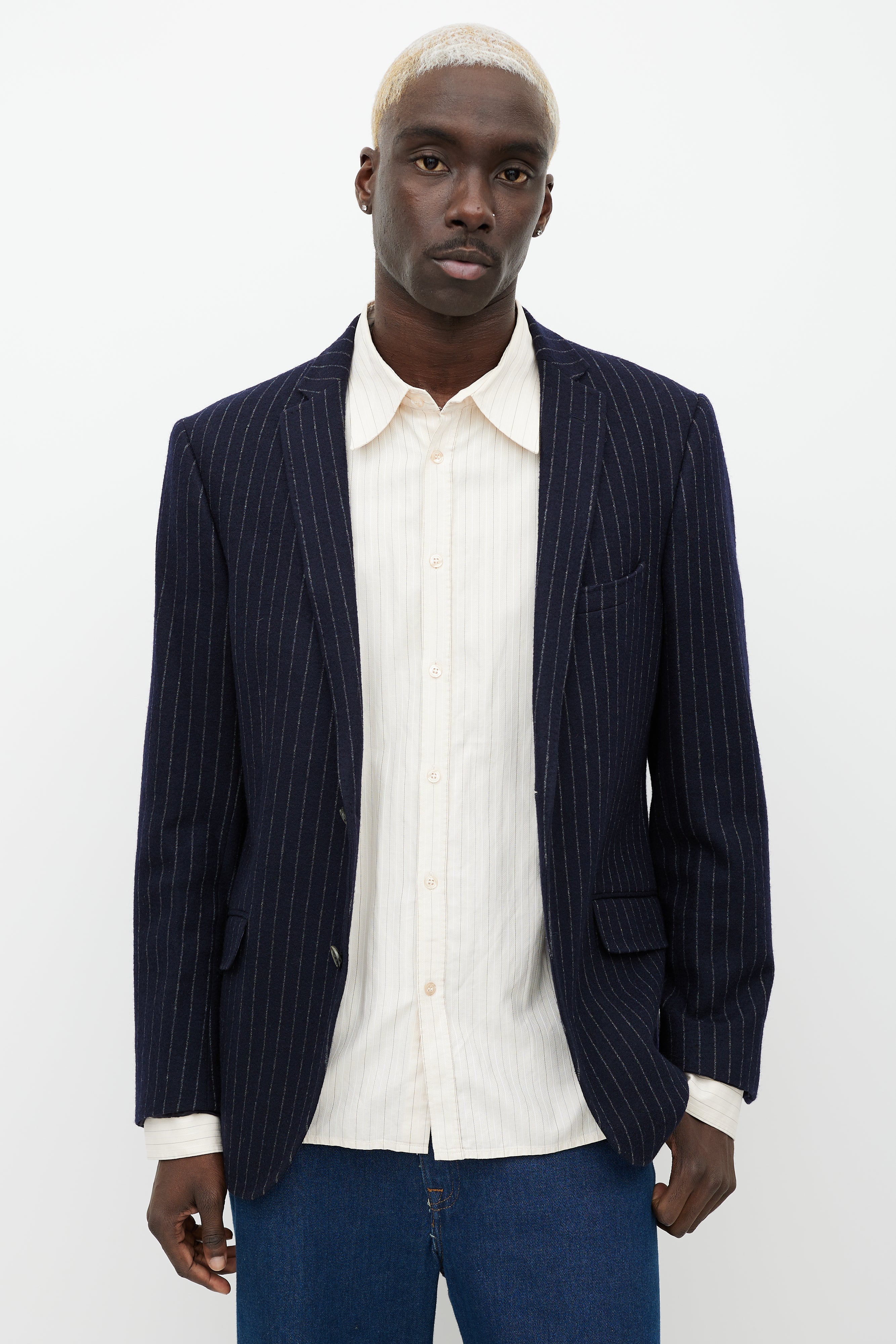 Blue & White Pinstripe Blazer Medium Size Guide