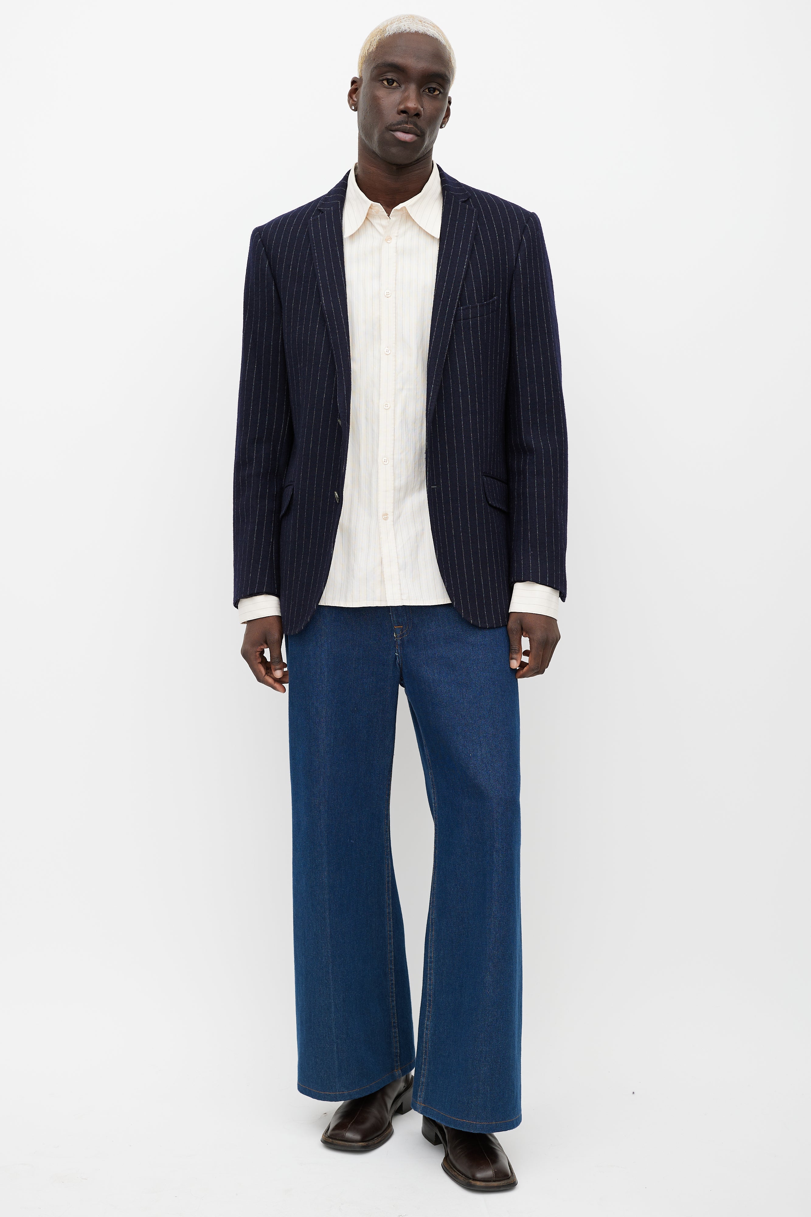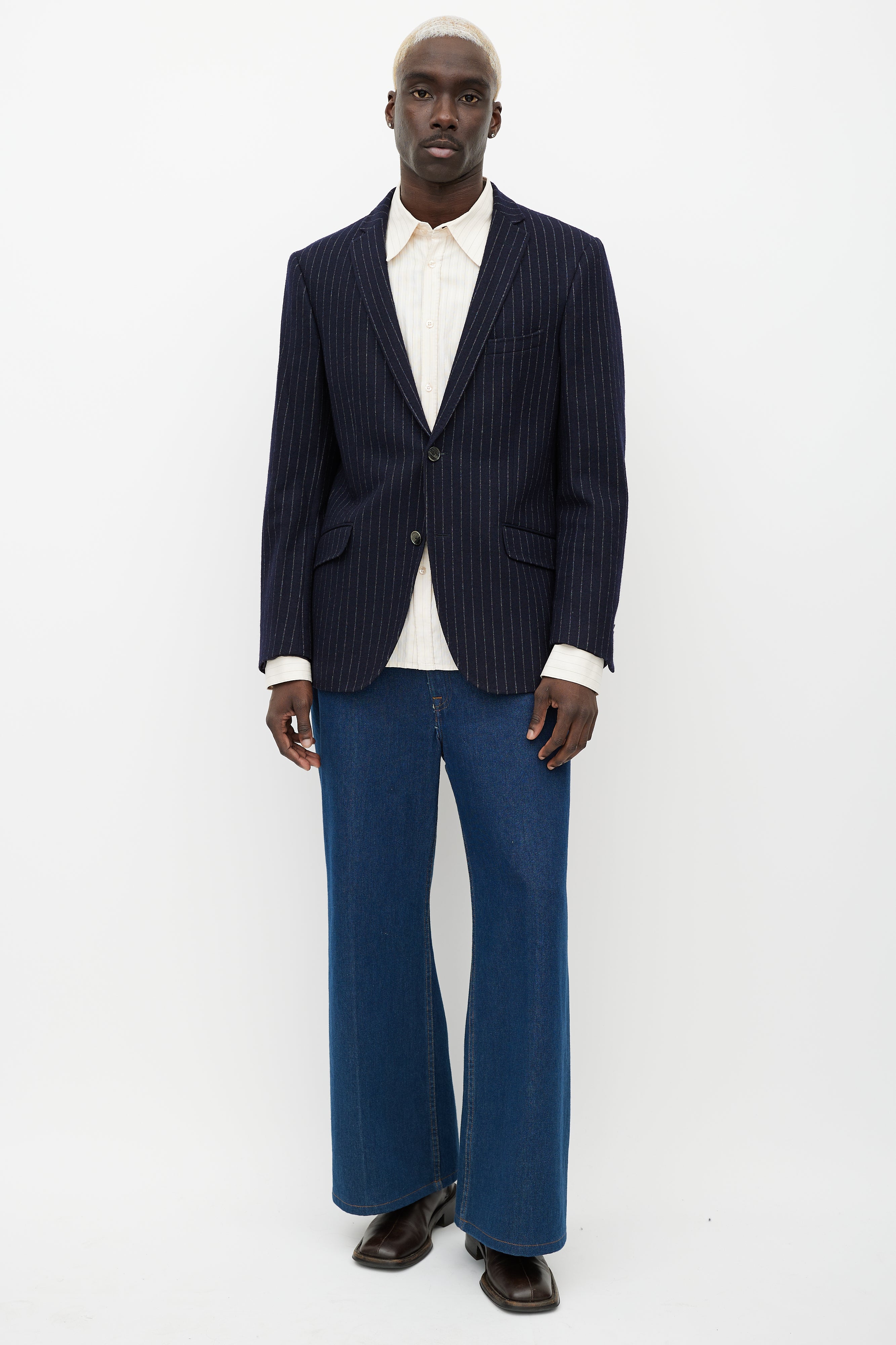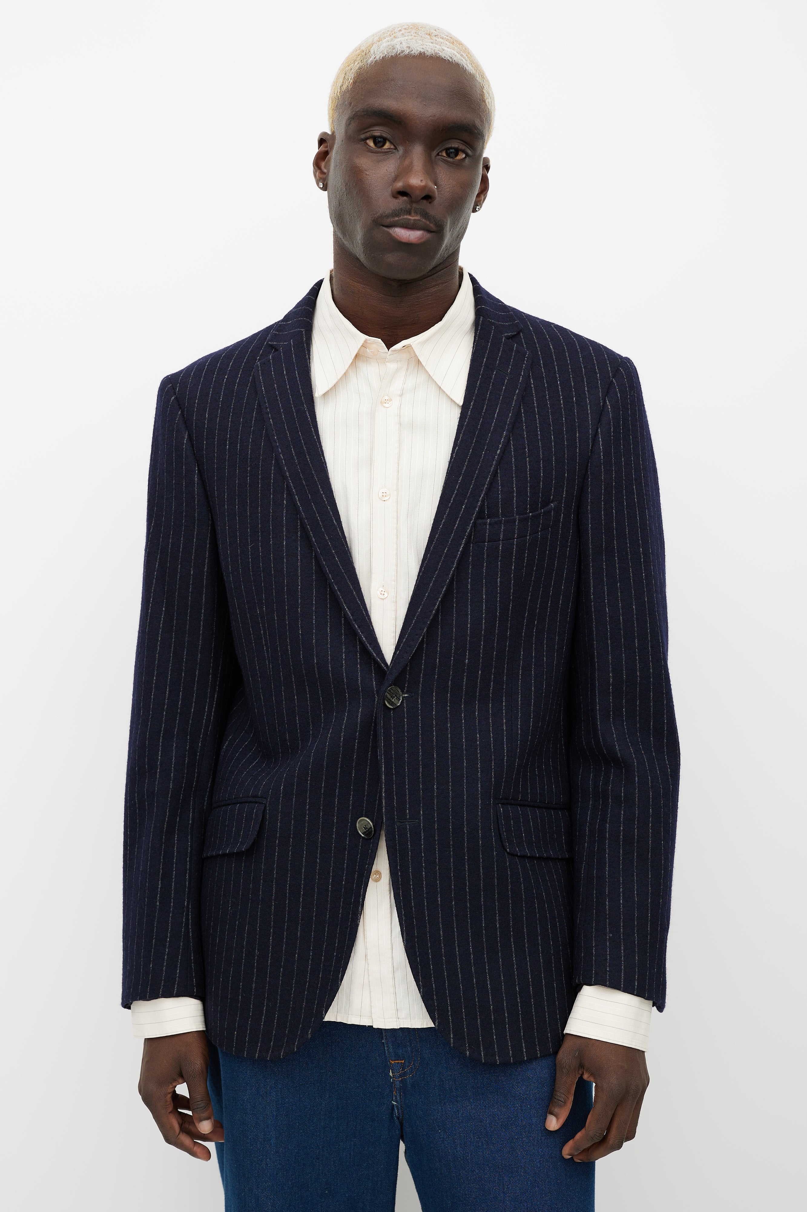 Blue & White Pinstripe Blazer Medium Size Guide