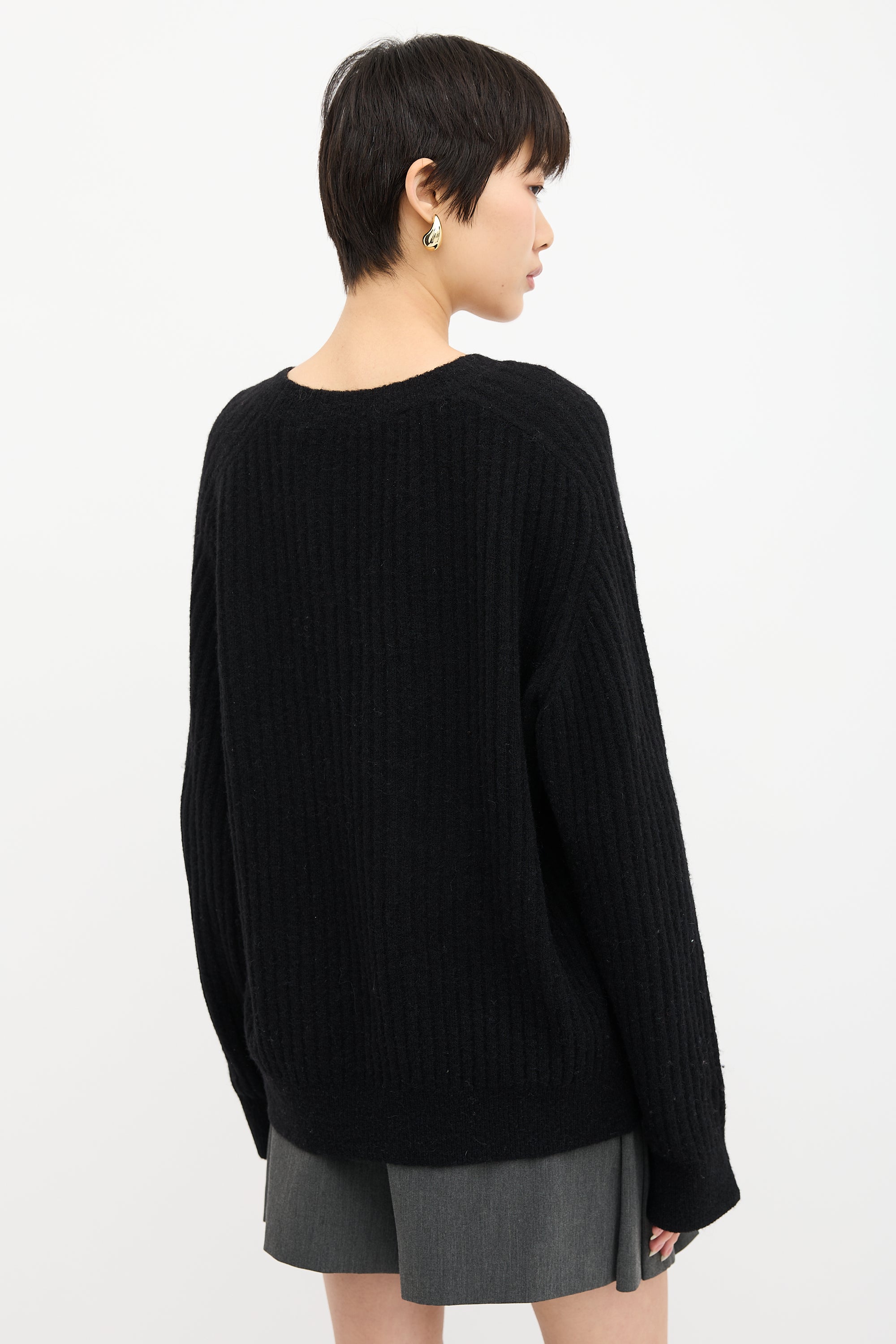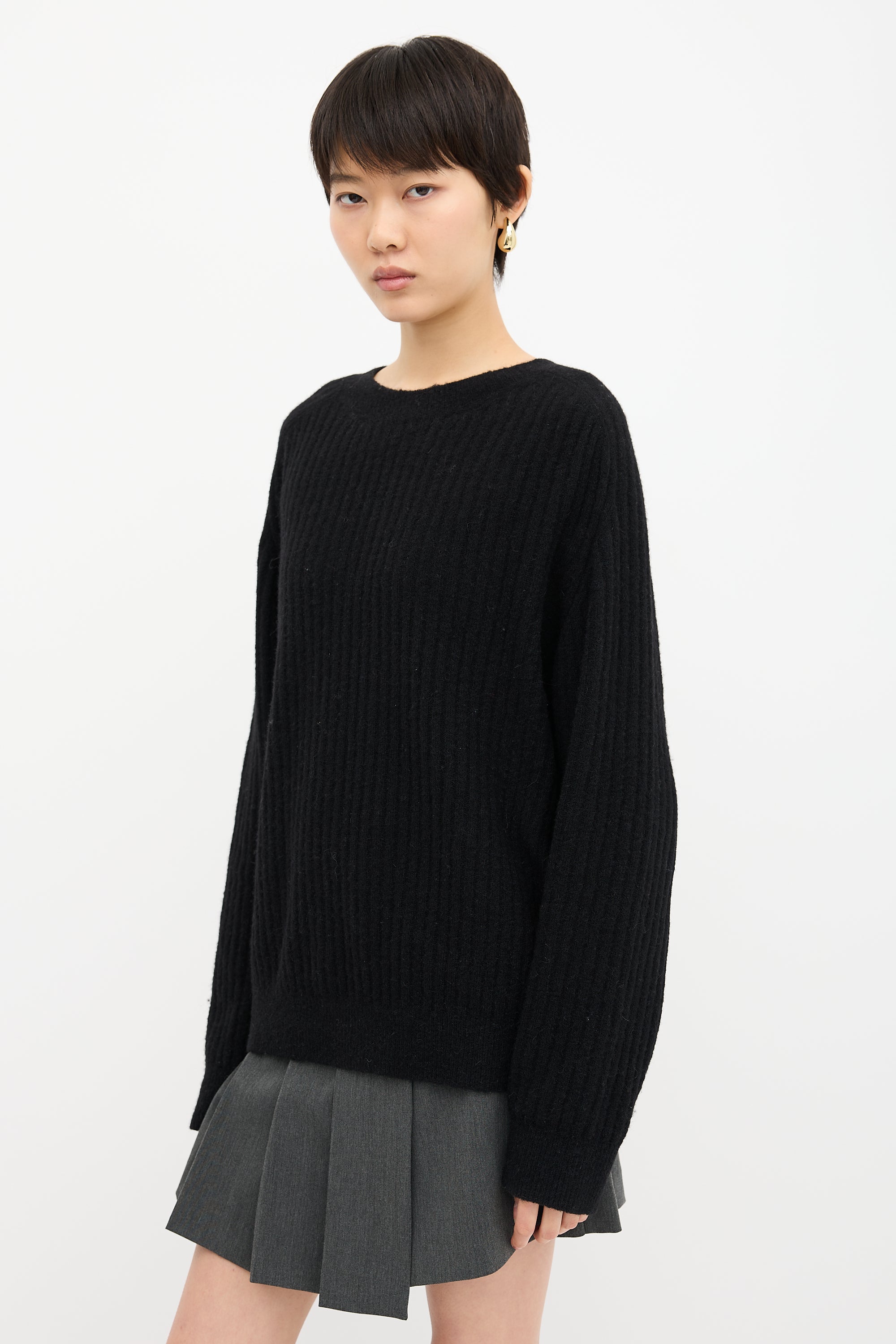 Pre-owned Alexander Wang black boxy oversized fit sweater featuring a crew neckline, vertical ribbing, and a ribbed hem and cuffs.