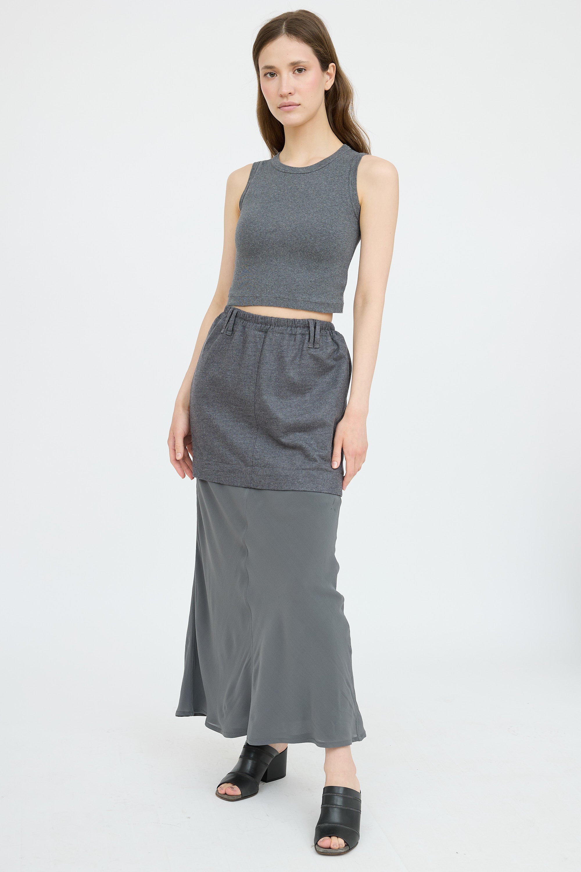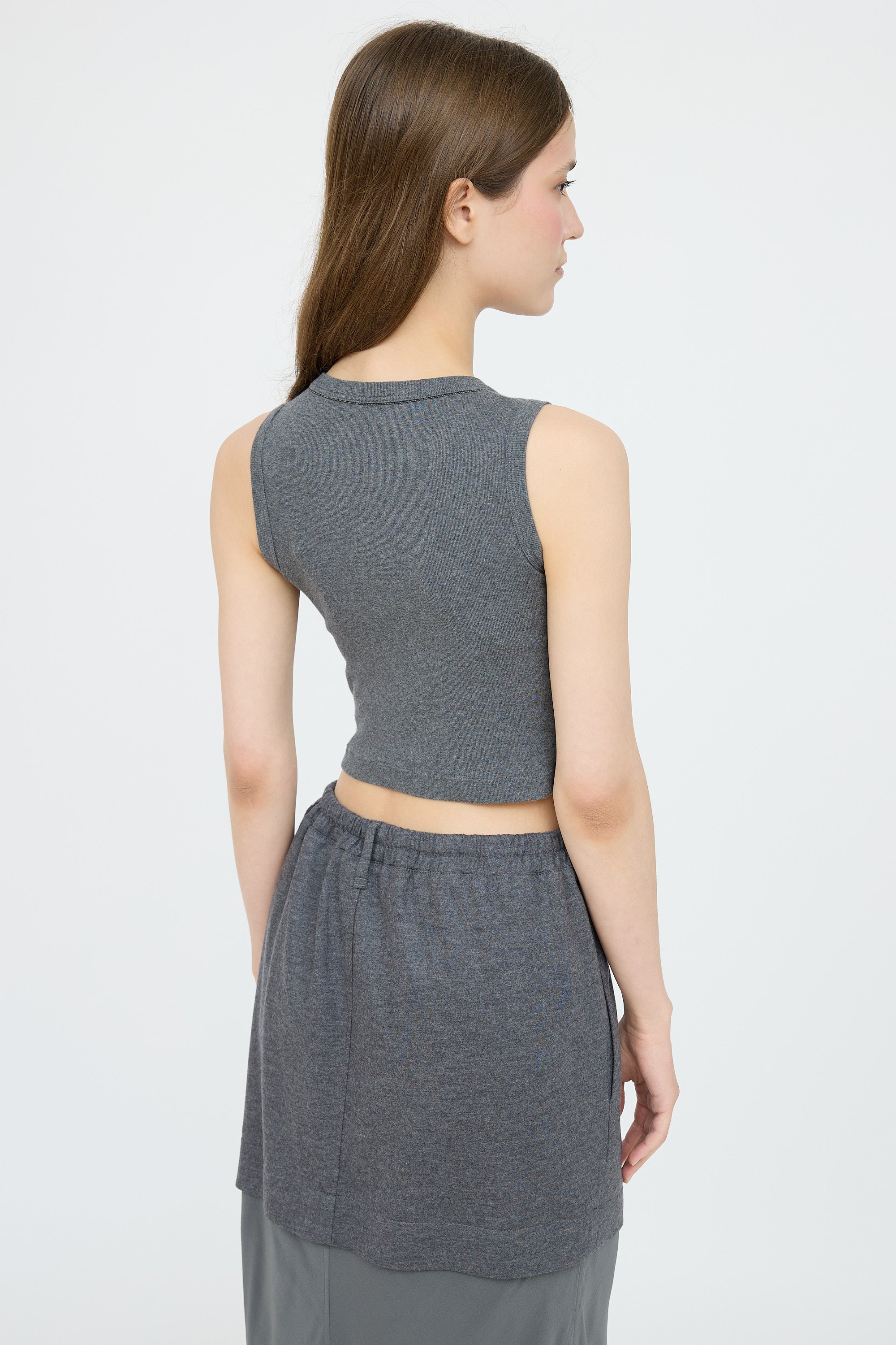 Pre-owned Brunello Cucinelli grey sleeveless tank featuring round neckline, ribbed throughout, and Monili bead detail at back.