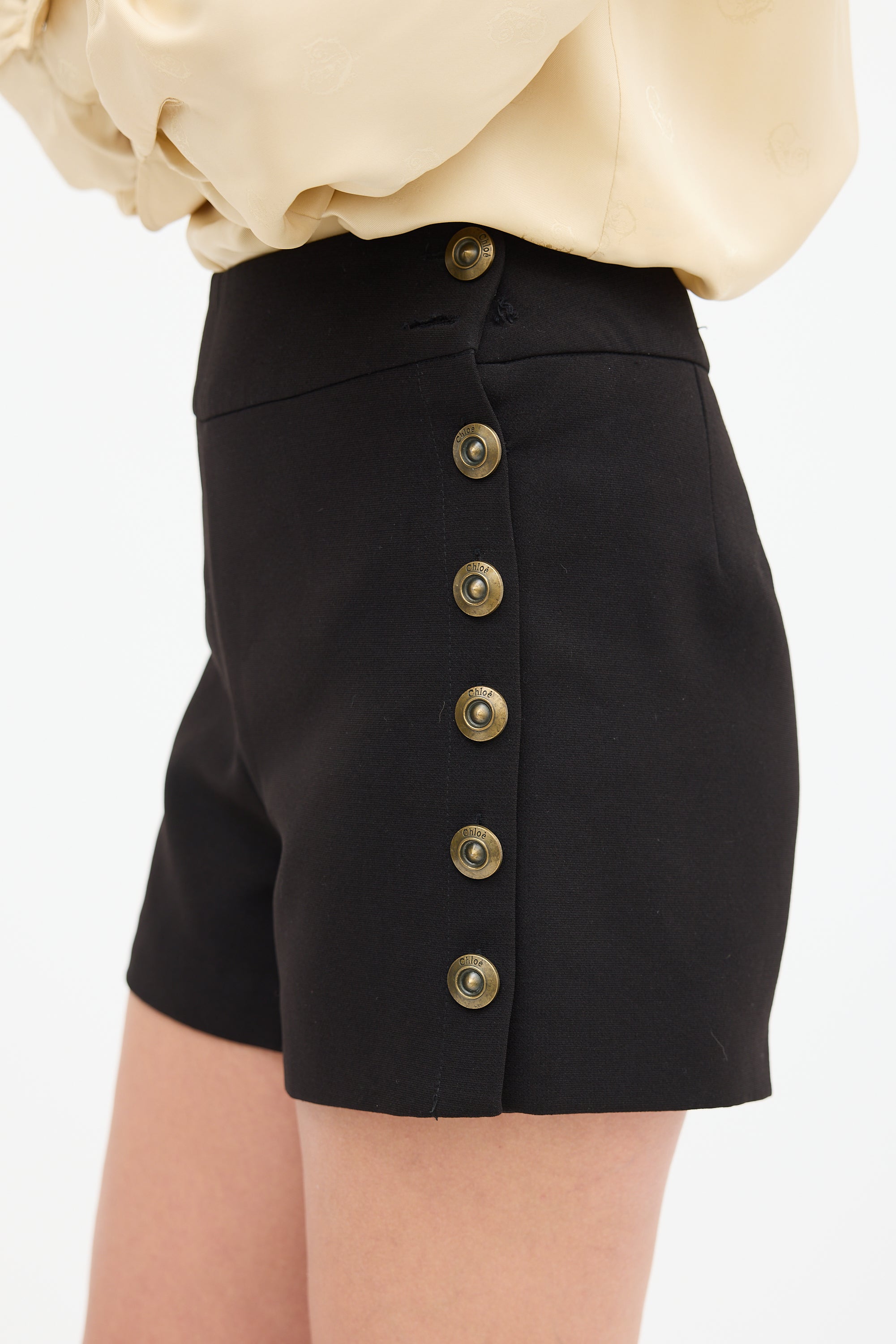 Chloé Side Button Up Mini Shorts FR 36