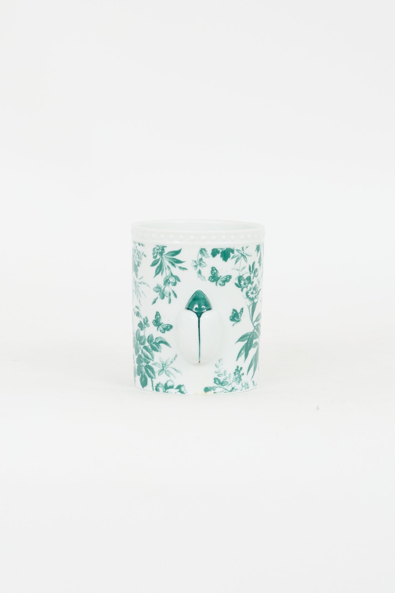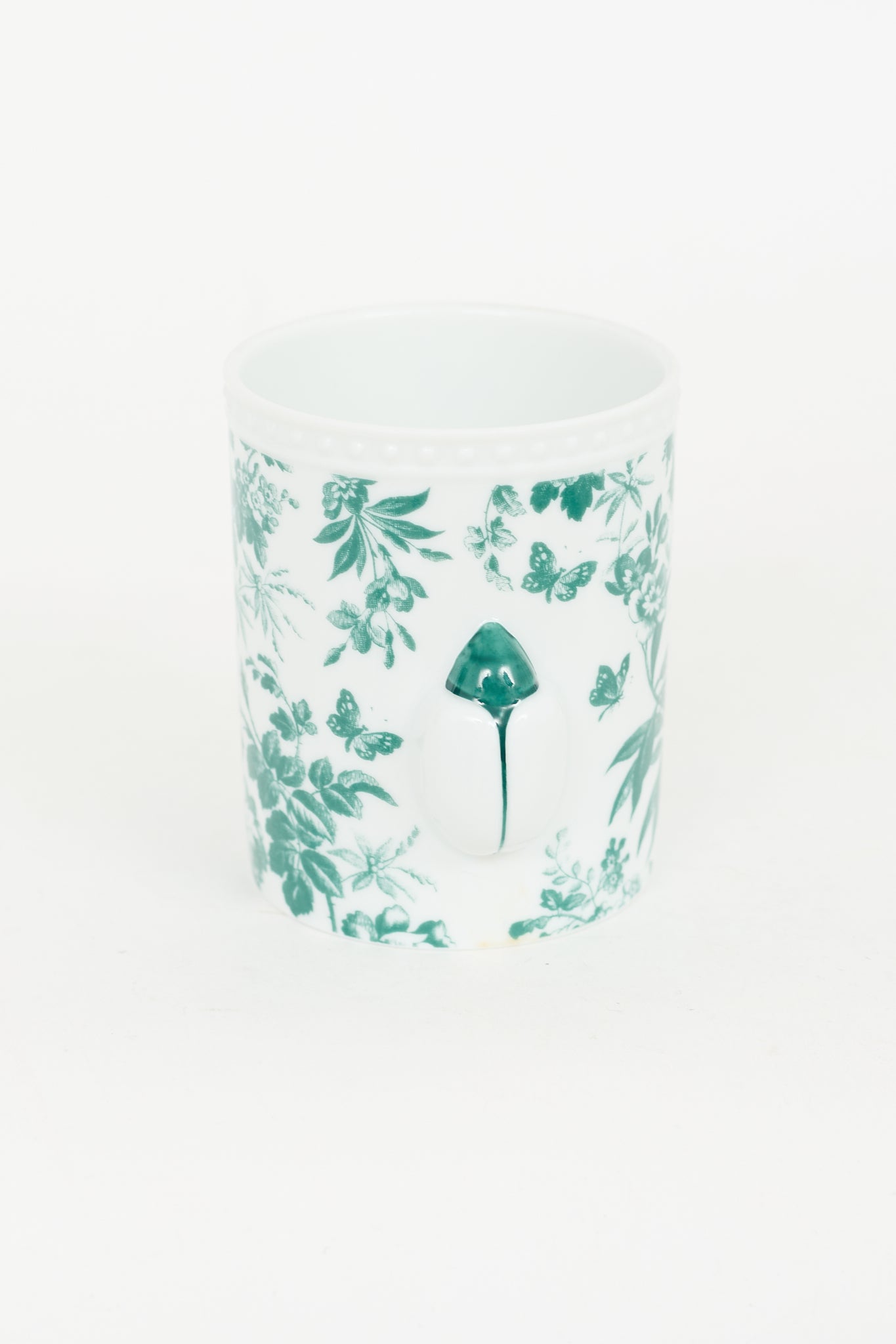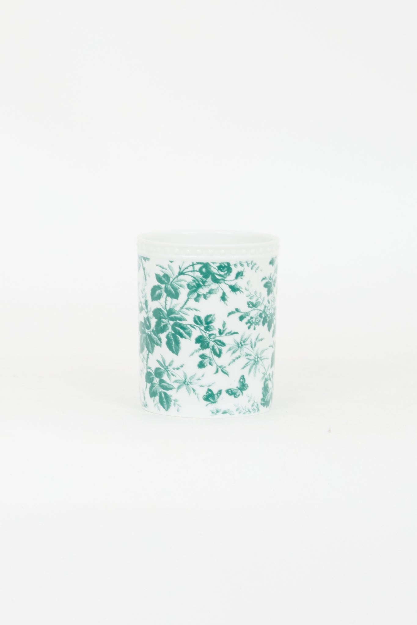 Pre-owned Gucci X Richard Ginori white and green porcelain Herbosum candle holder featuring Herbarium print throughout, embossed ladybug motif at front, dot trim throughout rim, and logo at base. Does not come with candle.