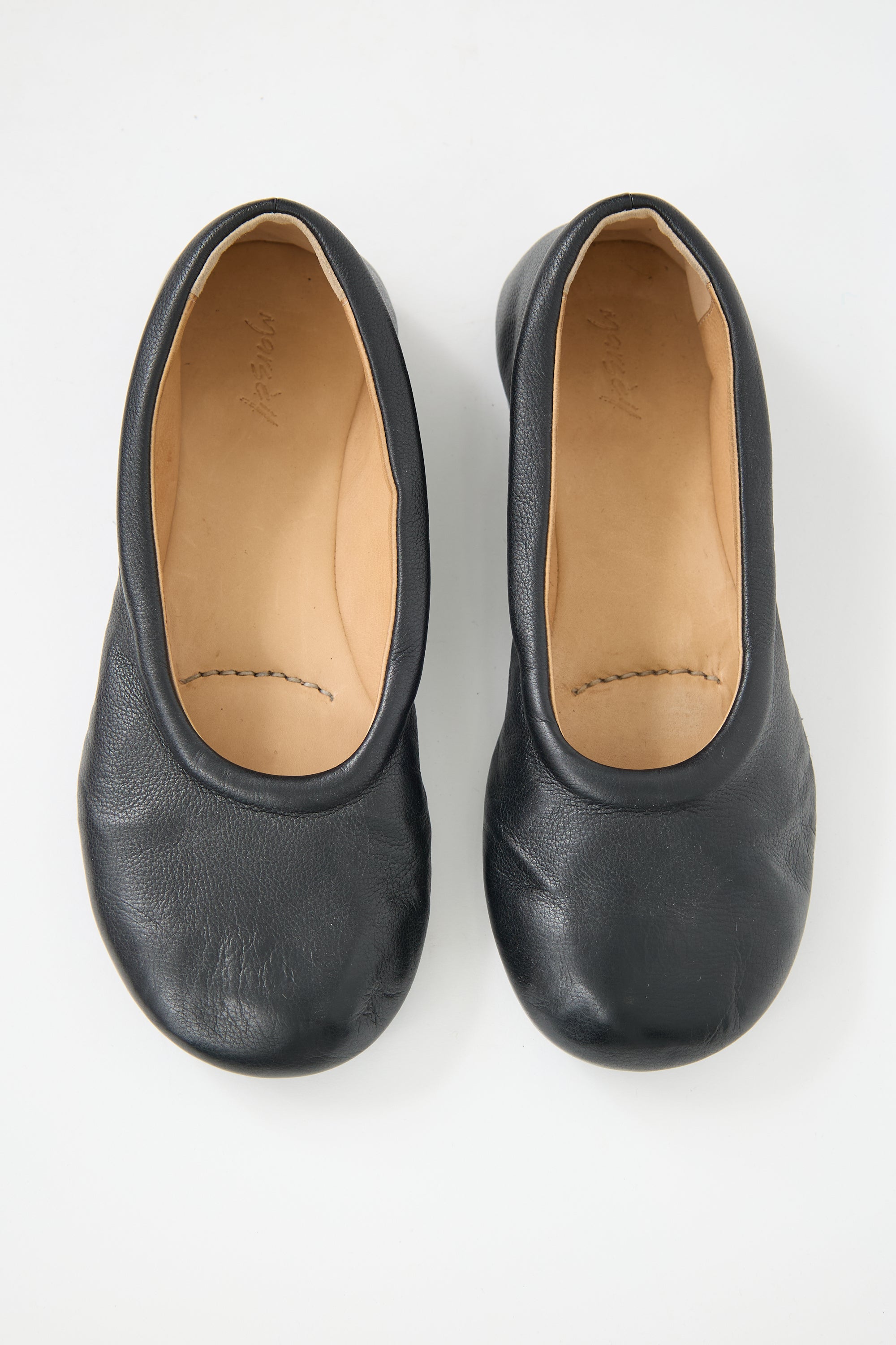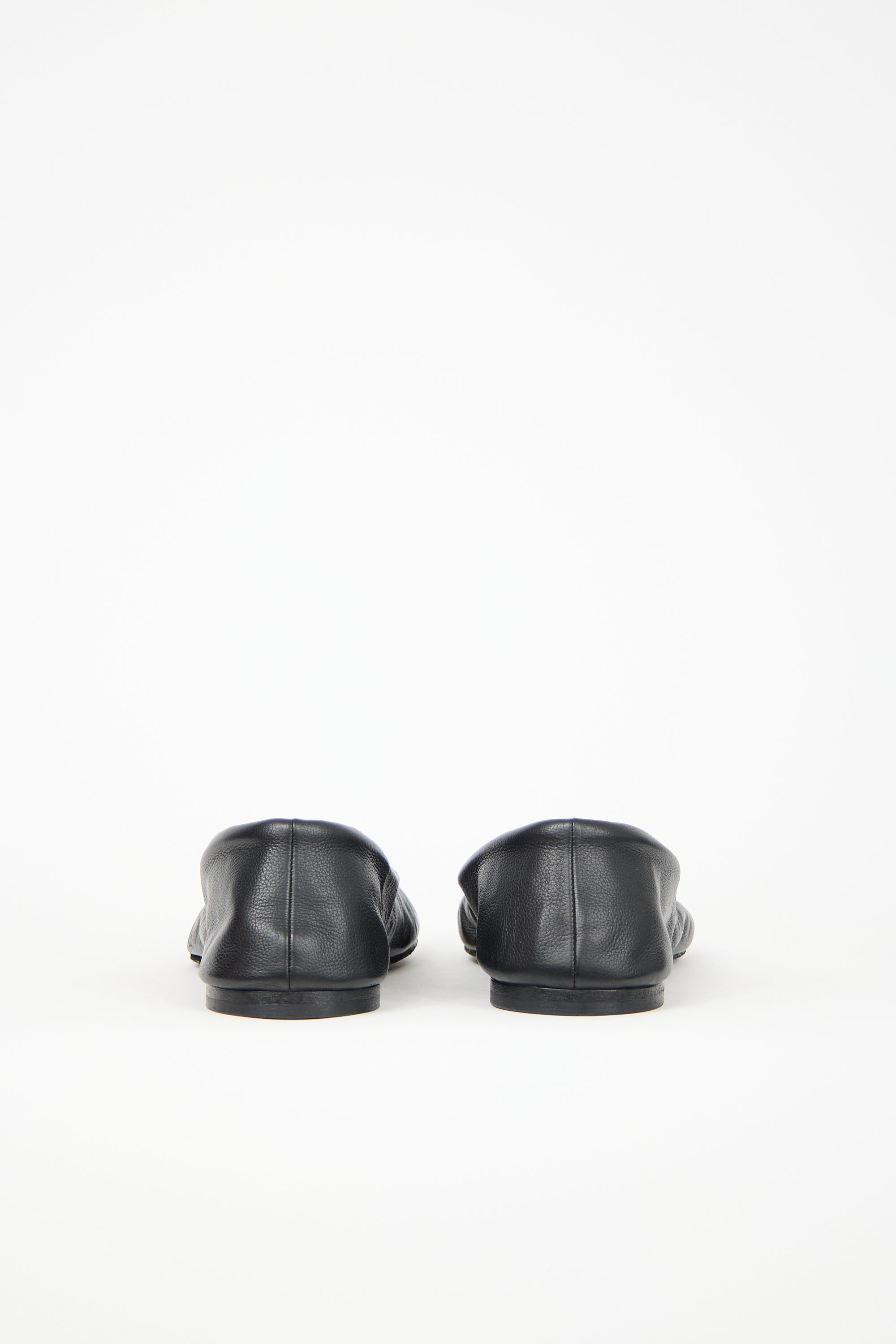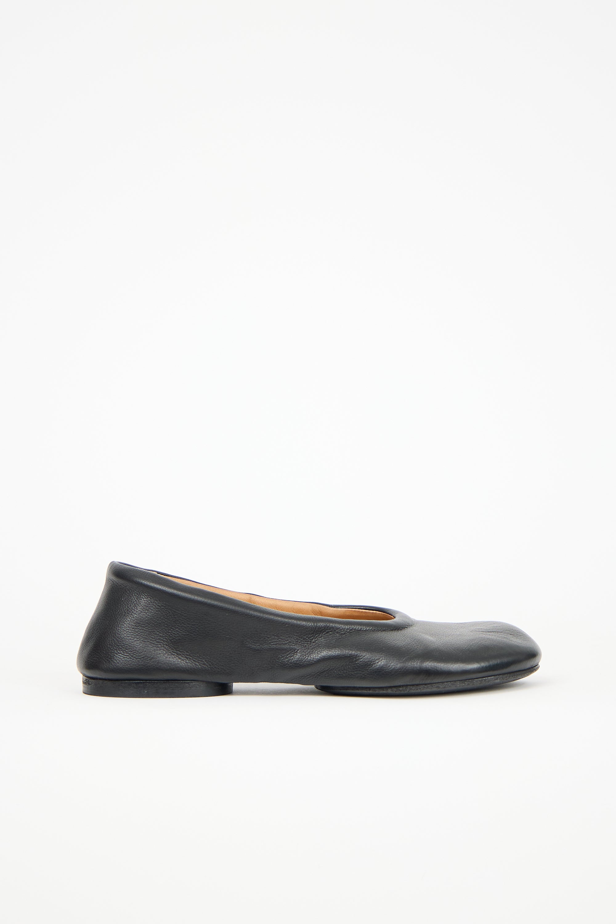 Pre-owned Marsèll black leather ballet flats featuring rounded toe and slip on entry.