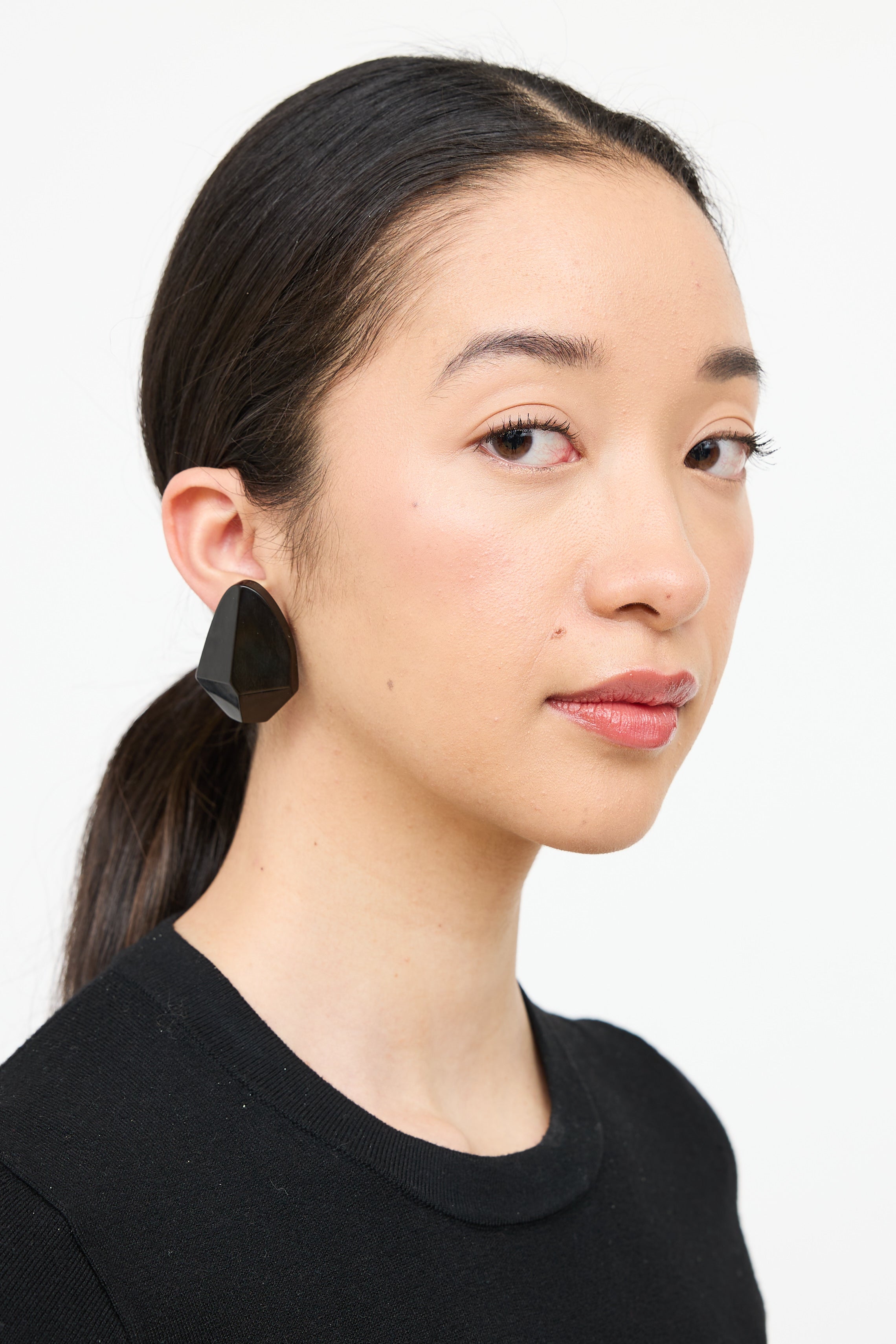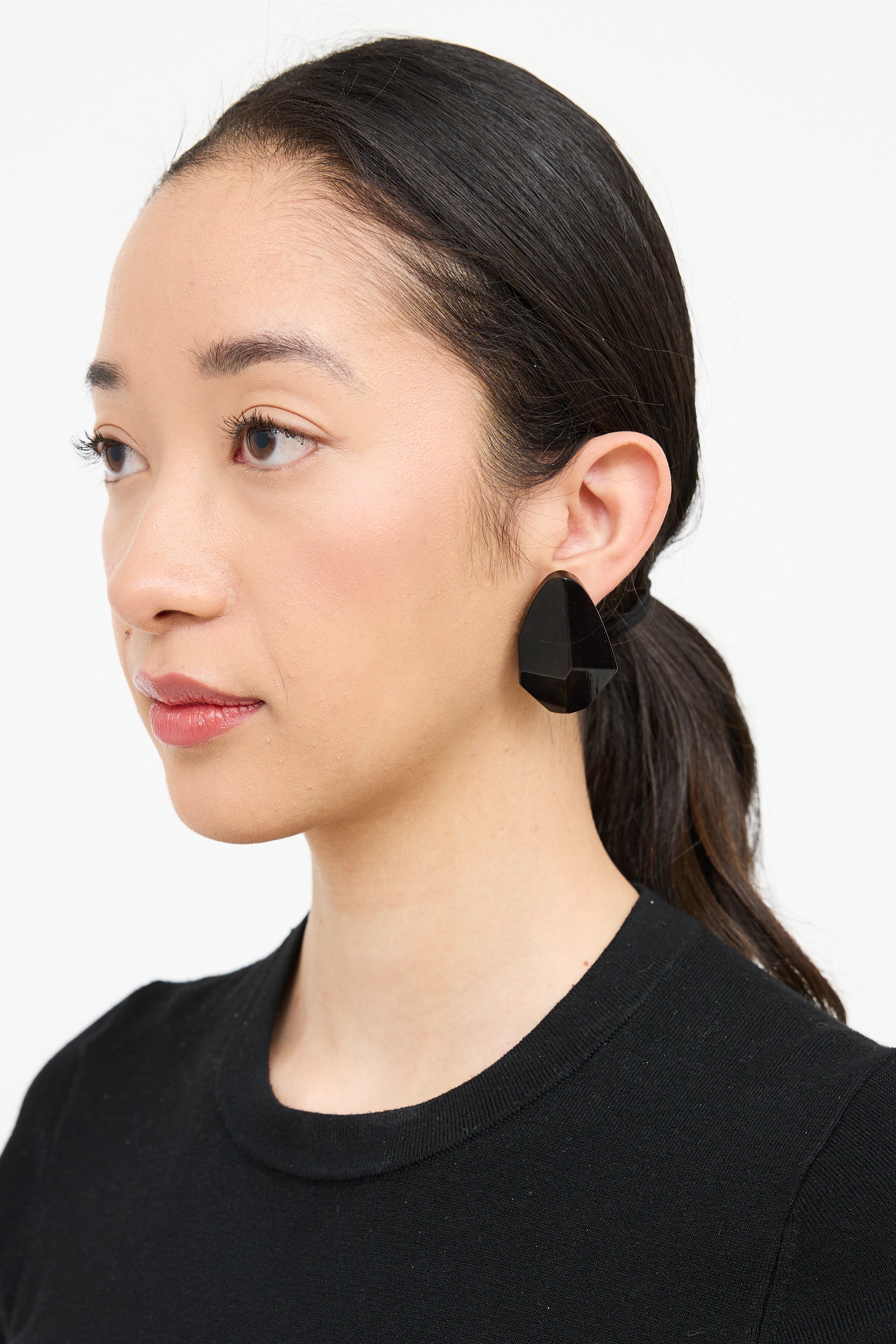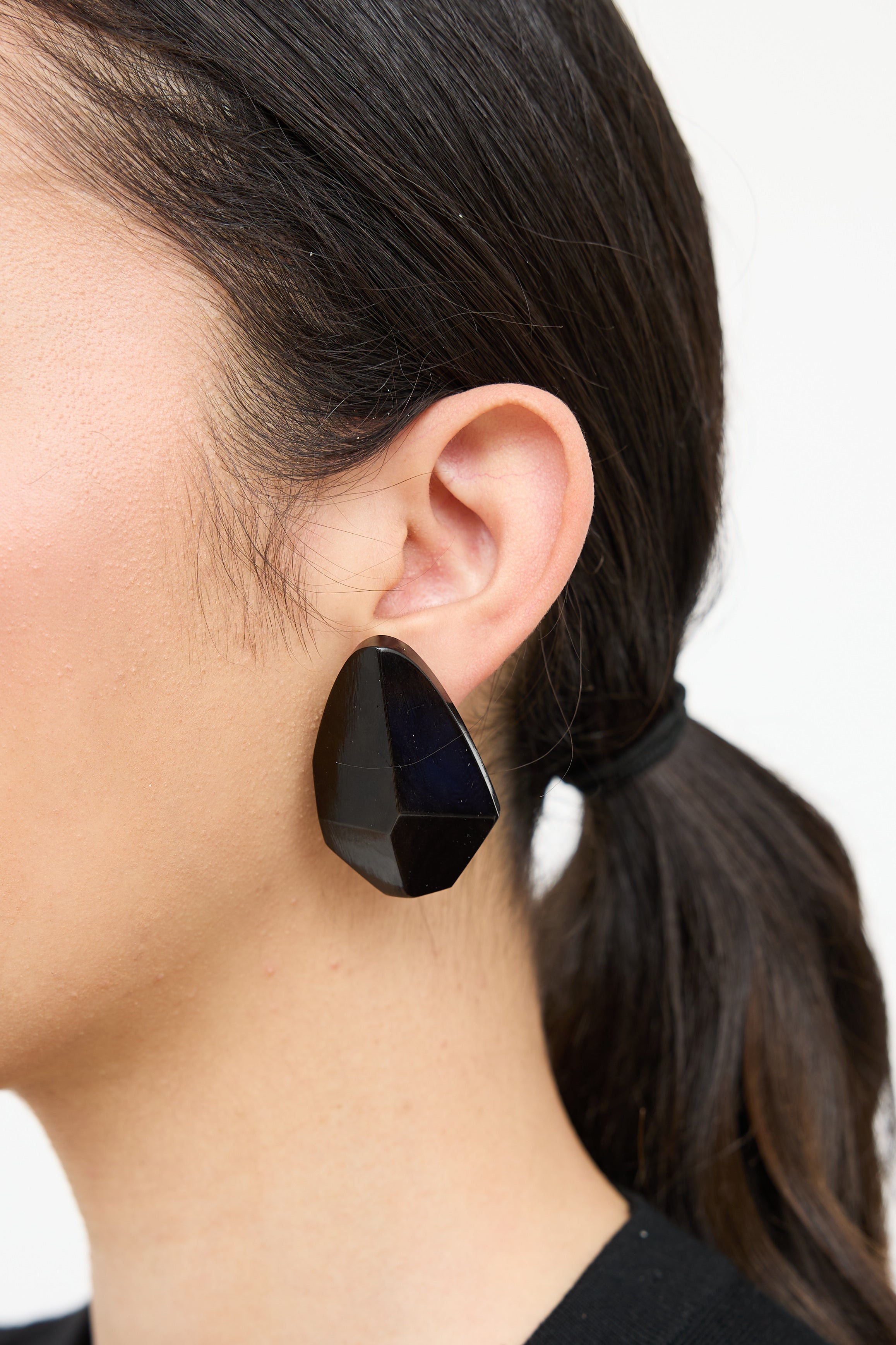 Pre-owned Monies black horn clip on earrings featuring a geometric shape and clip on closure.