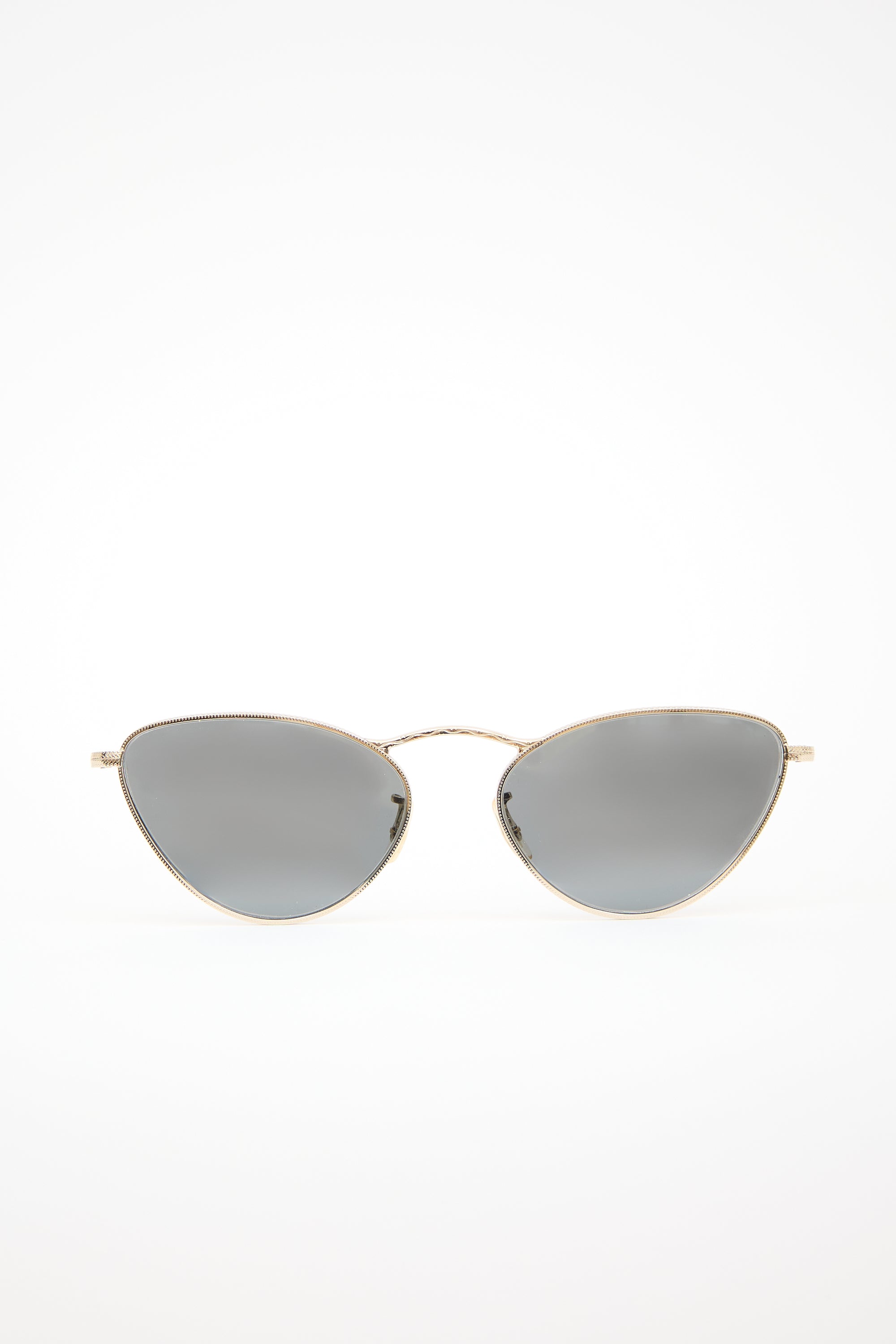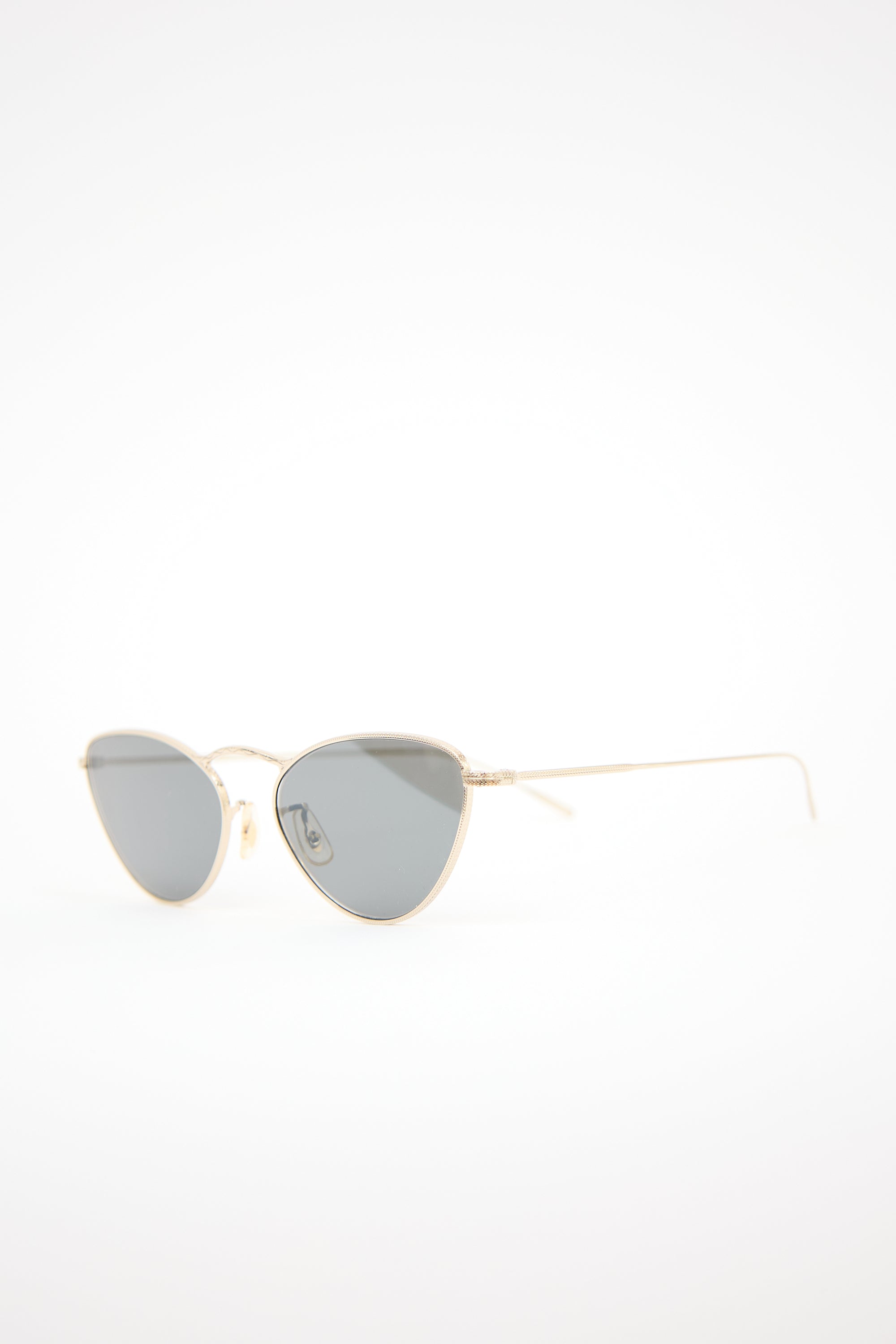 Pre-owned Oliver Peoples silver tone OV1239S Lelaina sunglasses featuring grey tinted lenses and wire cateye frame. Comes with original case and dust bag.