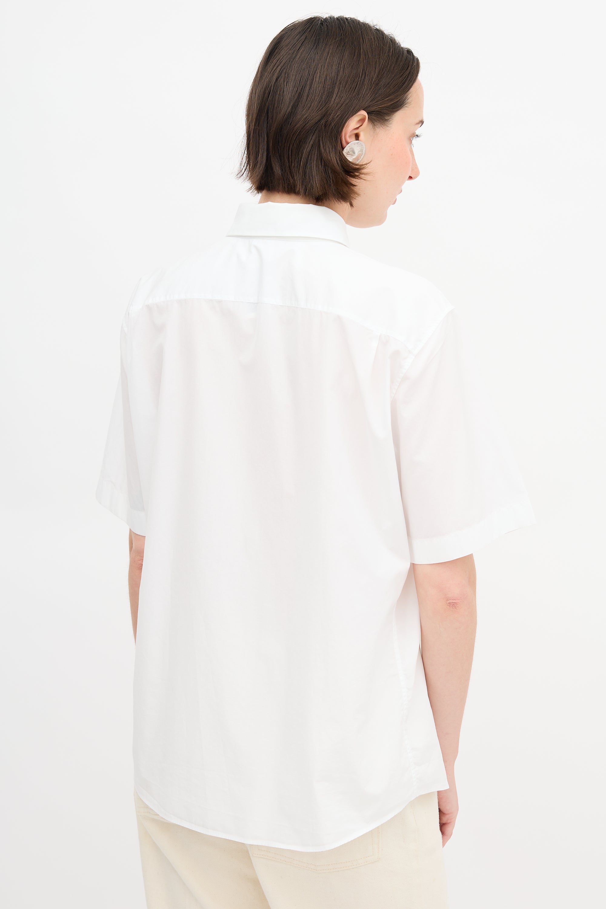 Pre-owned The Row white poplin Patrick shirt featuring straight collar and button front.