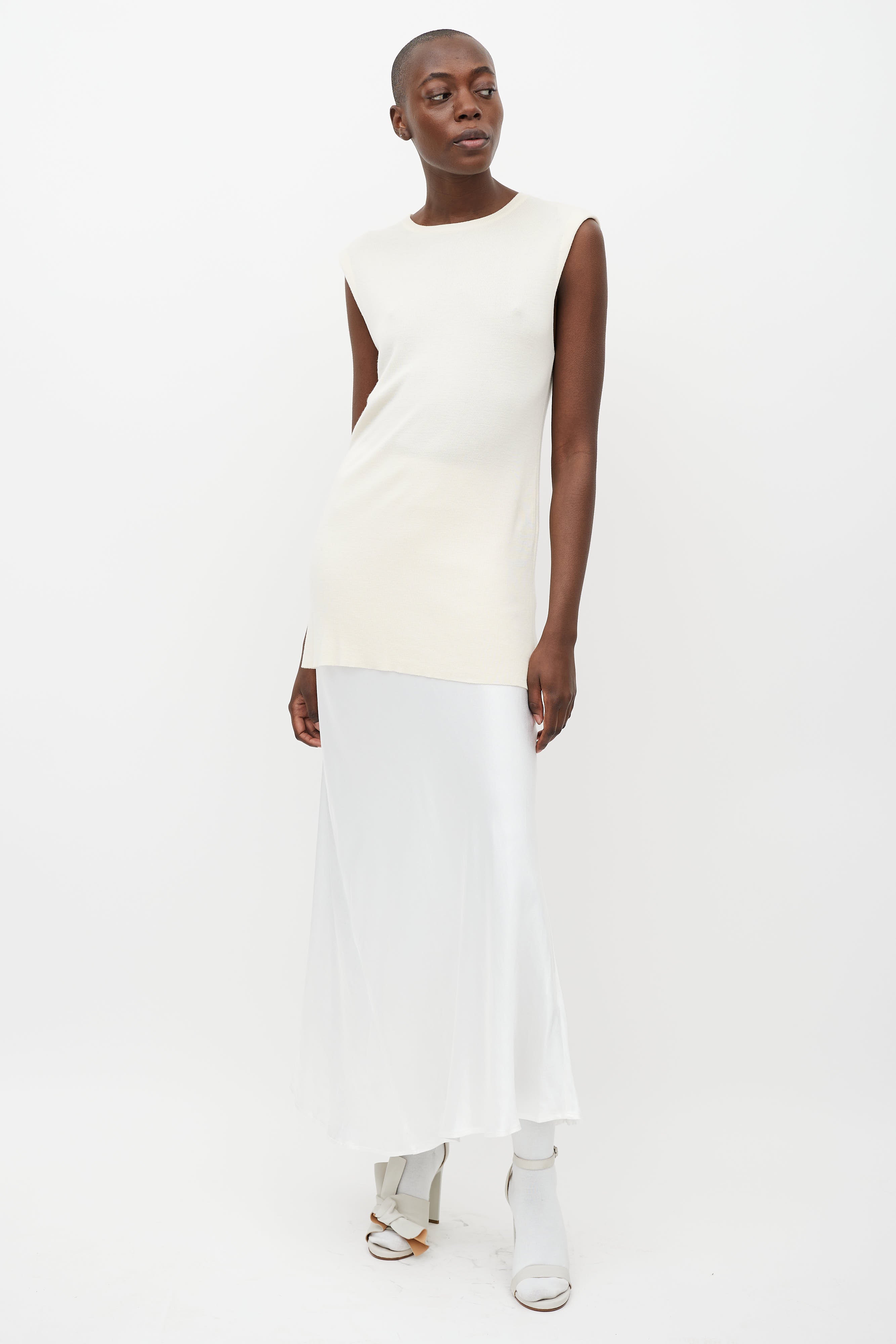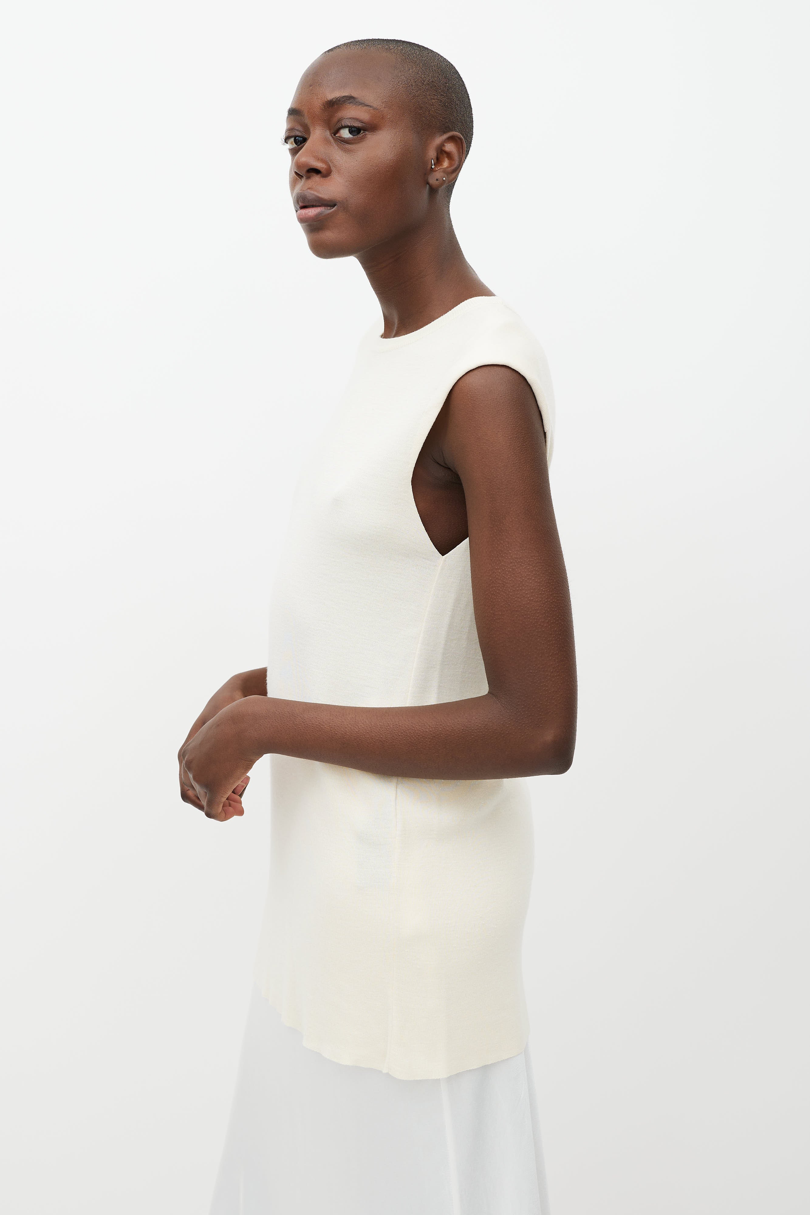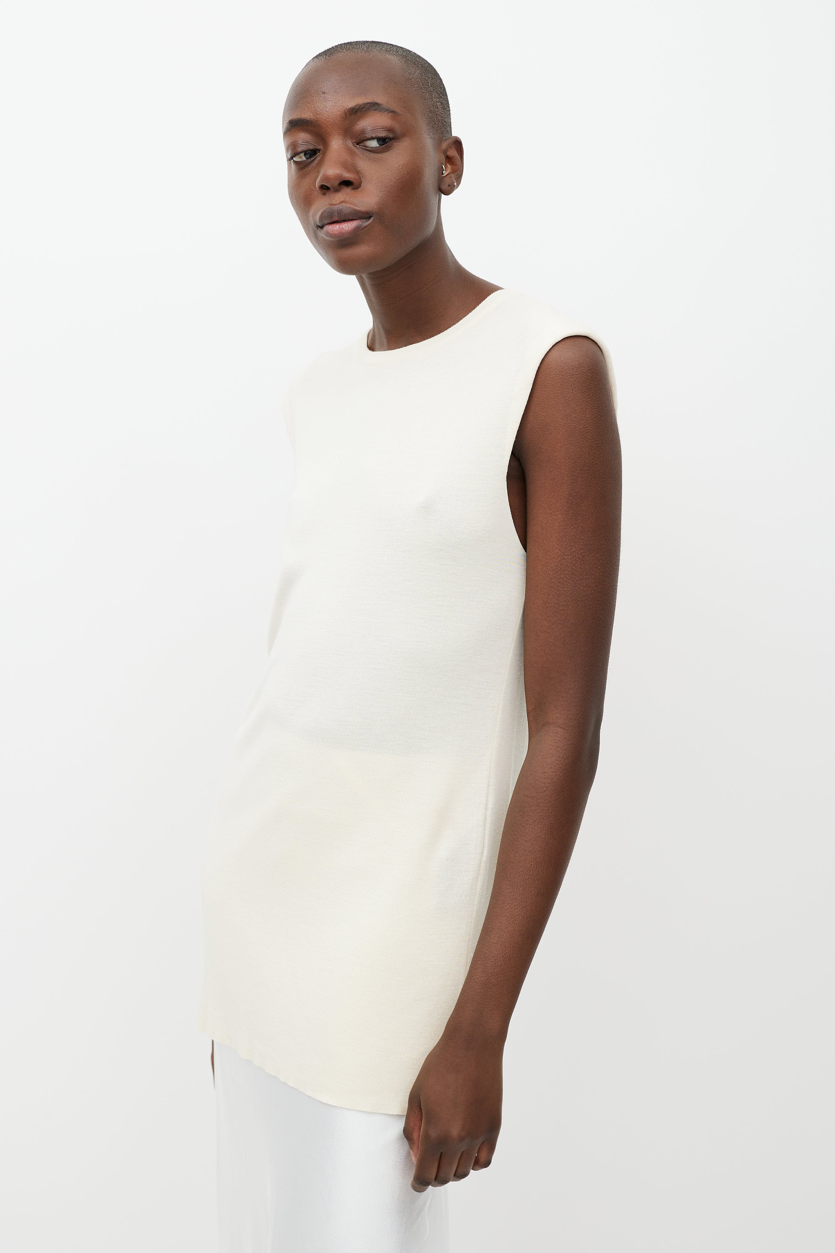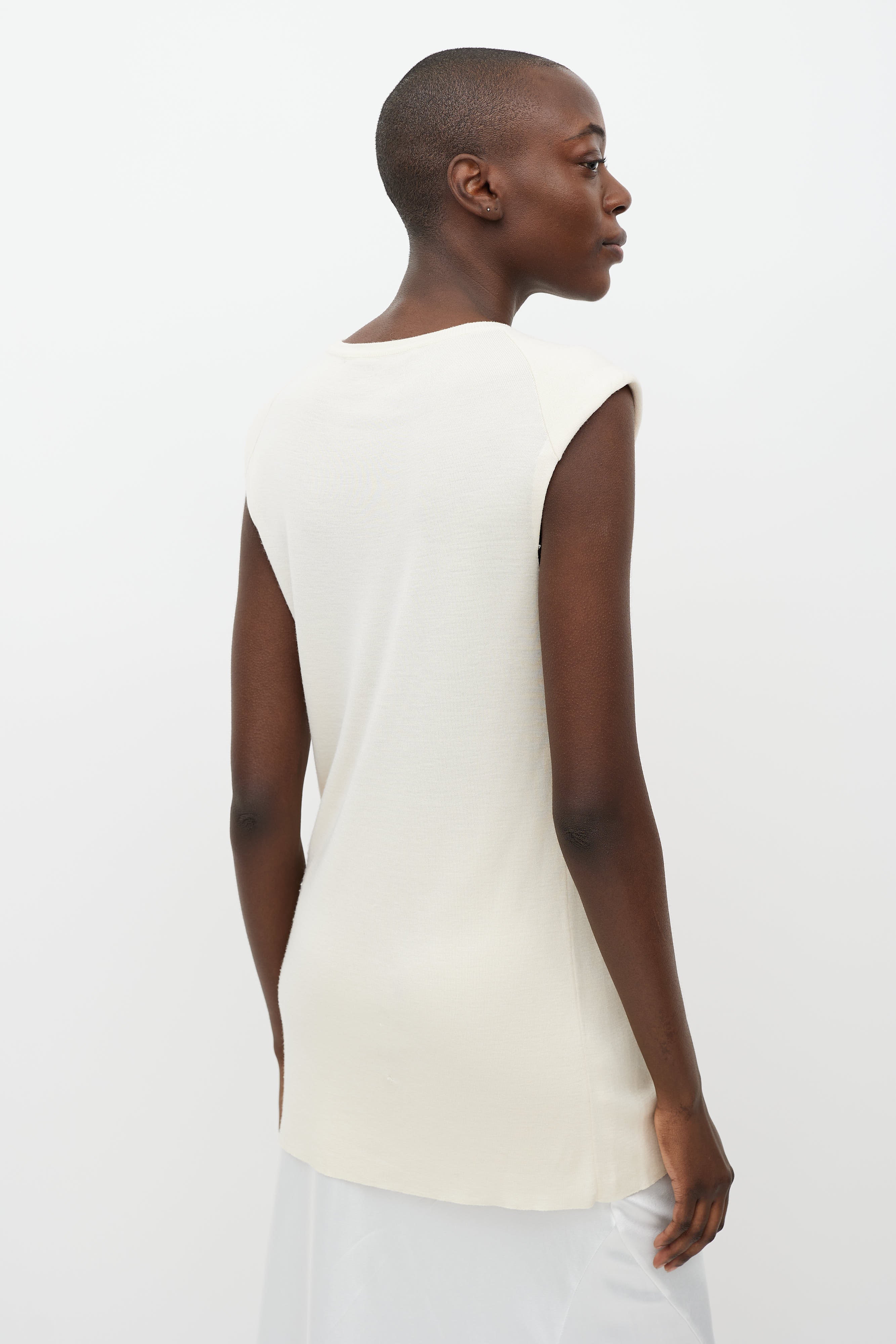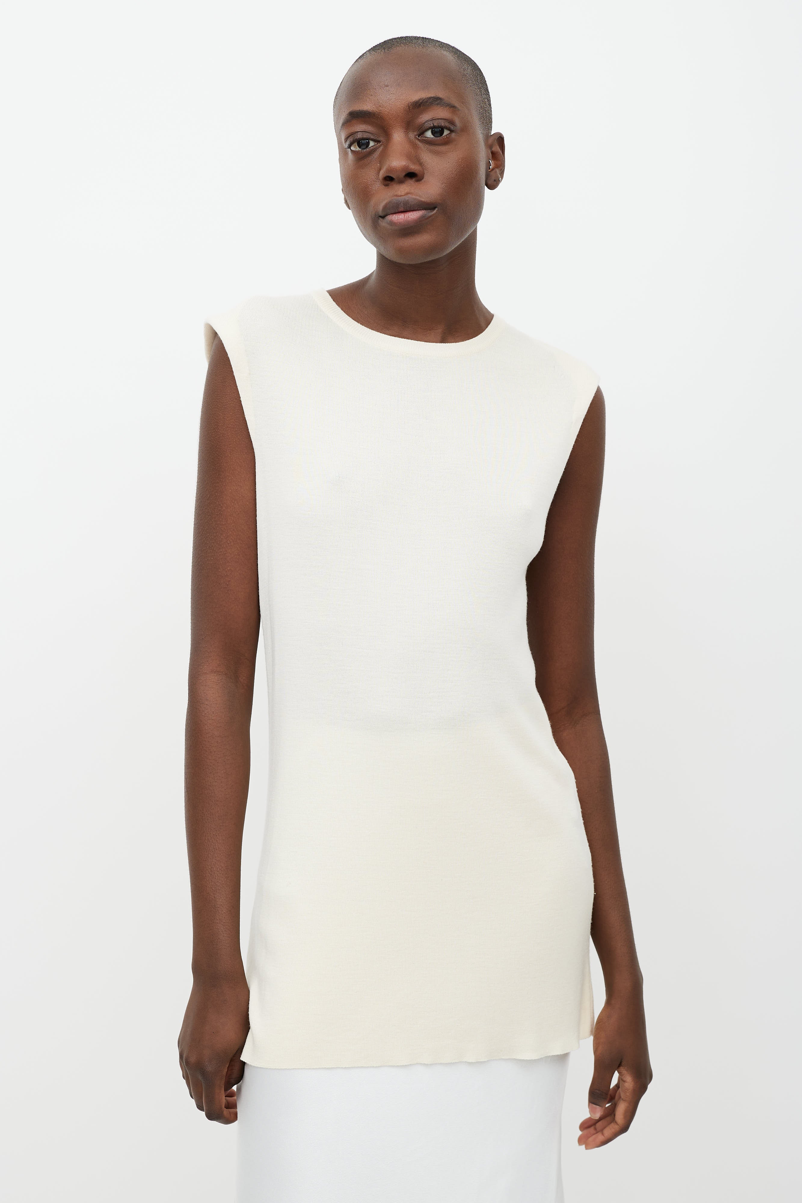Pre-owned Haider Ackermann cream wool knit sweater featuring a round neckline, and sleeveless styling.