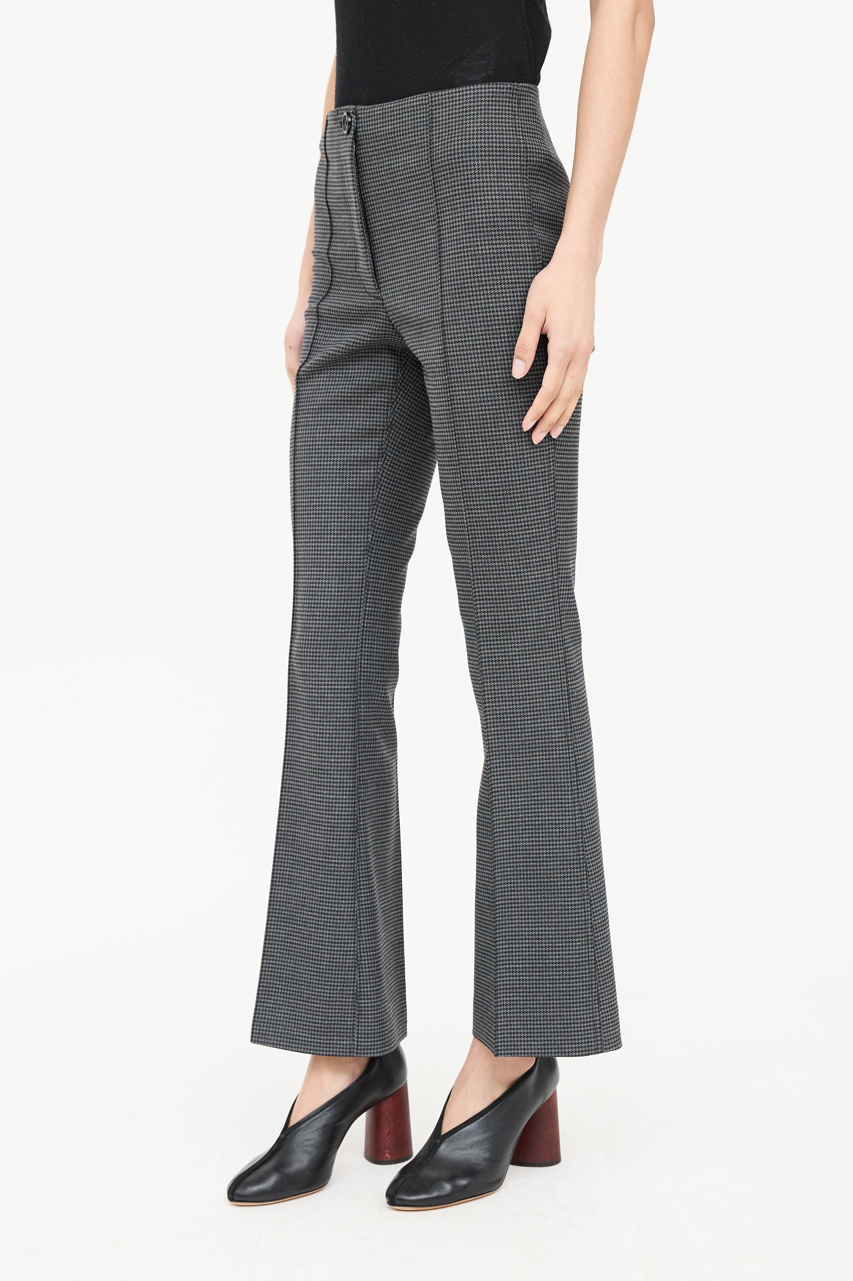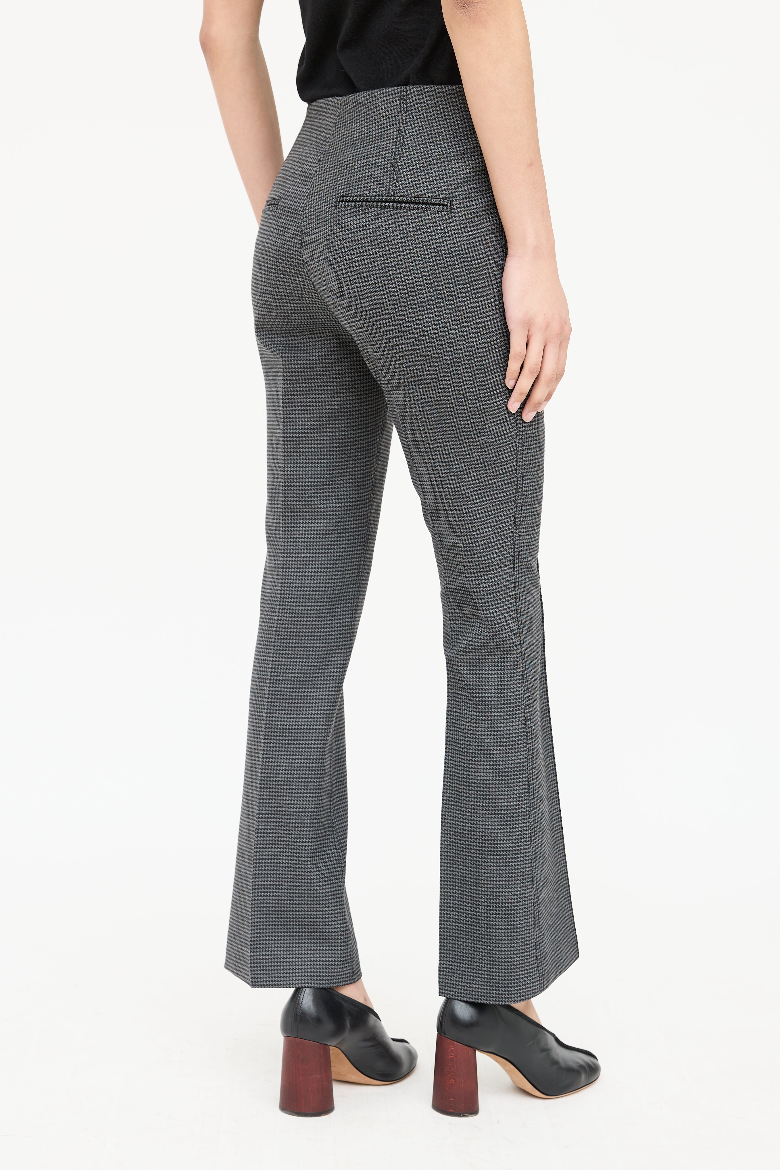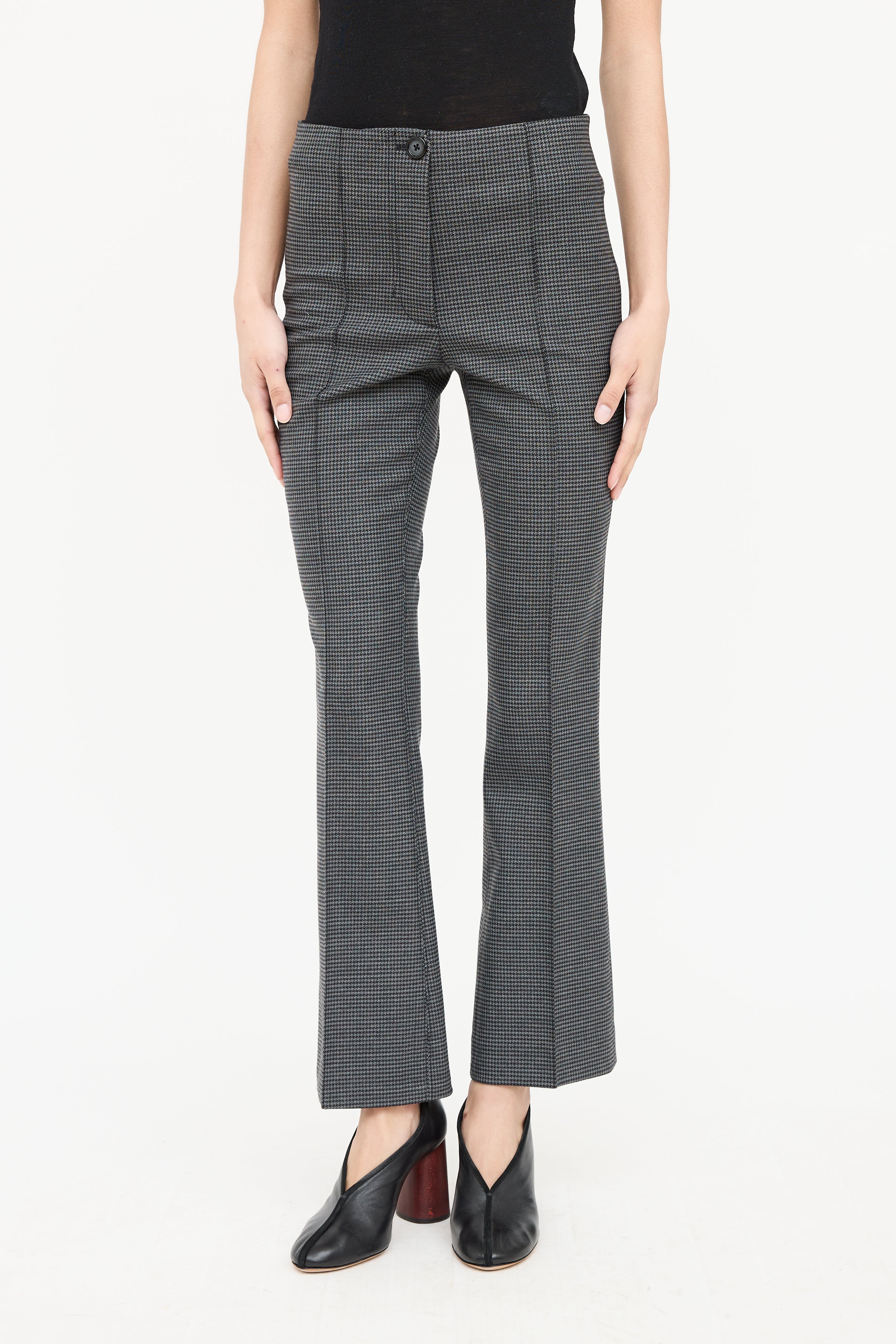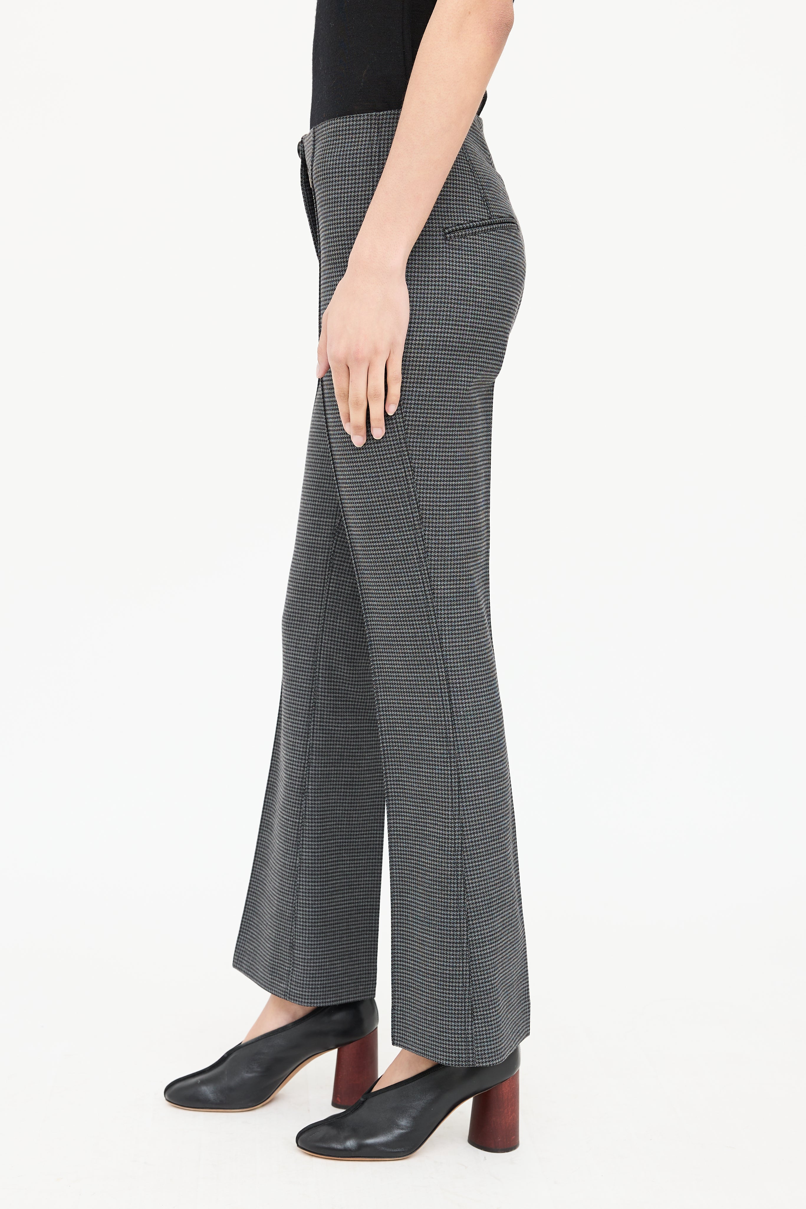Pre-owned Helmut Lang black and grey pants featuring houndstooth pattern, button and zip closure, high rise, dual stitched slip pockets on back and centre seam.