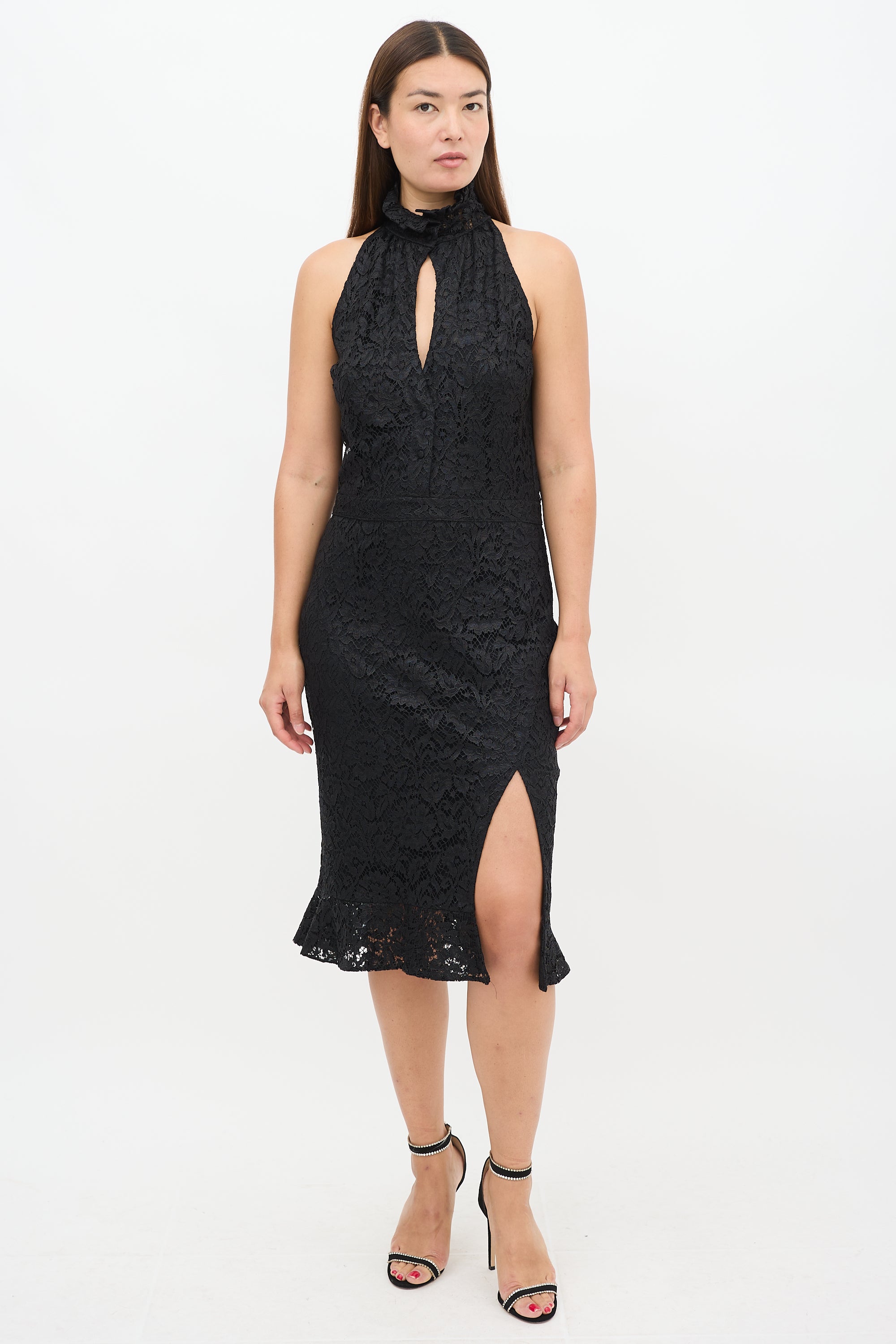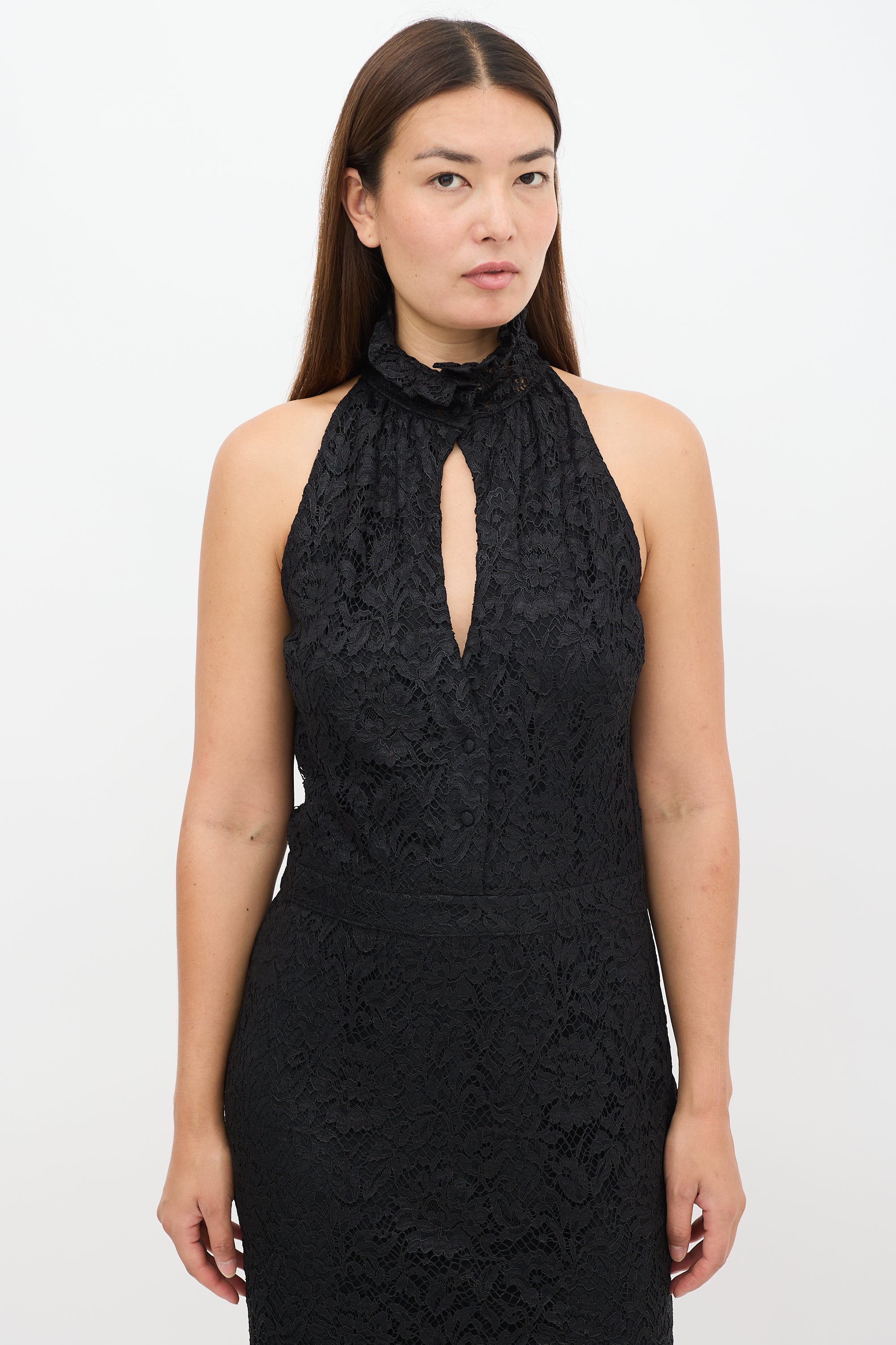 Black Floral Lace High Neck Dress IT 44 Size Guide