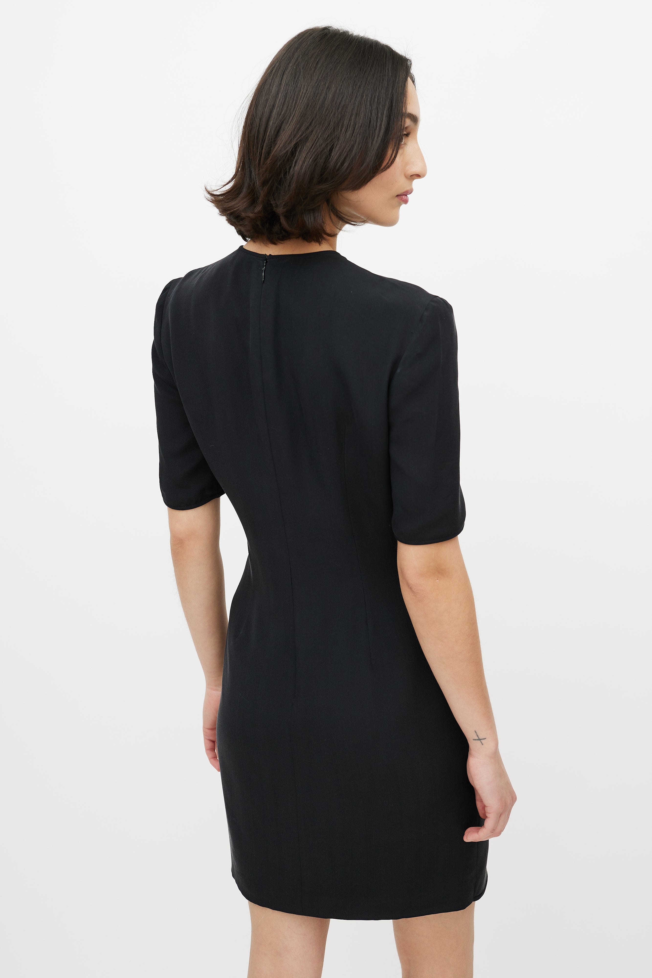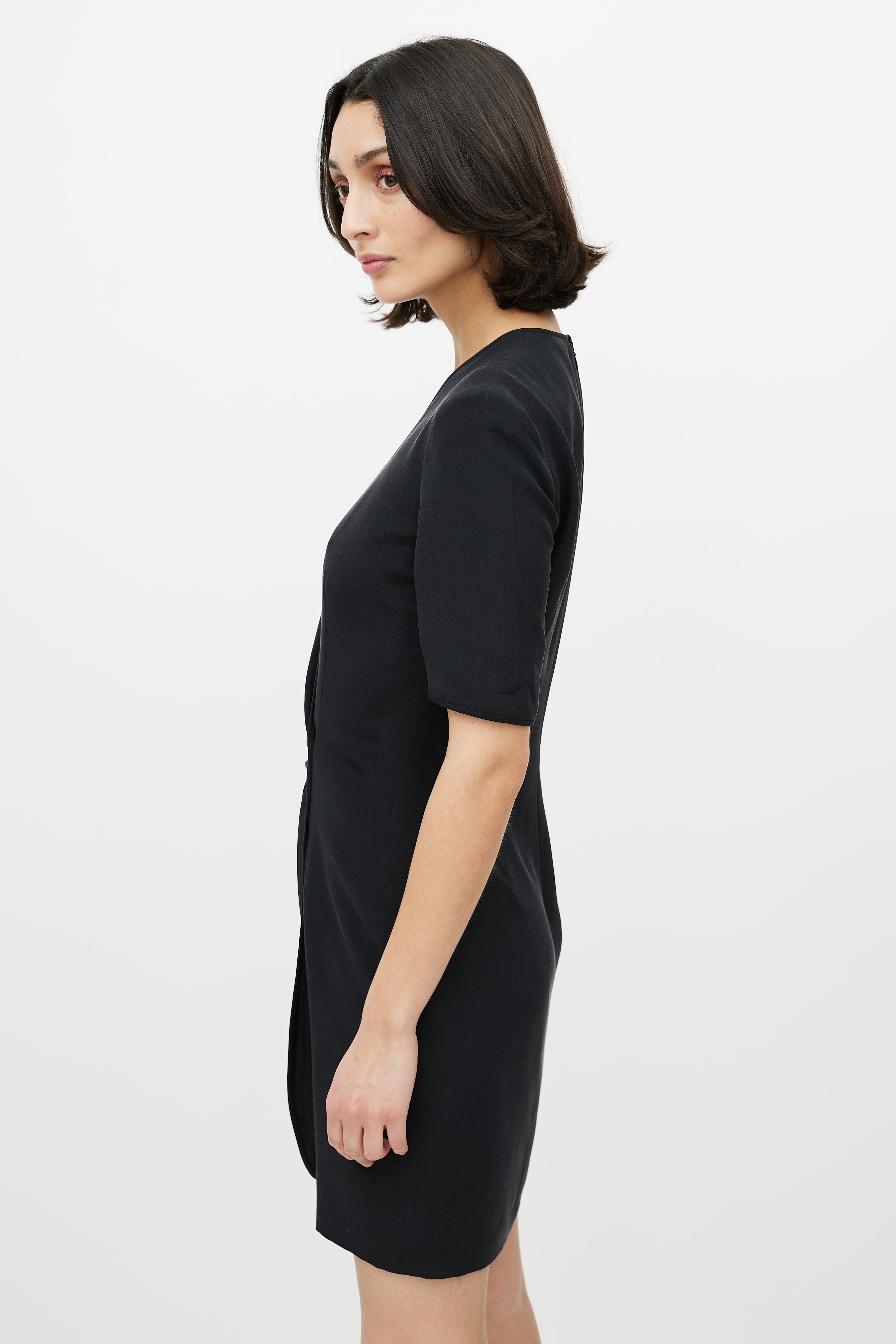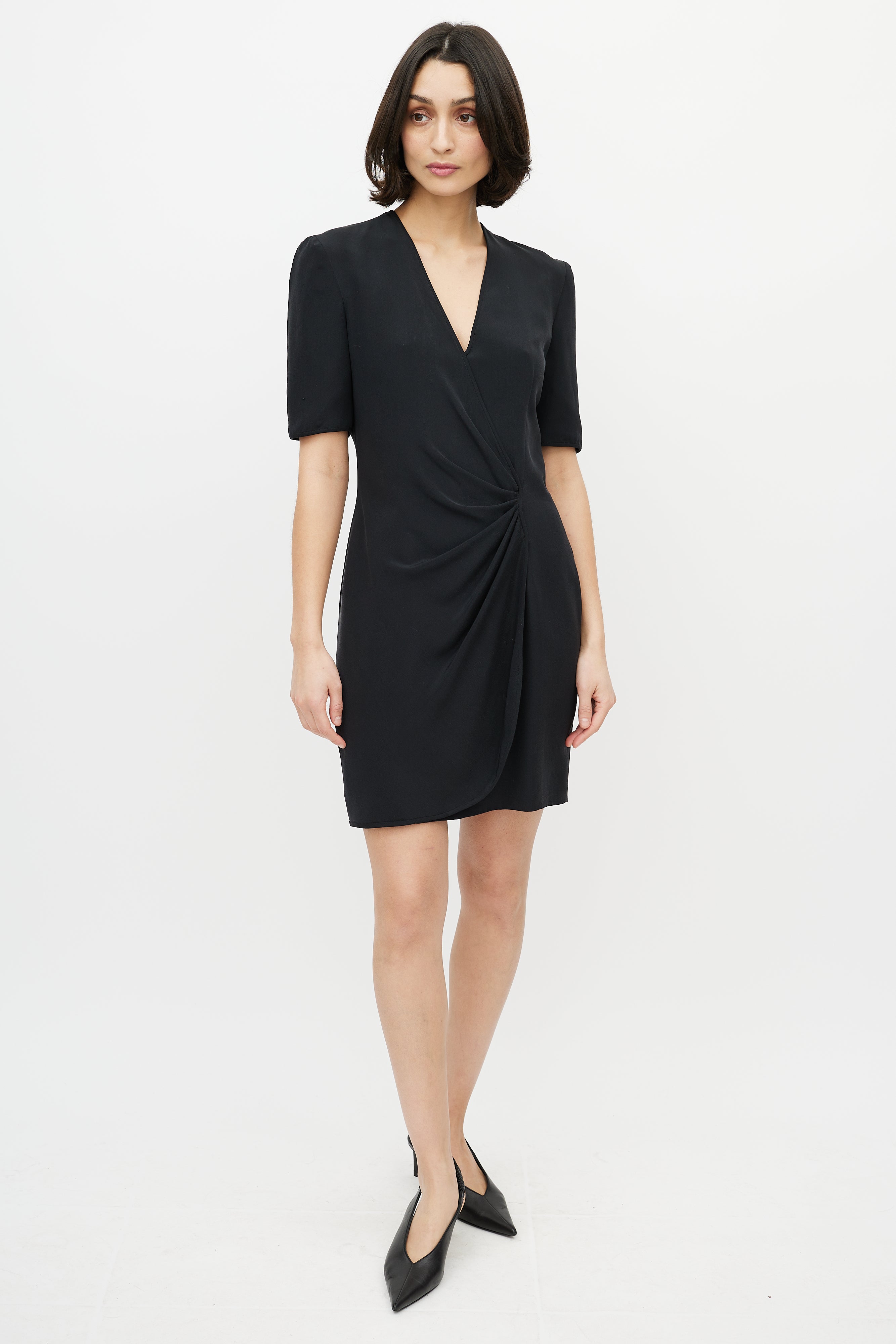 Black Silk Gathered V-Neck Dress IT 38 Size Guide