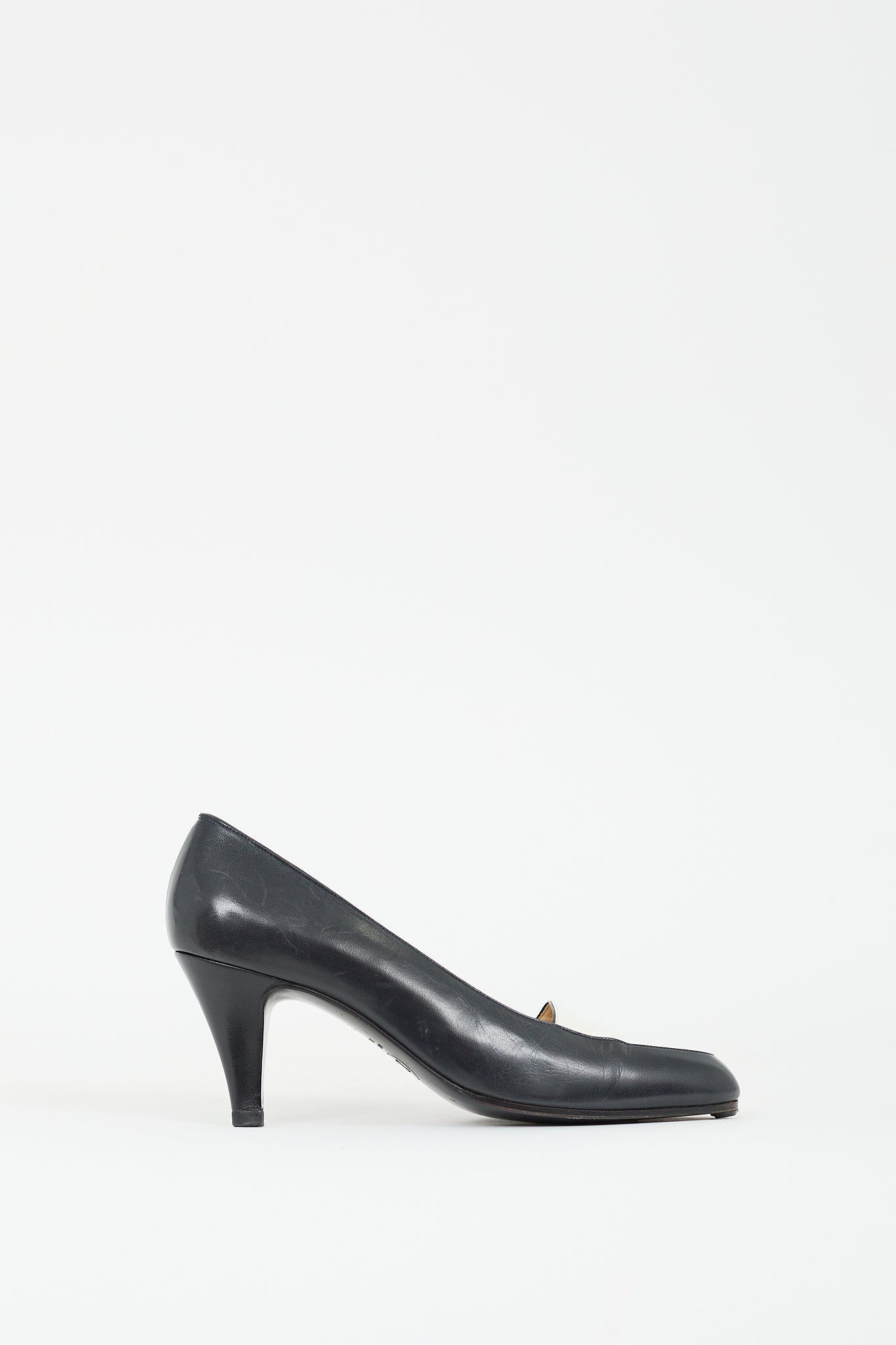 Black & White Leather Panelled Pump FR 37 Size Guide