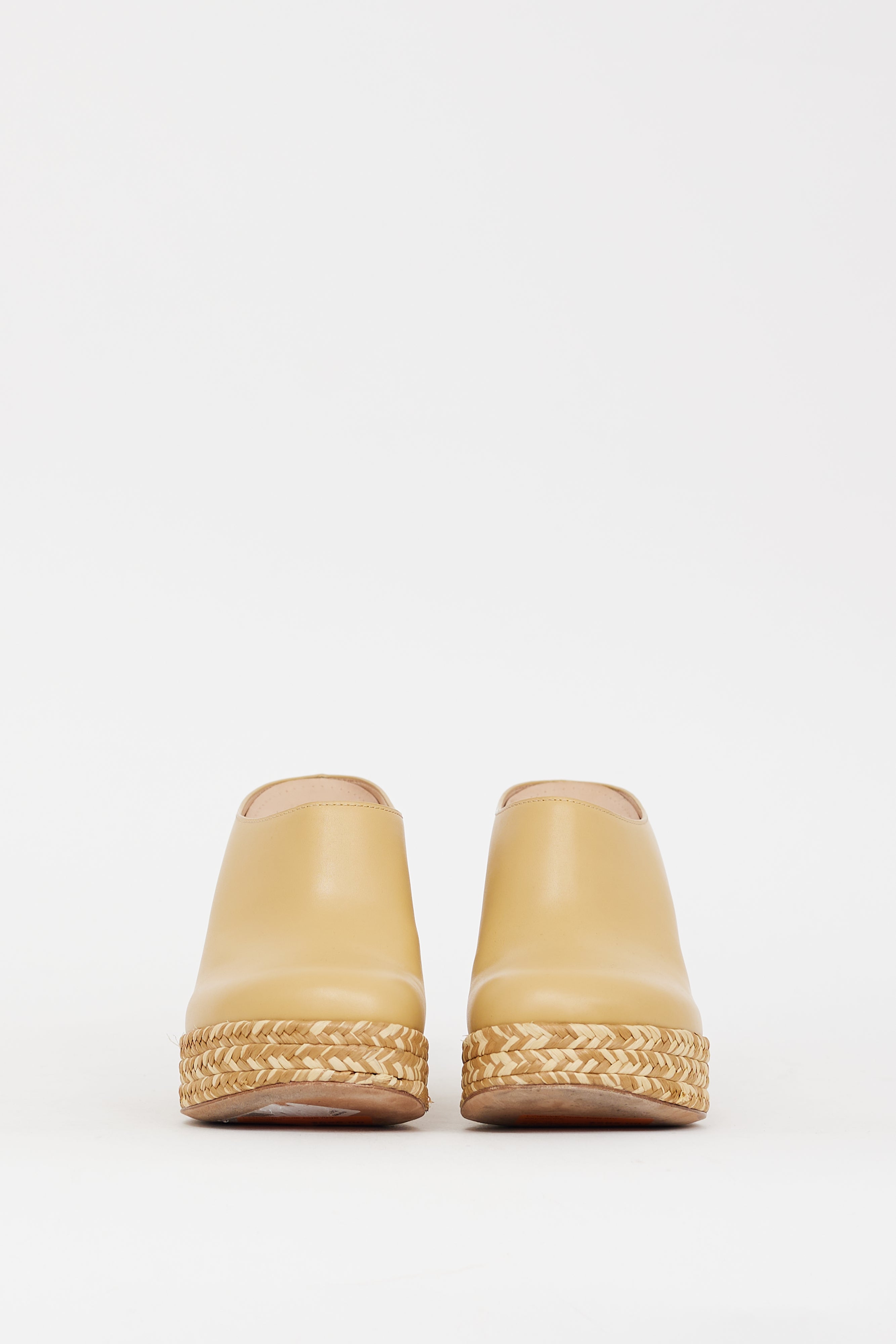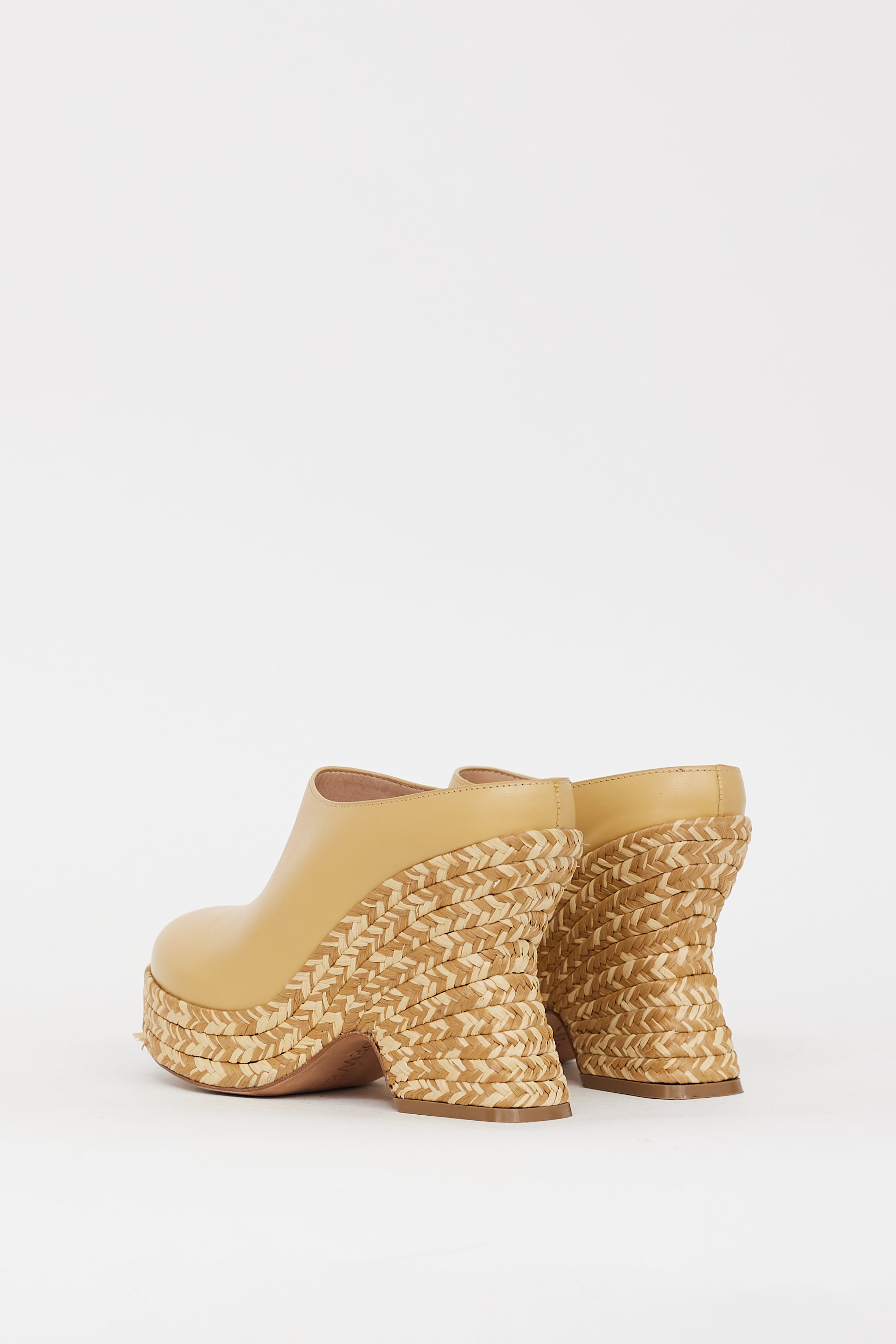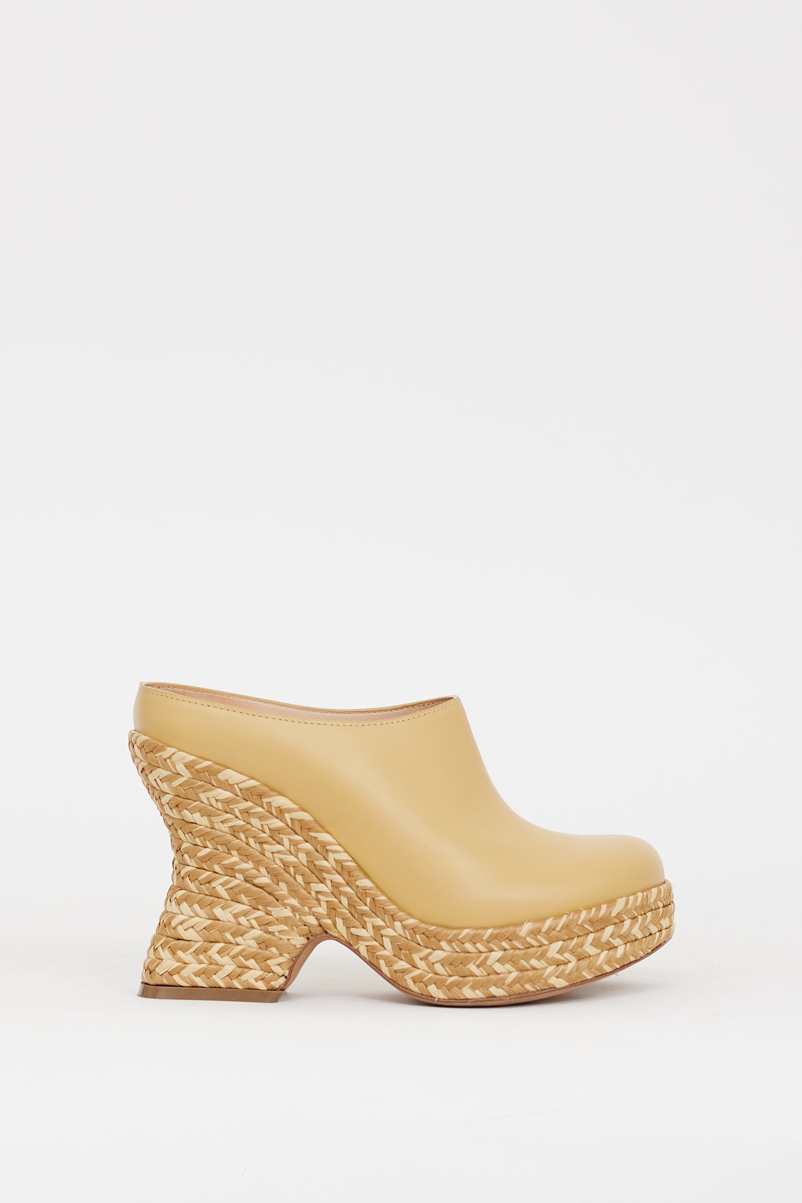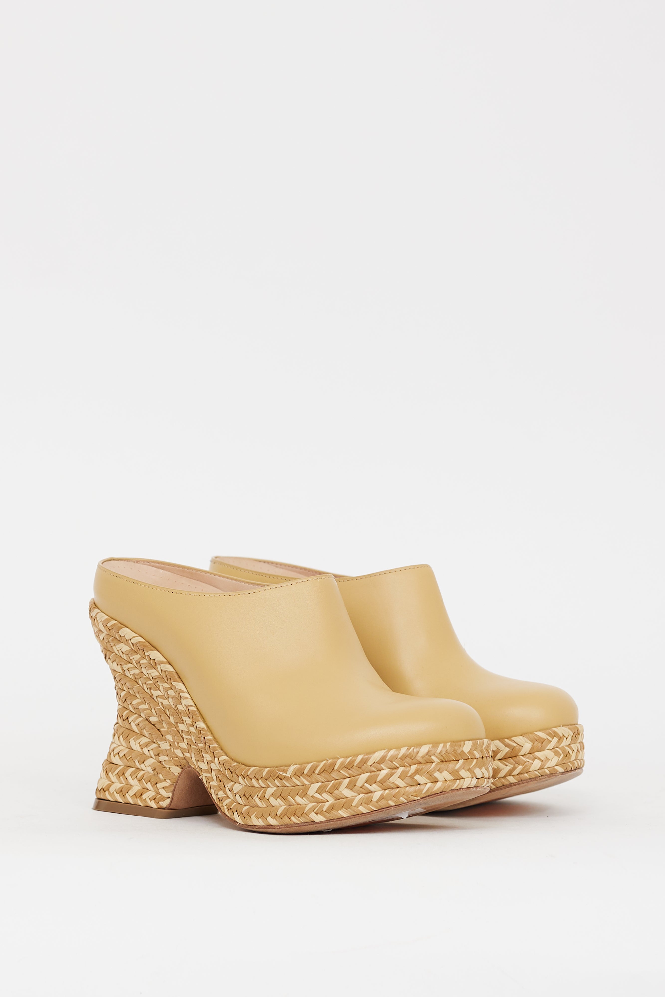 Beige Leather & Raffia Terra Platform Clog IT 36 Size Guide