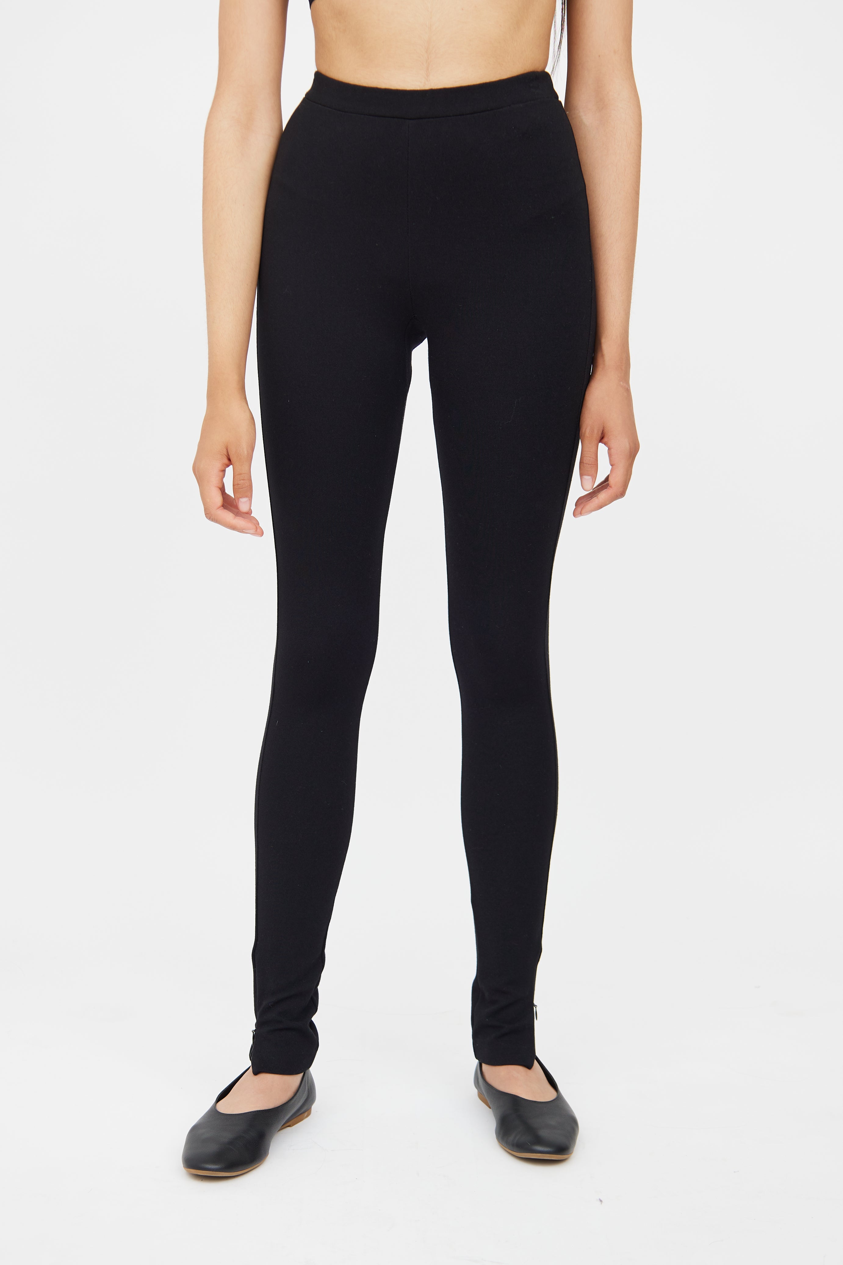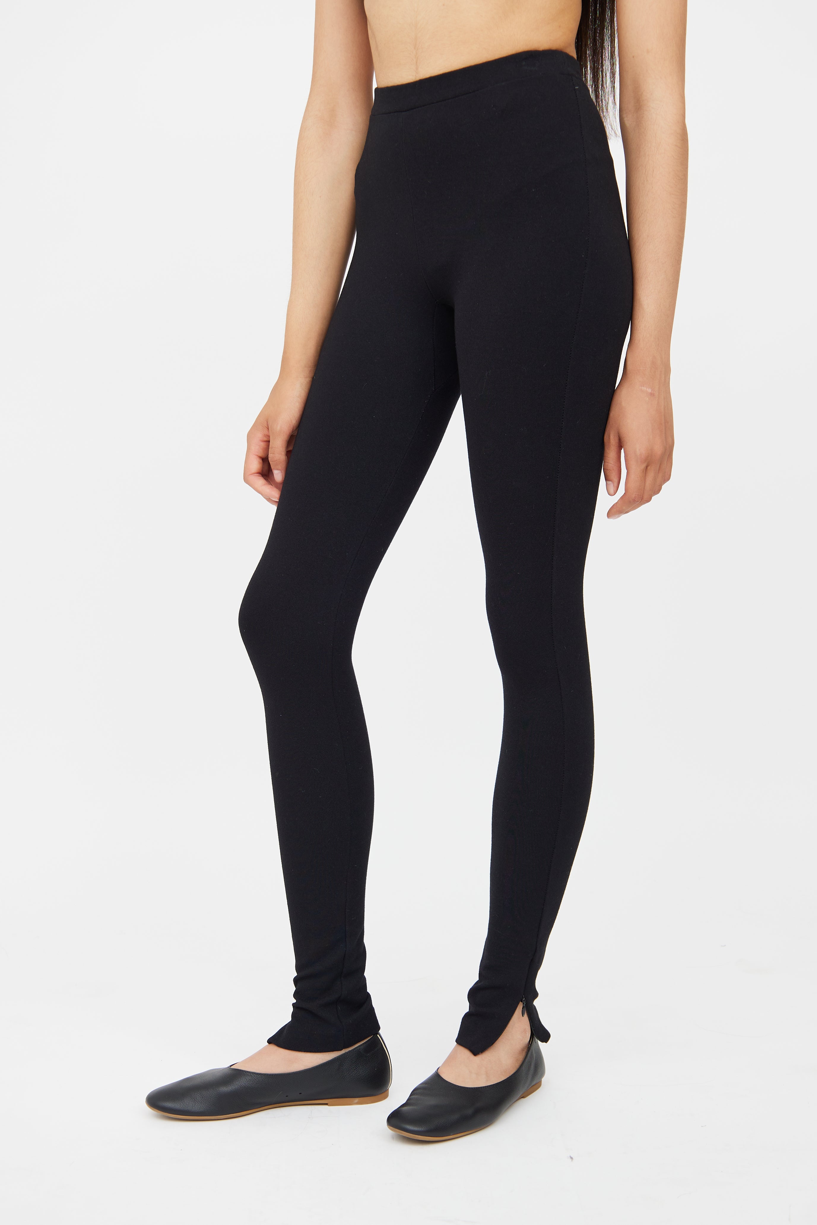 Pre-owned Totême black leggings featuring elastic waistband and zip detail at hem.