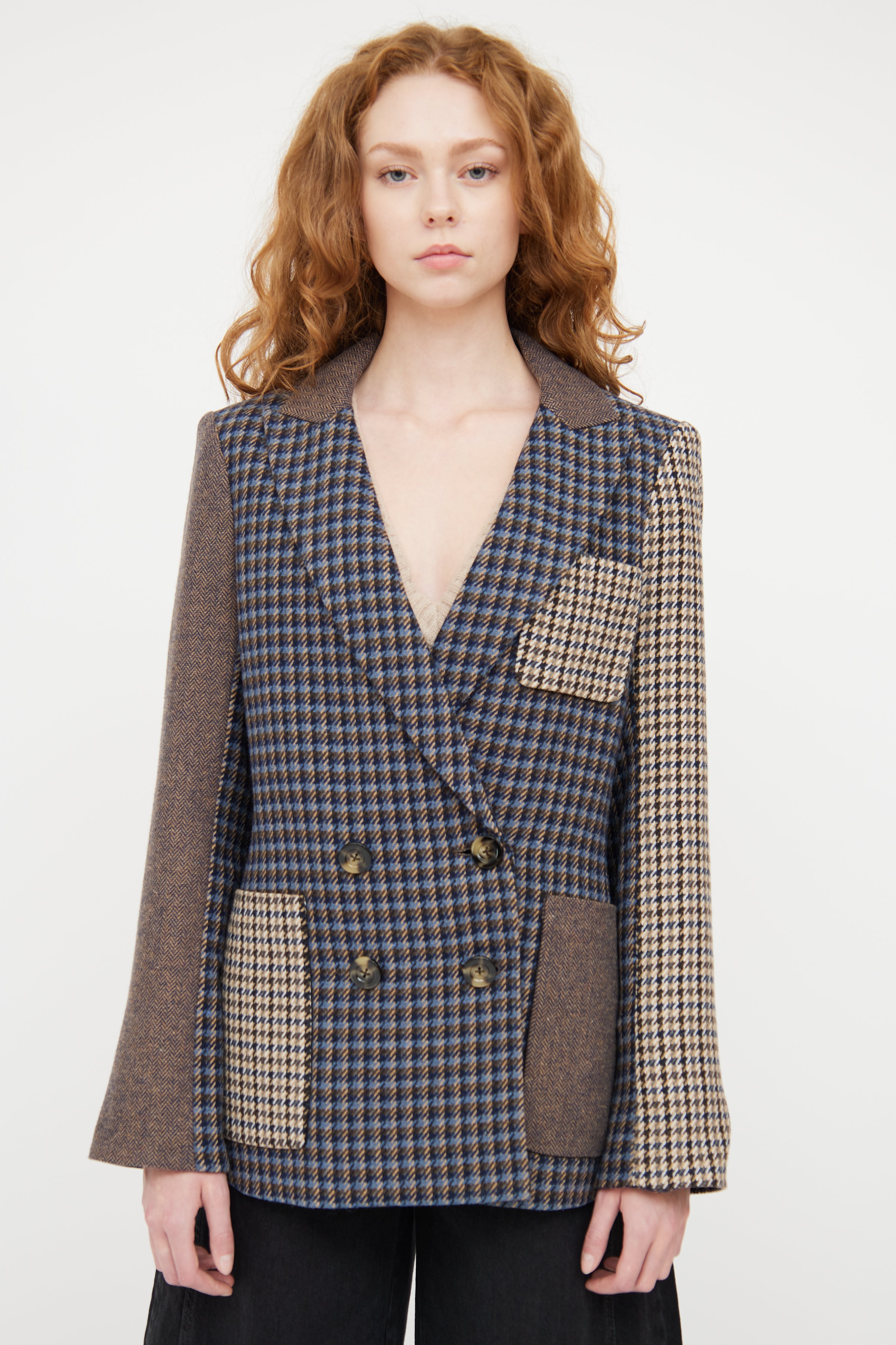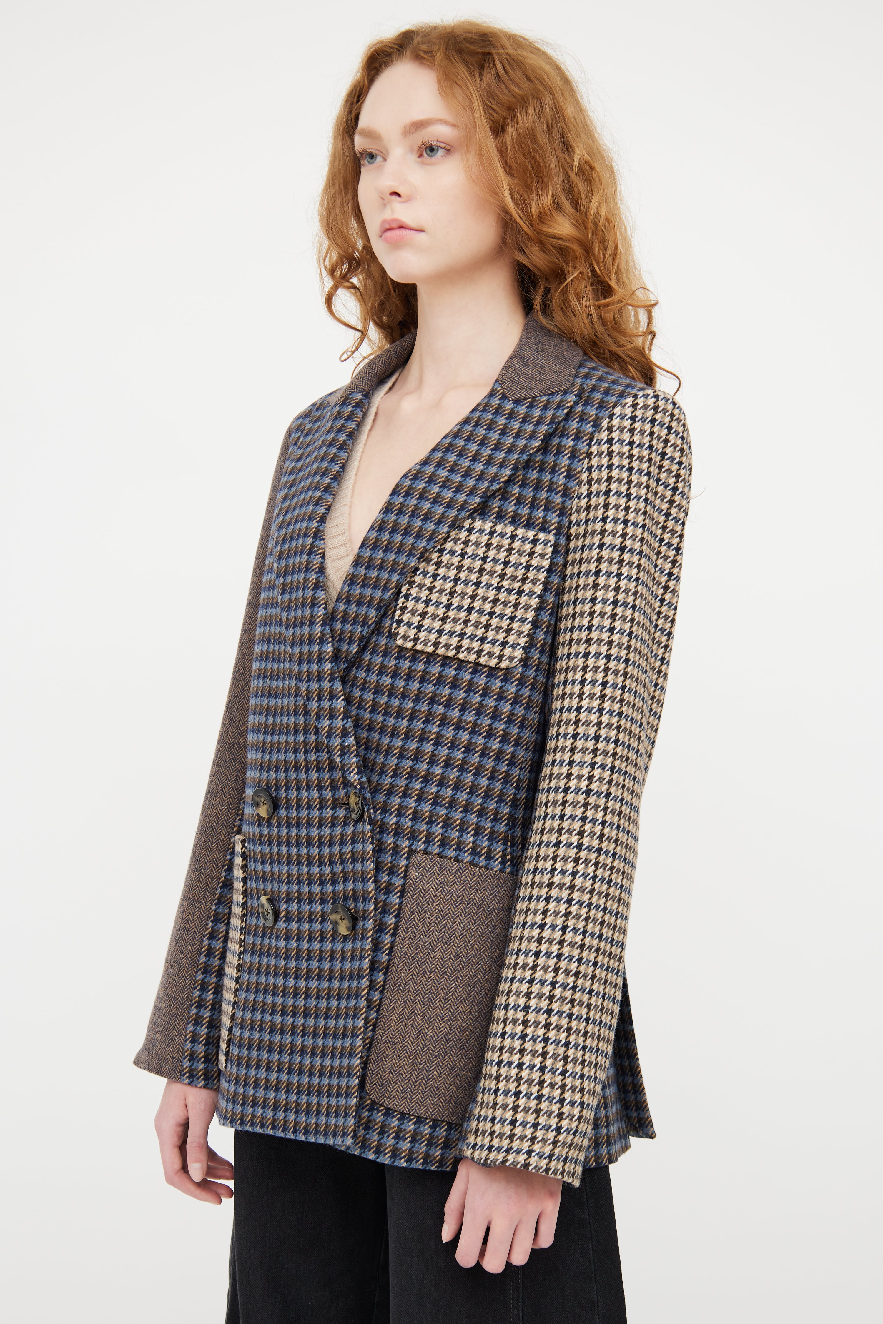 Blue & Multicolour Houndstooth Blazer US 6 Size Guide