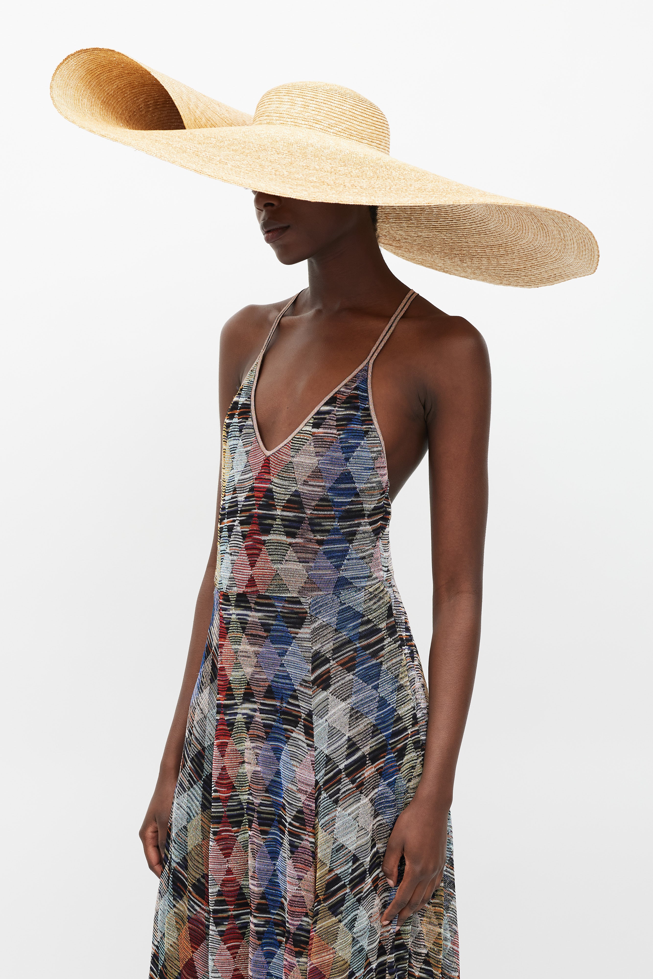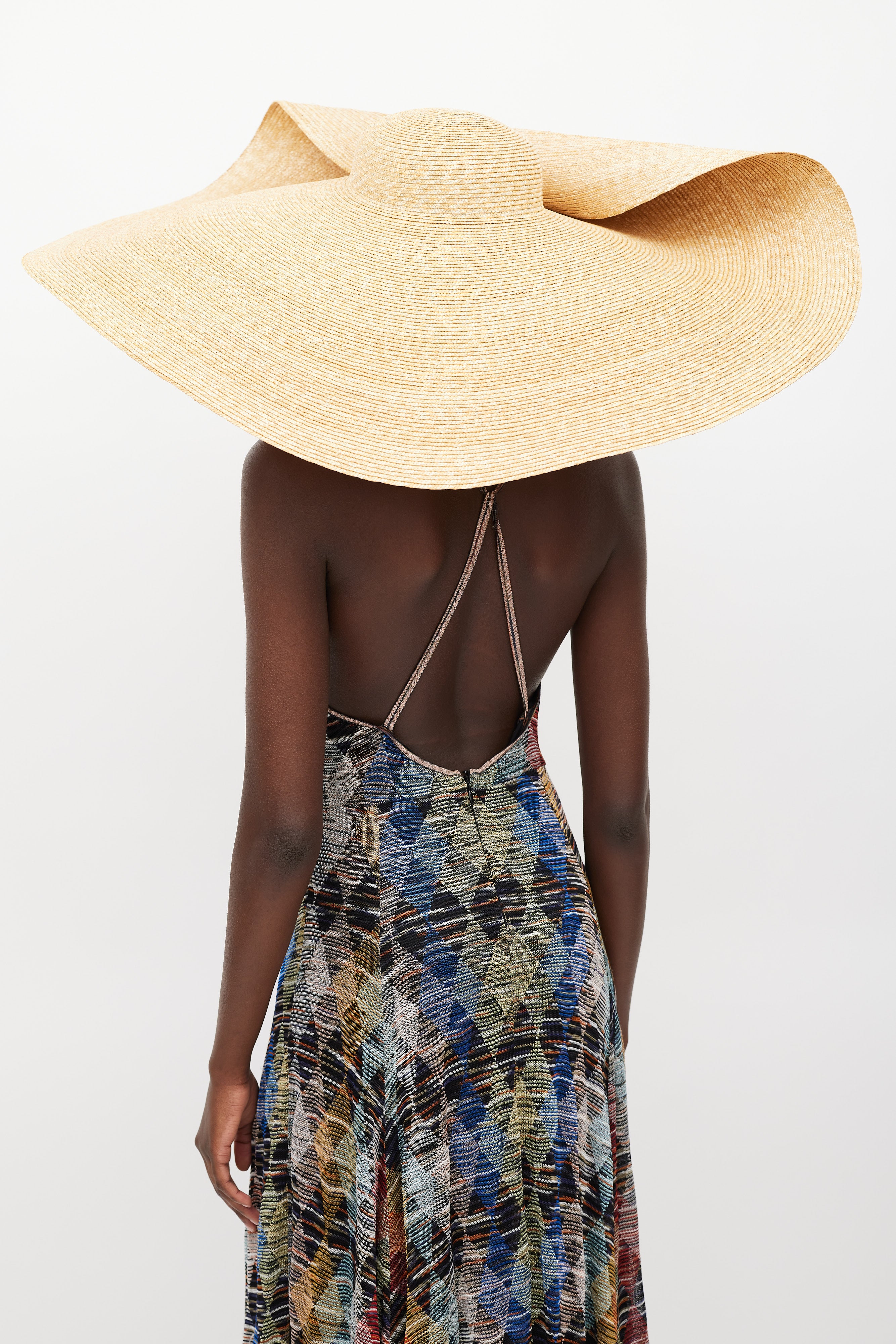 Pre-owned Jacquemus beige Le Raphia Le Chapeau Bomba hat featuring woven straw rows, partially rolled wide brim, and grosgrain brim lining.