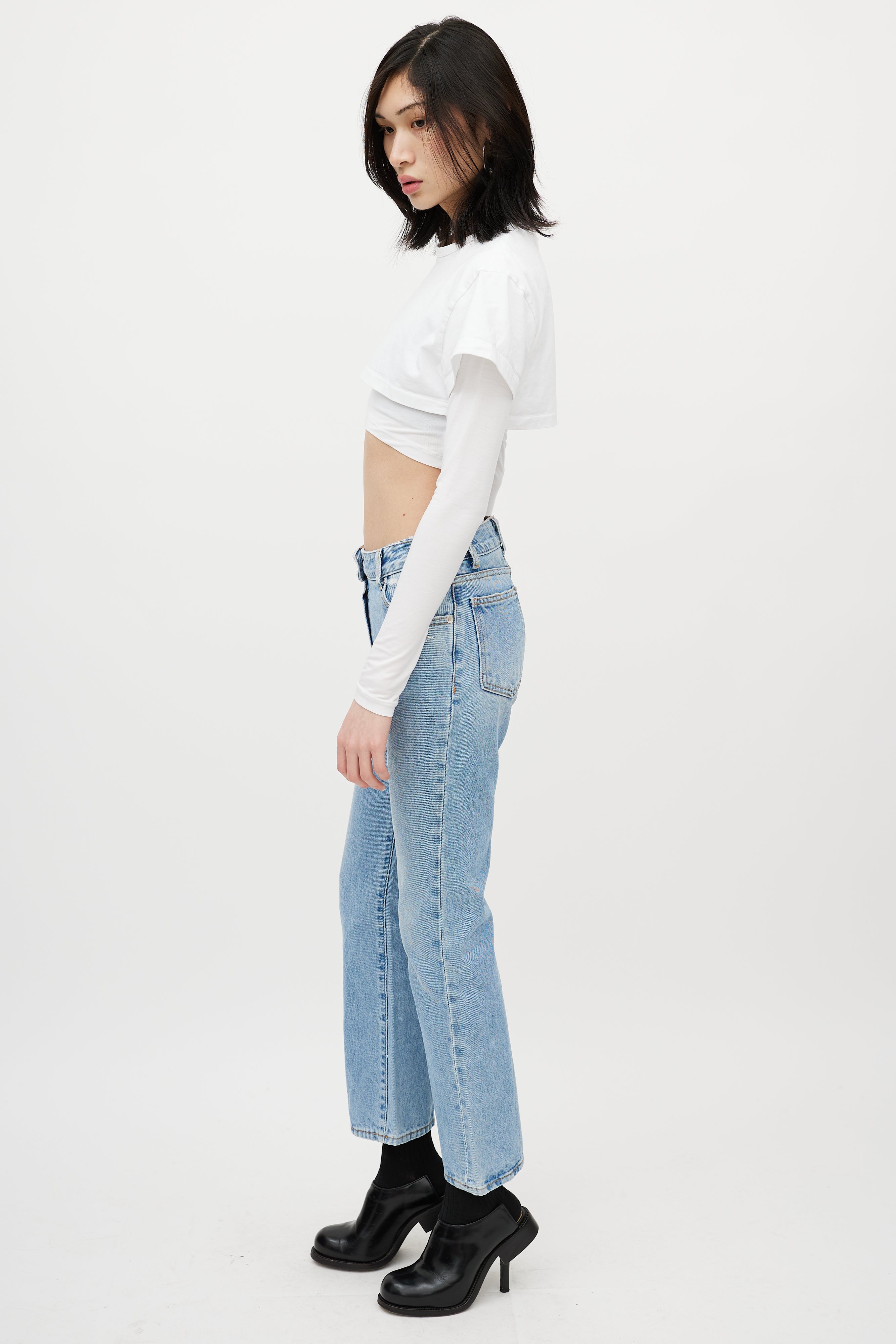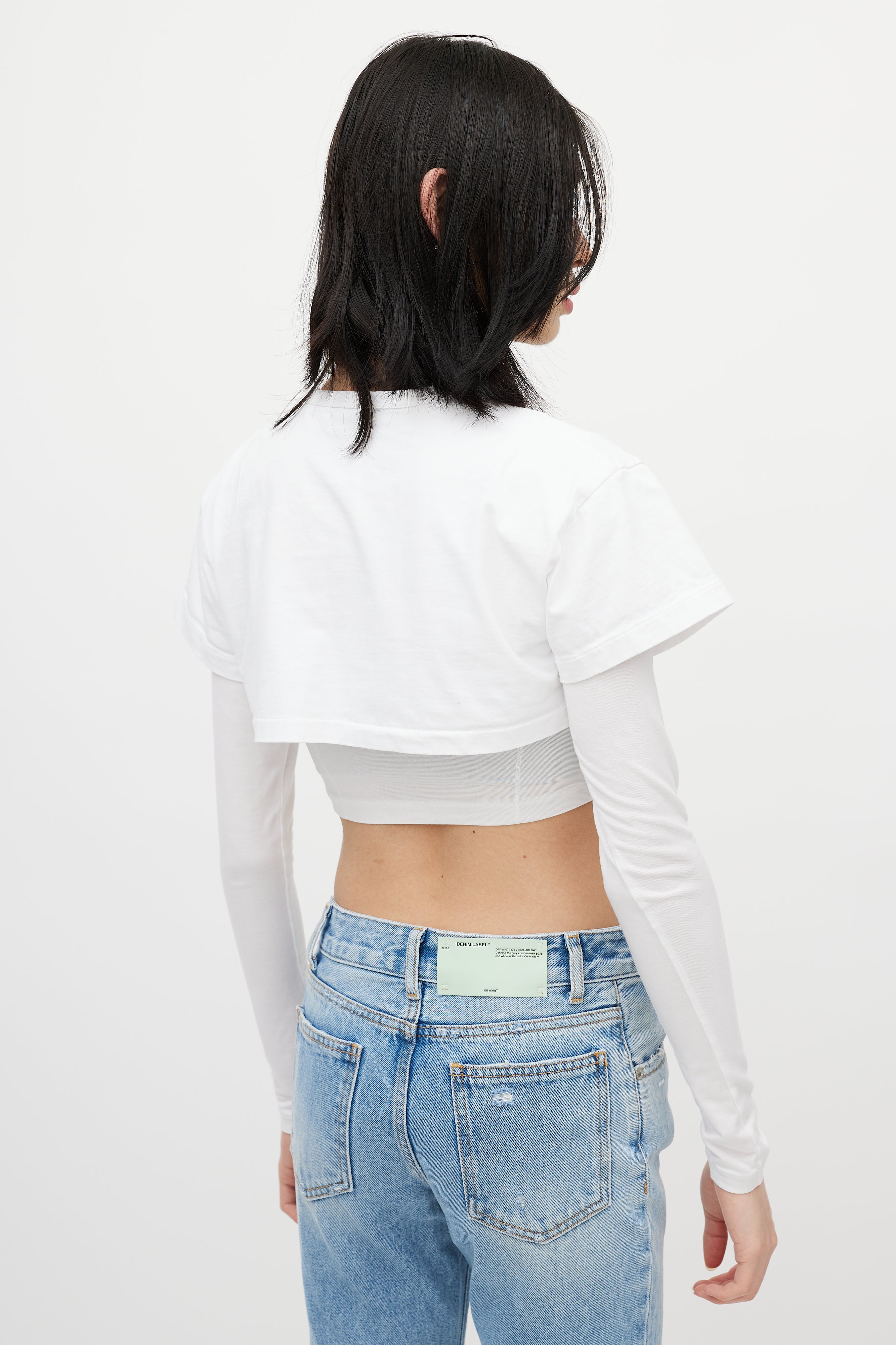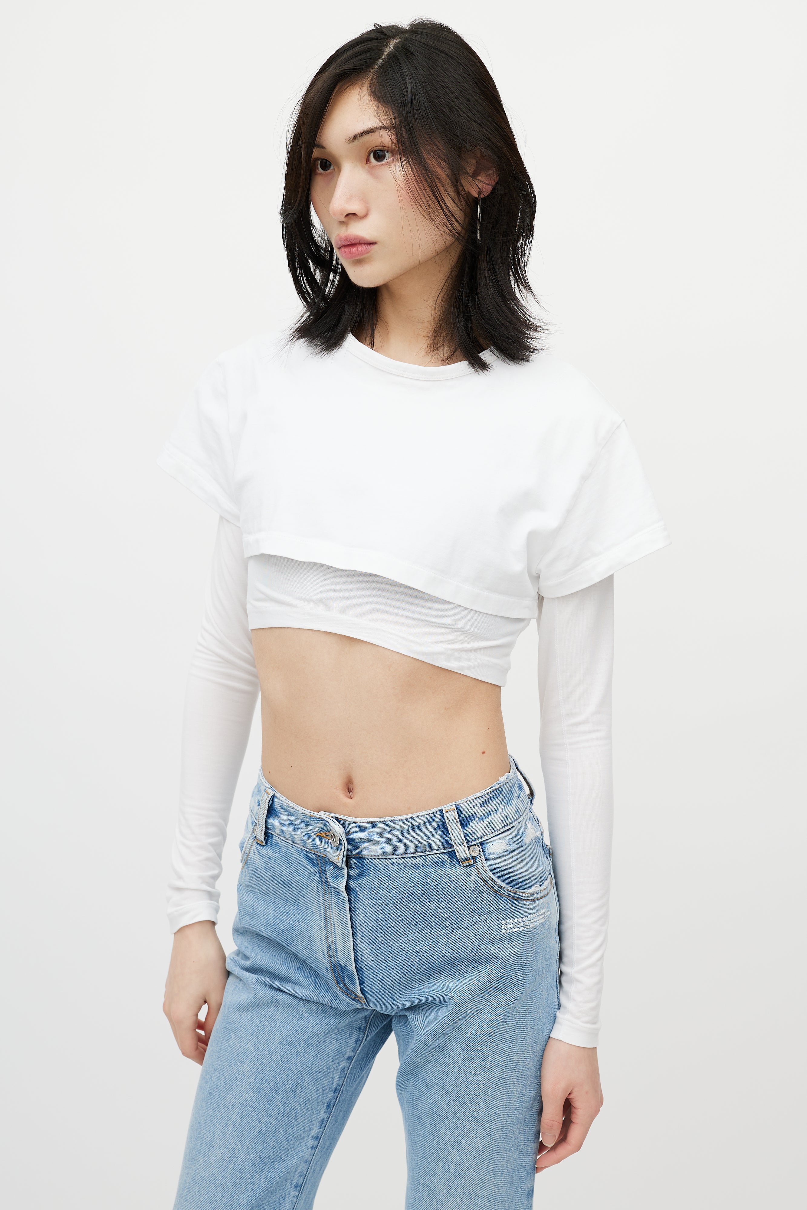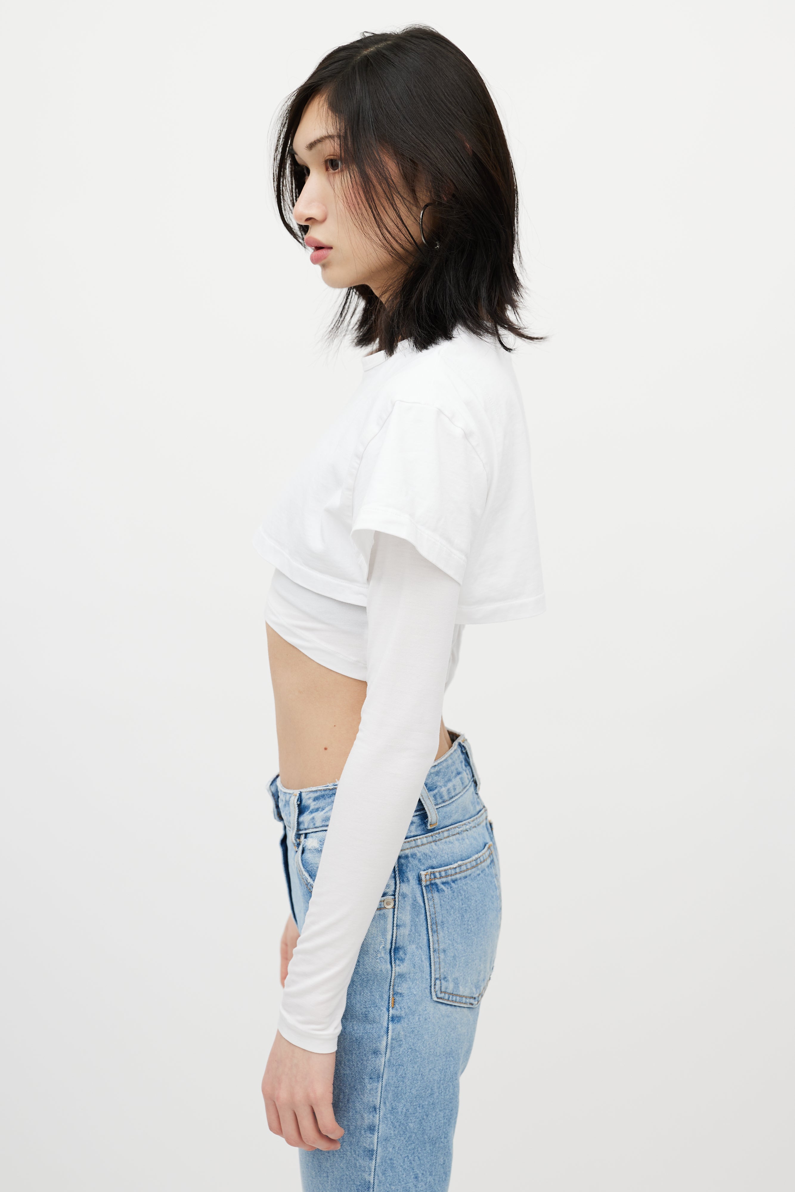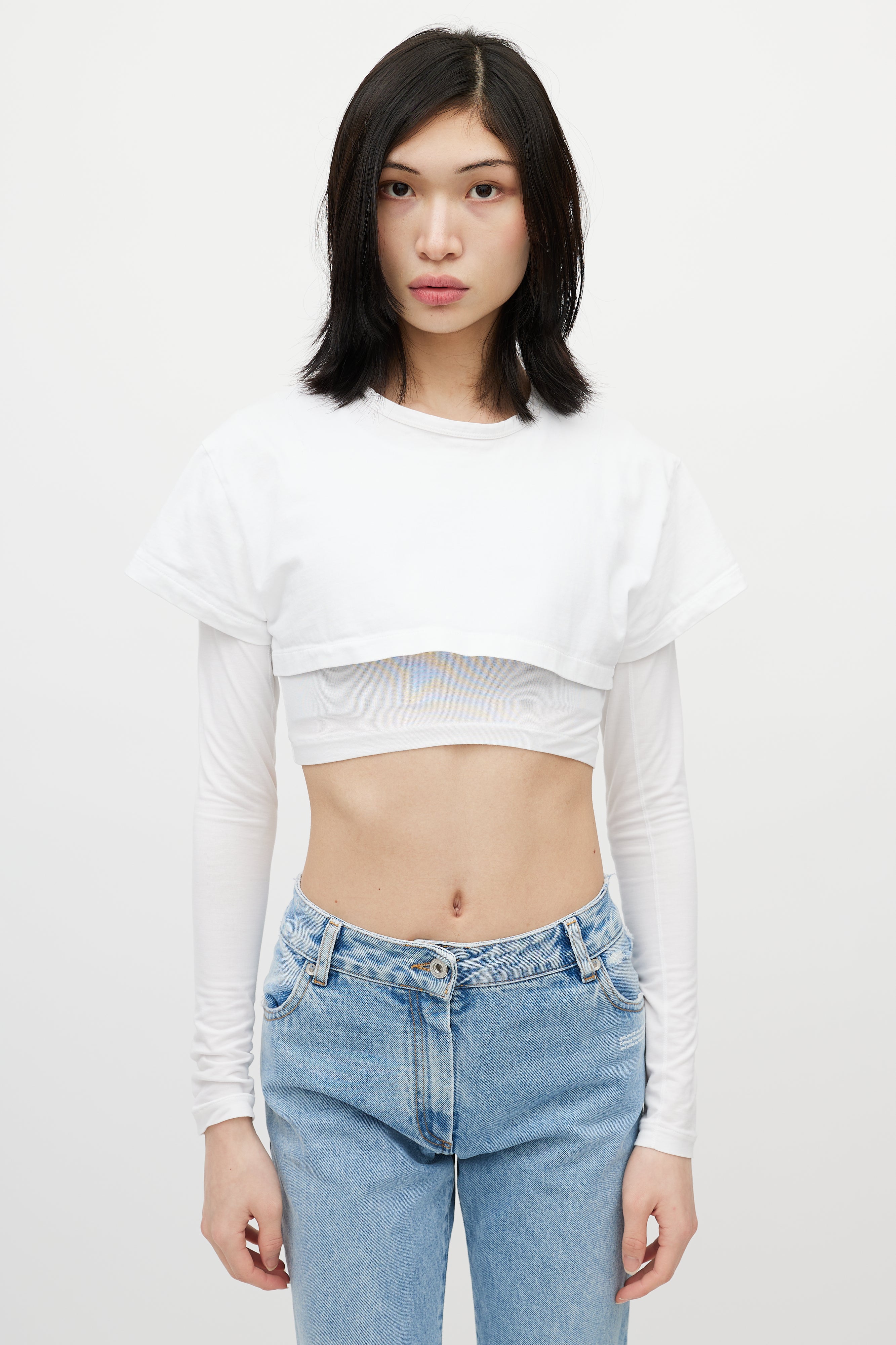 Pre-owned Jacquemus white layered T-shirt featuring a round neckline, long sleeves, and cropped fit.