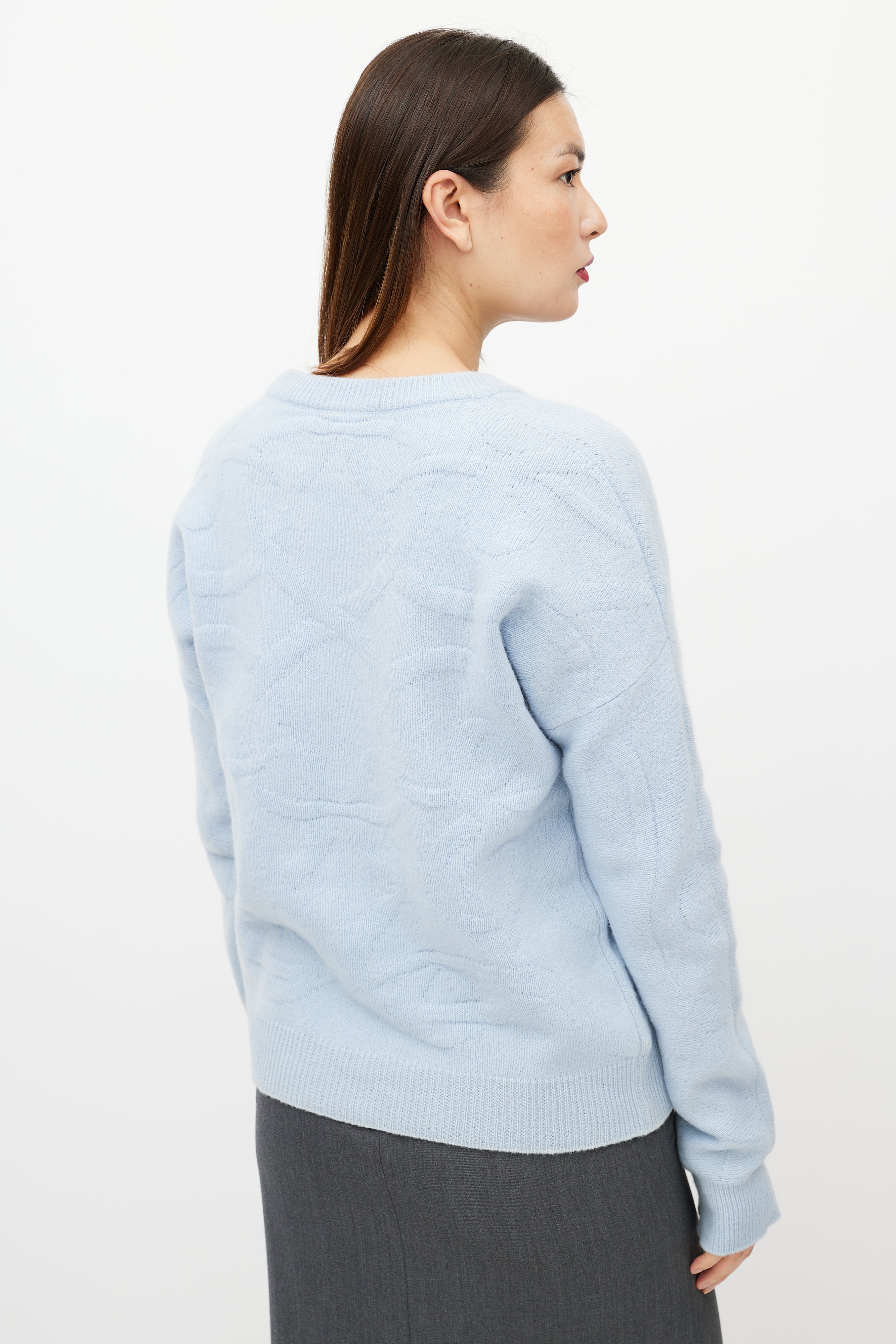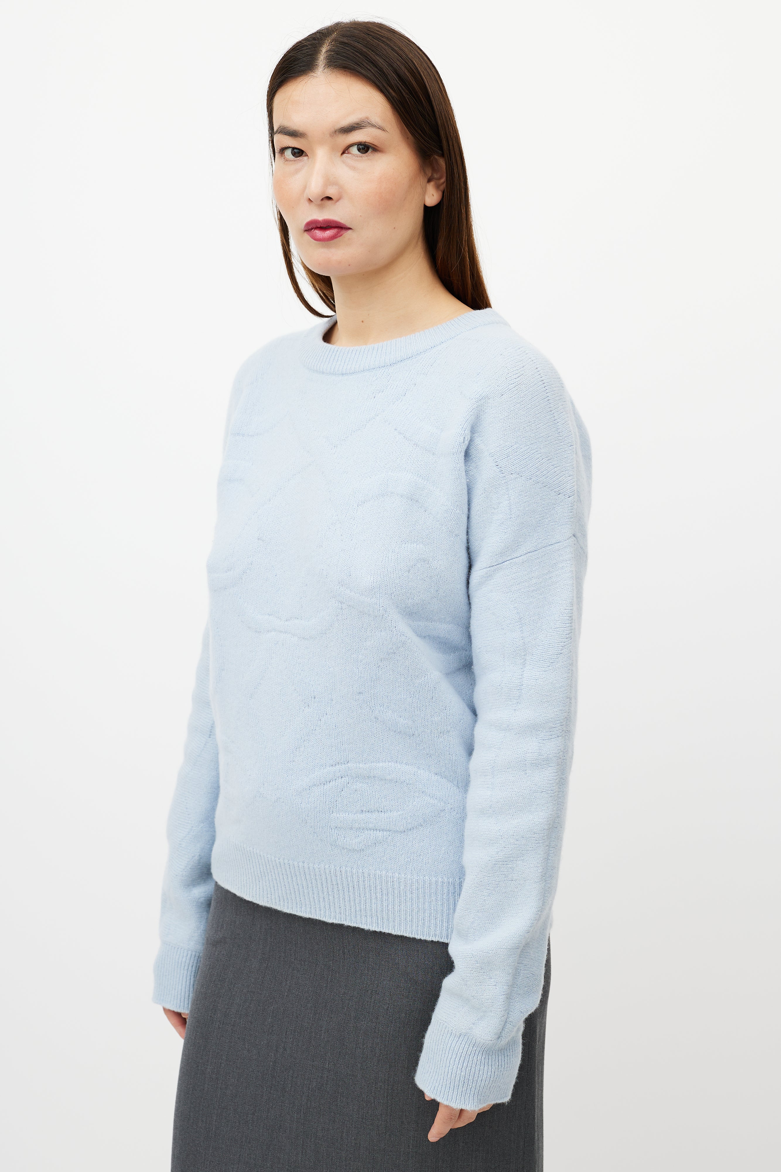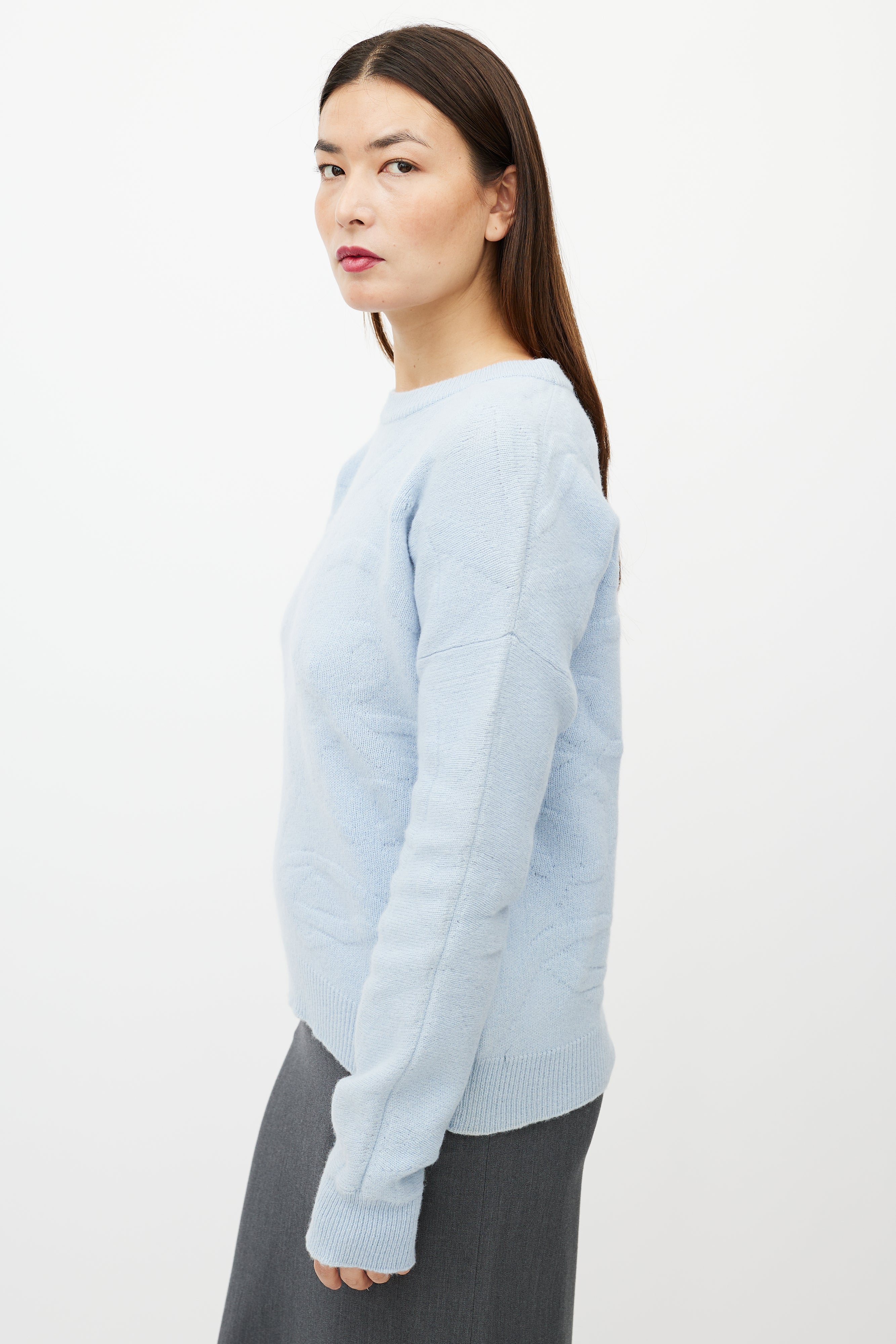 Pre-owned Jil Sander pastel blue wool sweater featuring crew neckline, ribbed hem and cuffs, and abstract intarsia.