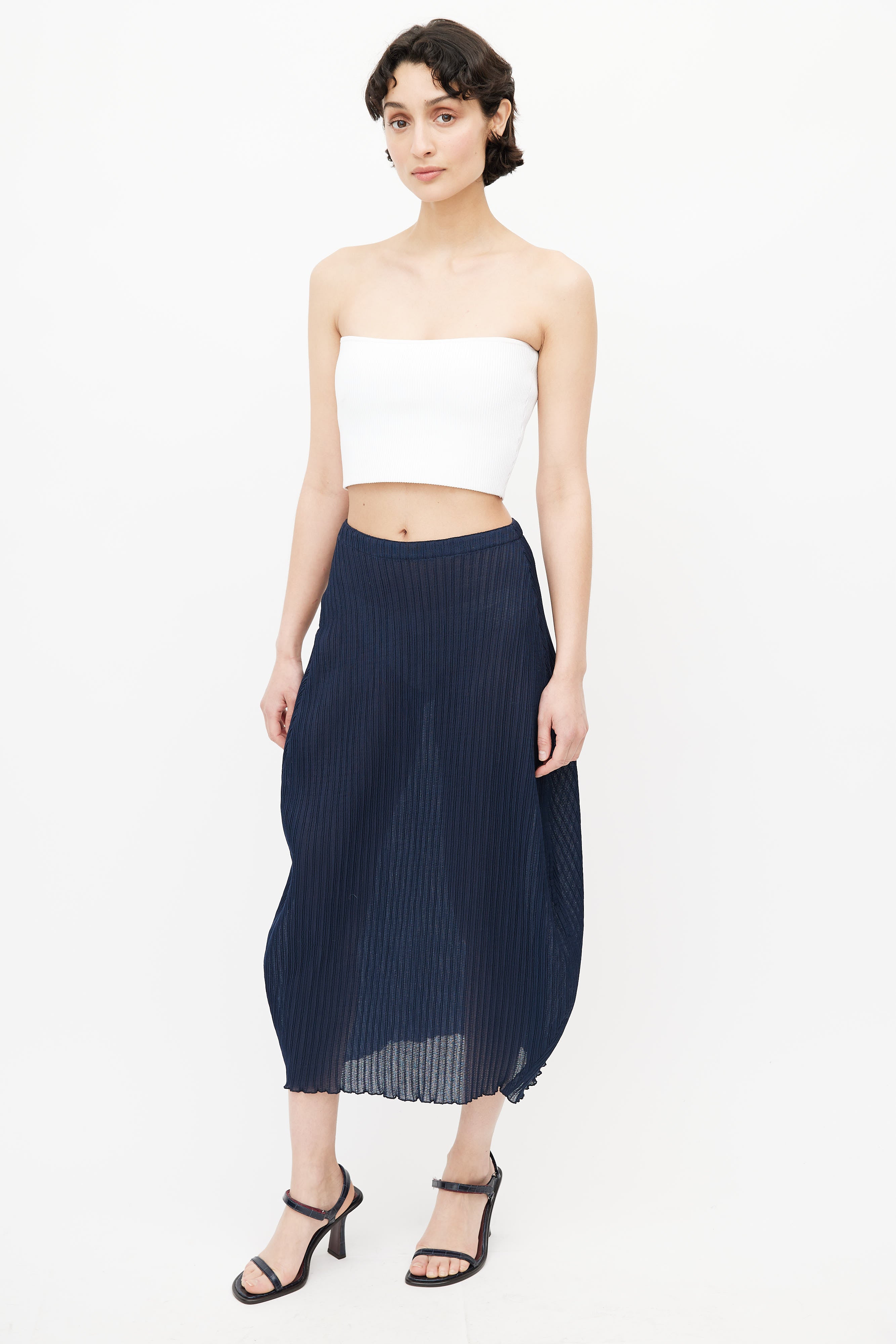 Navy Plissé Midi Skirt X-Small Size Guide