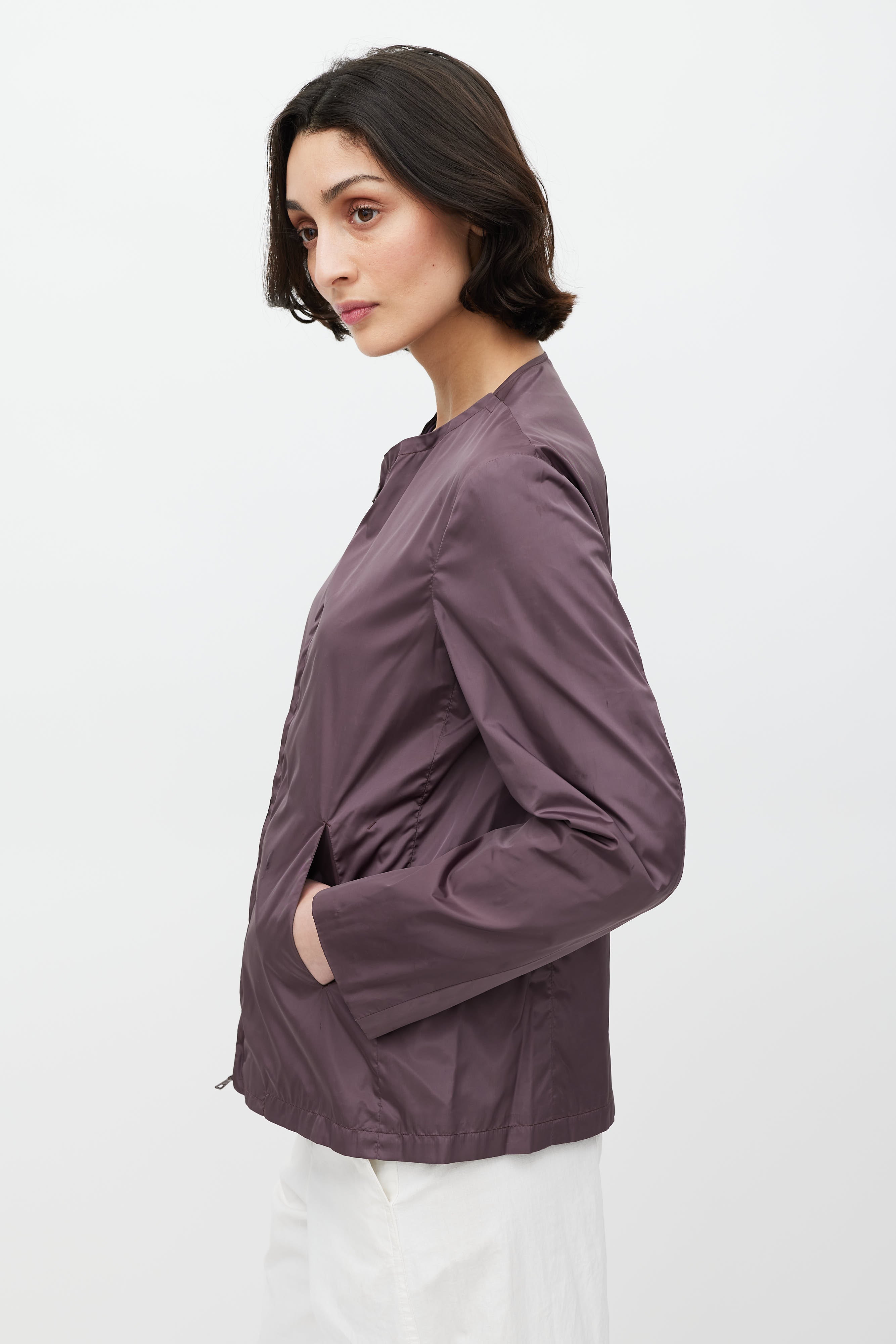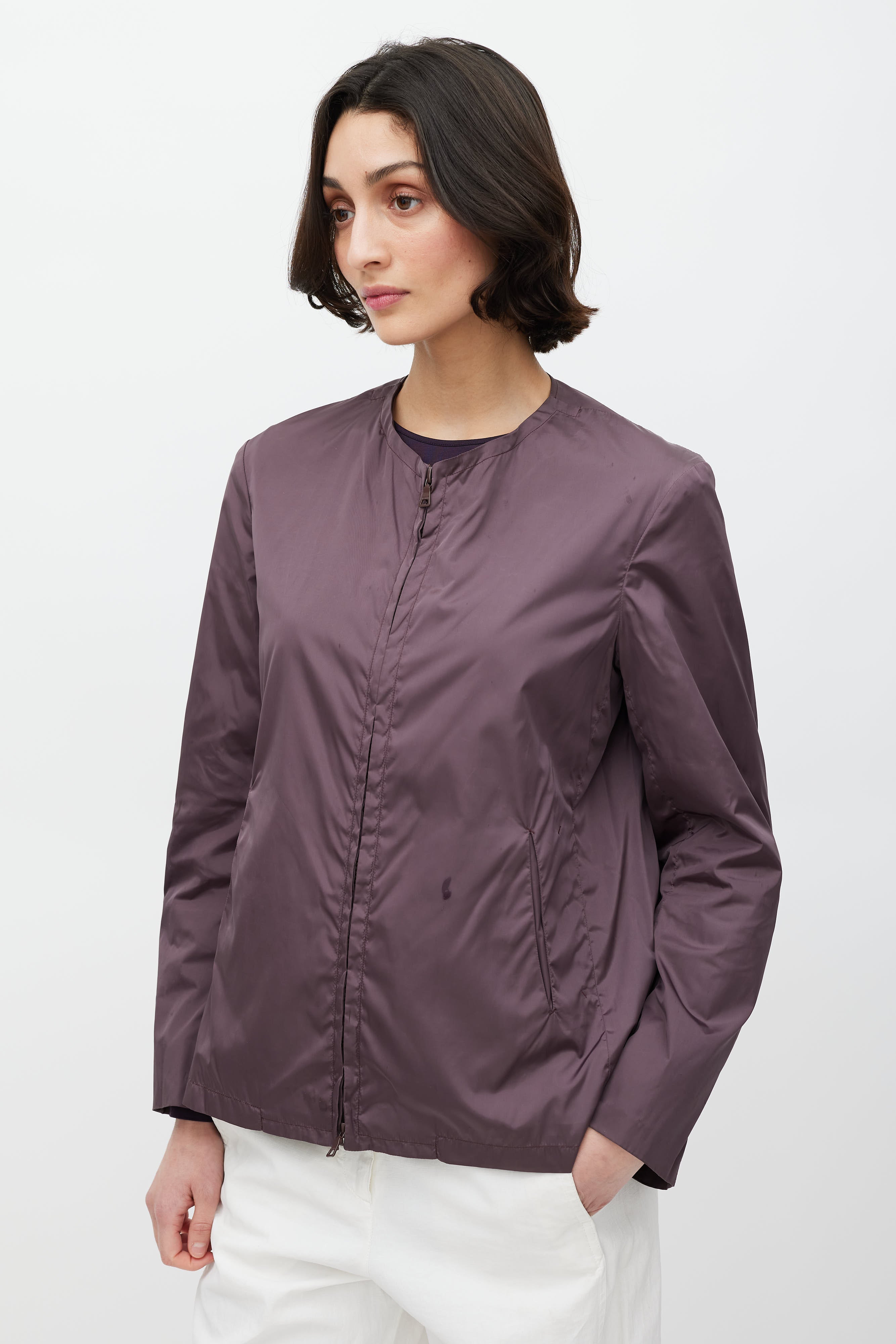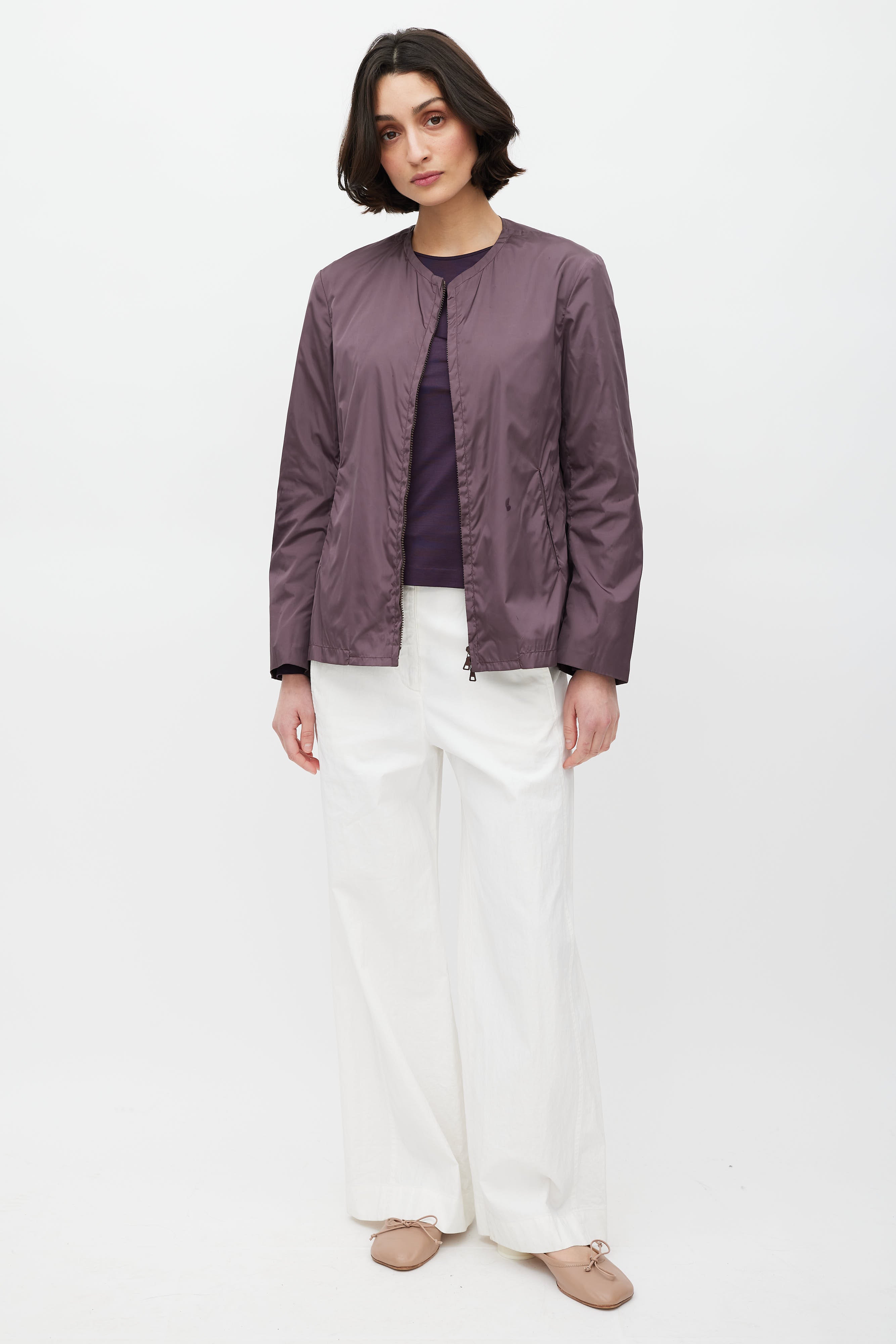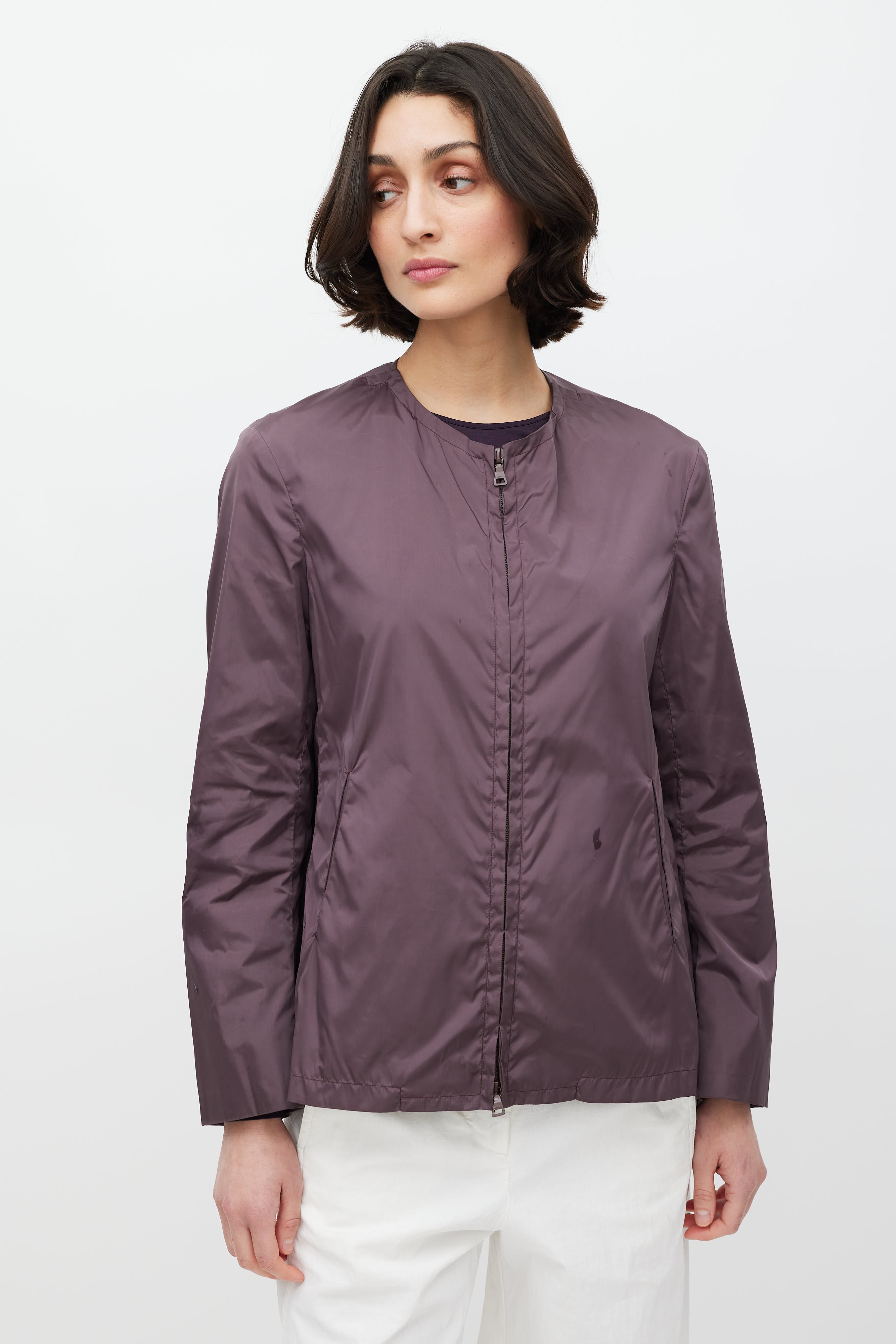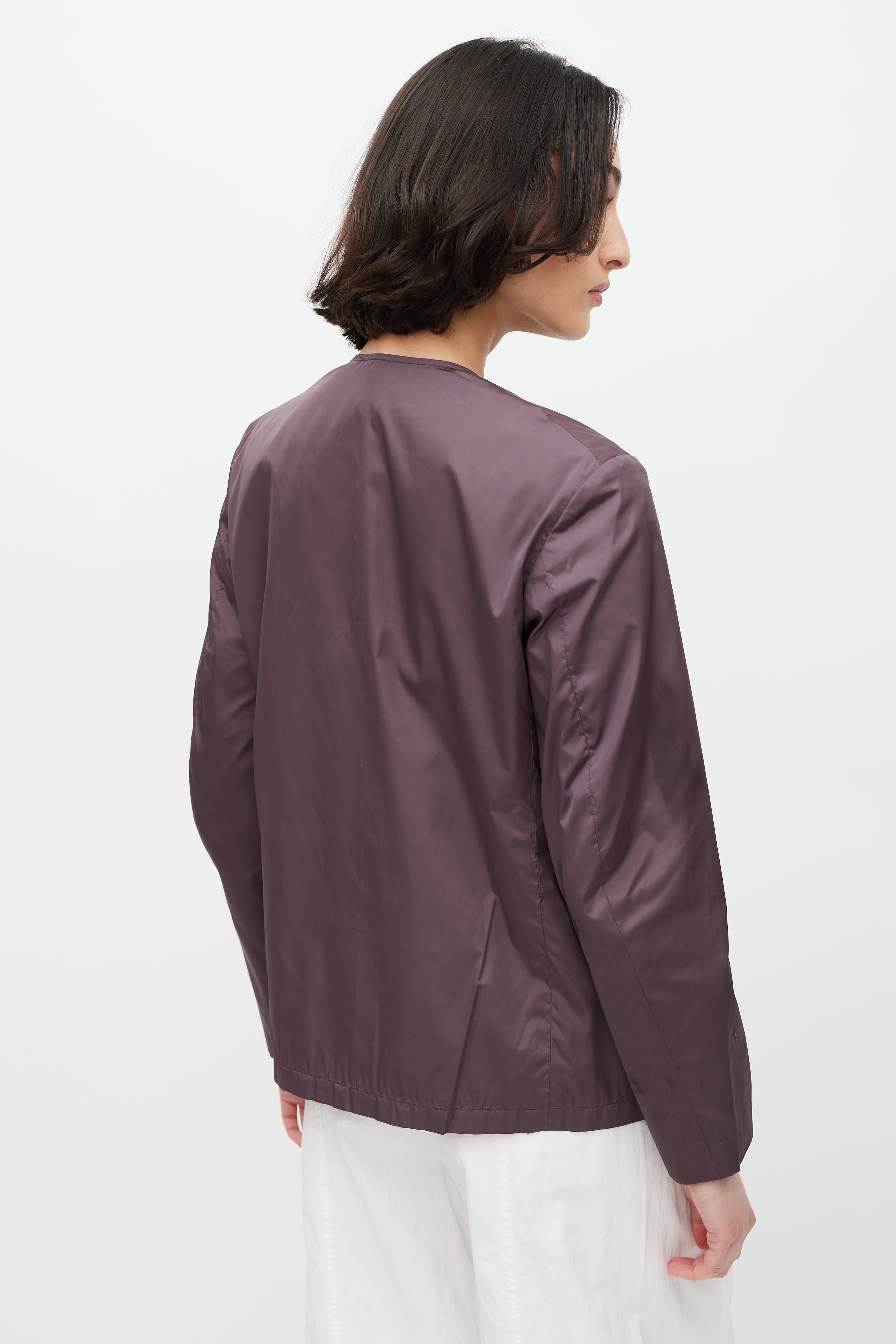 Pre-owned Jil Sander purple nylon jacket featuring a round neckline, long sleeves, two slip pockets at hip, and zip front closure.