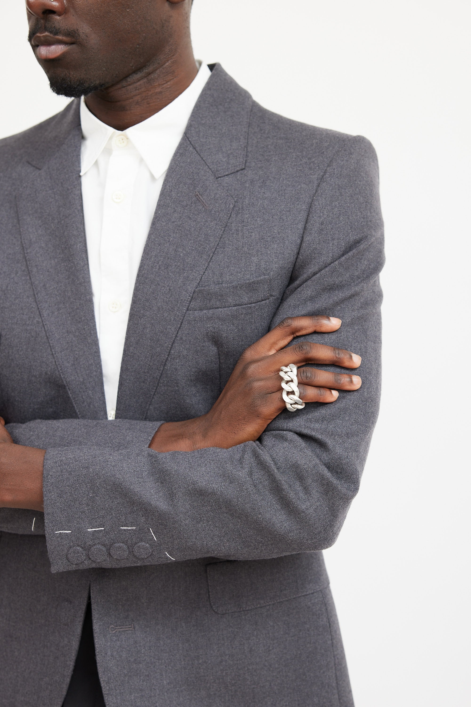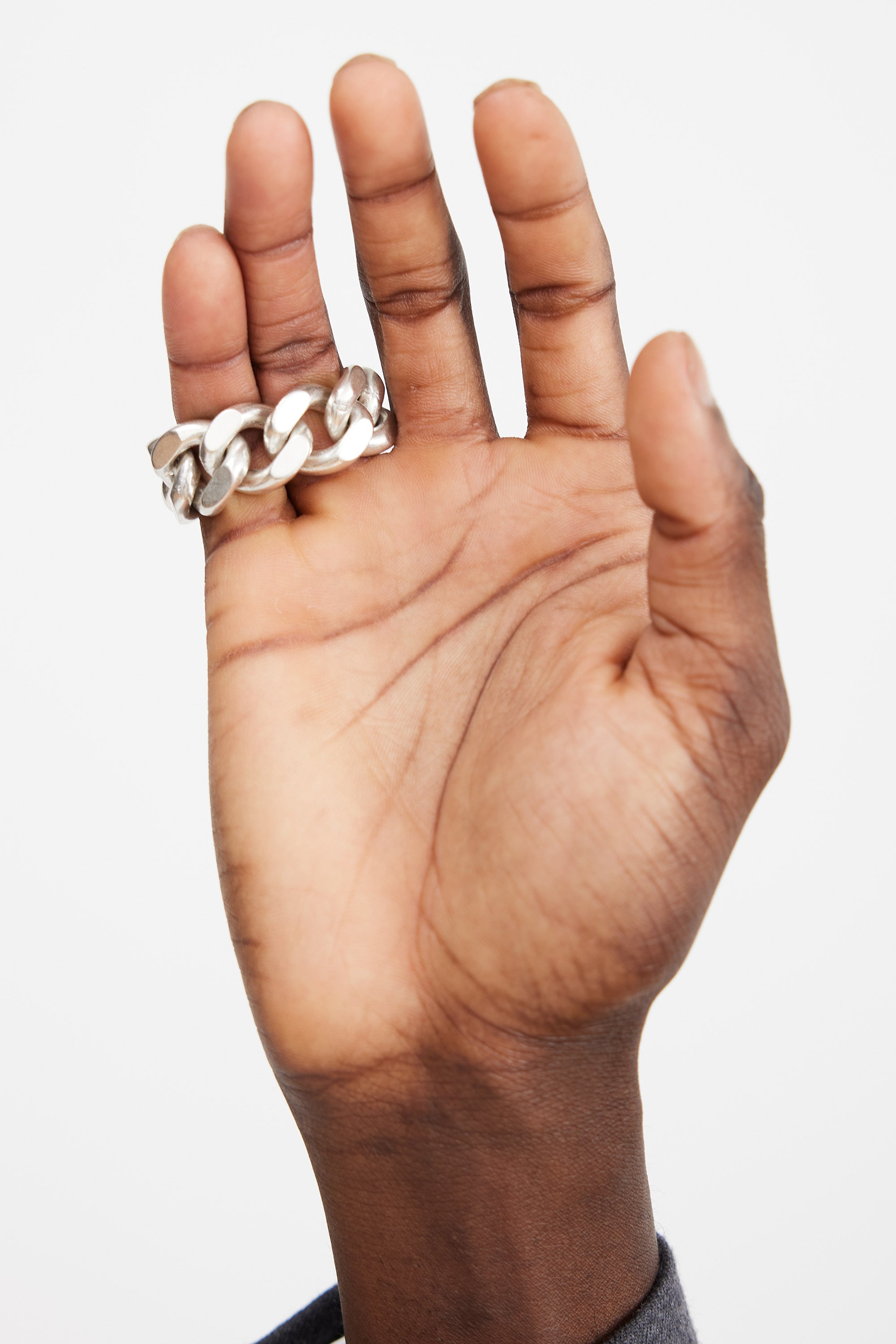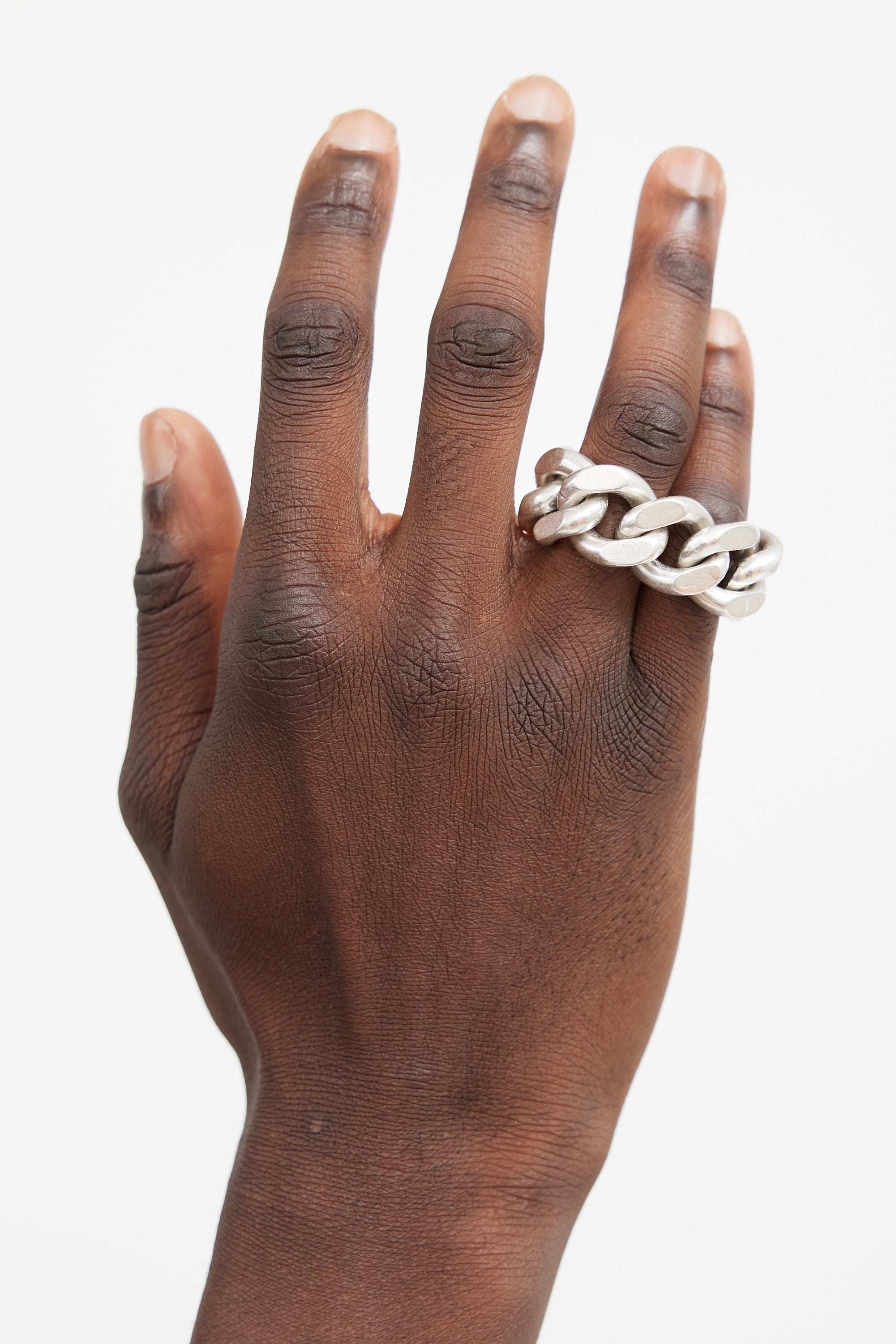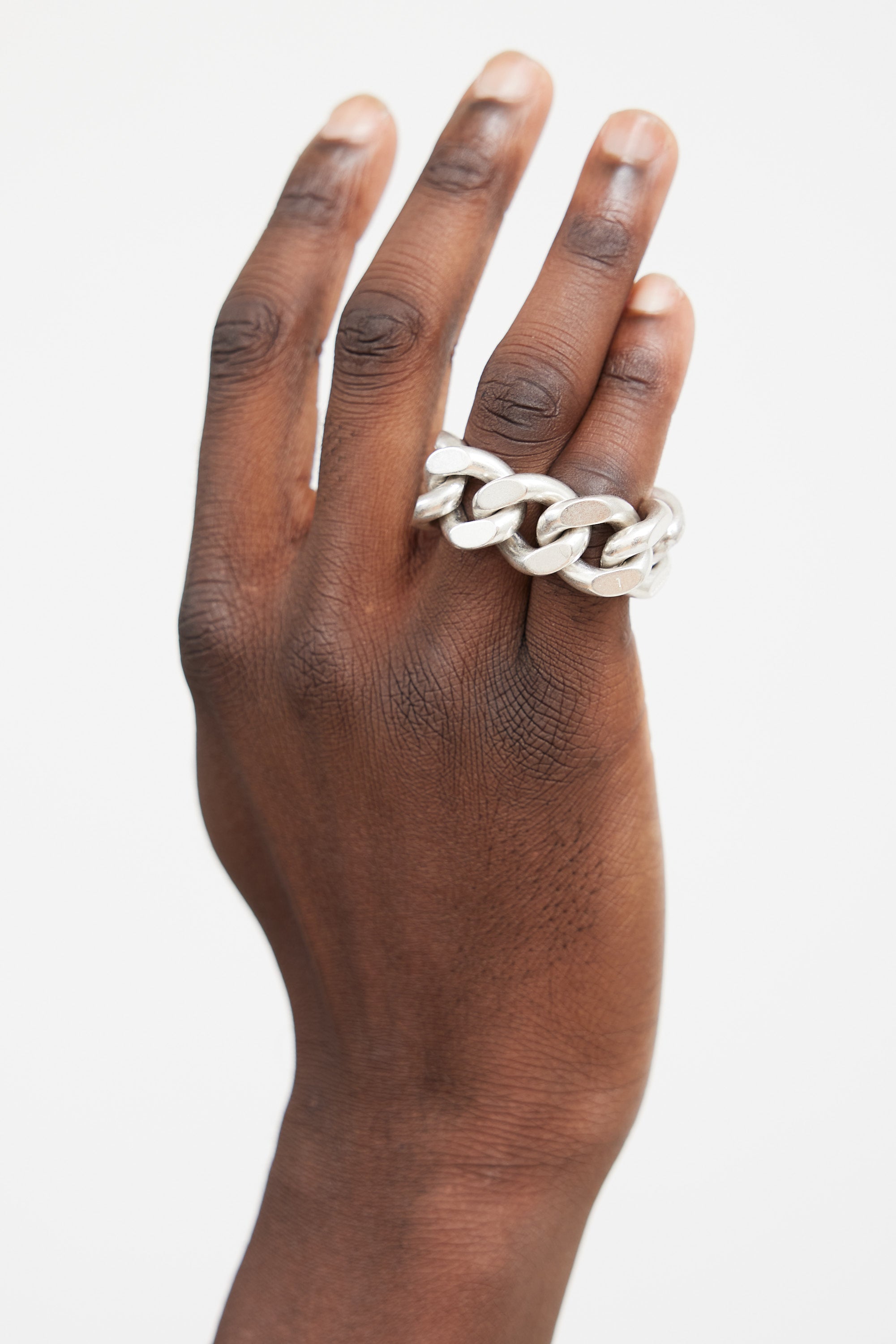 Pre-owned Jil Sander silver Groumette ring featuring a cuban link, and engraved logo at side. Comes with original box.