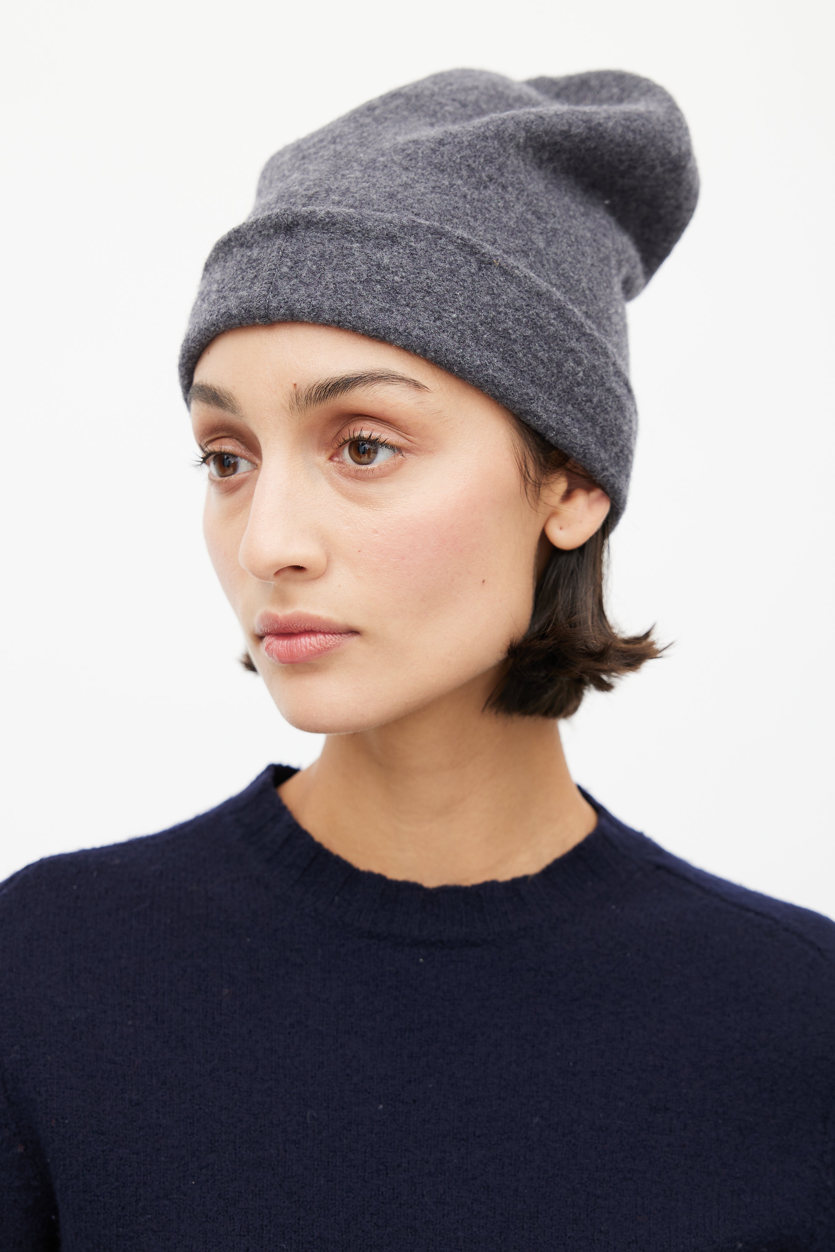 Grey Wool Knit Beanie