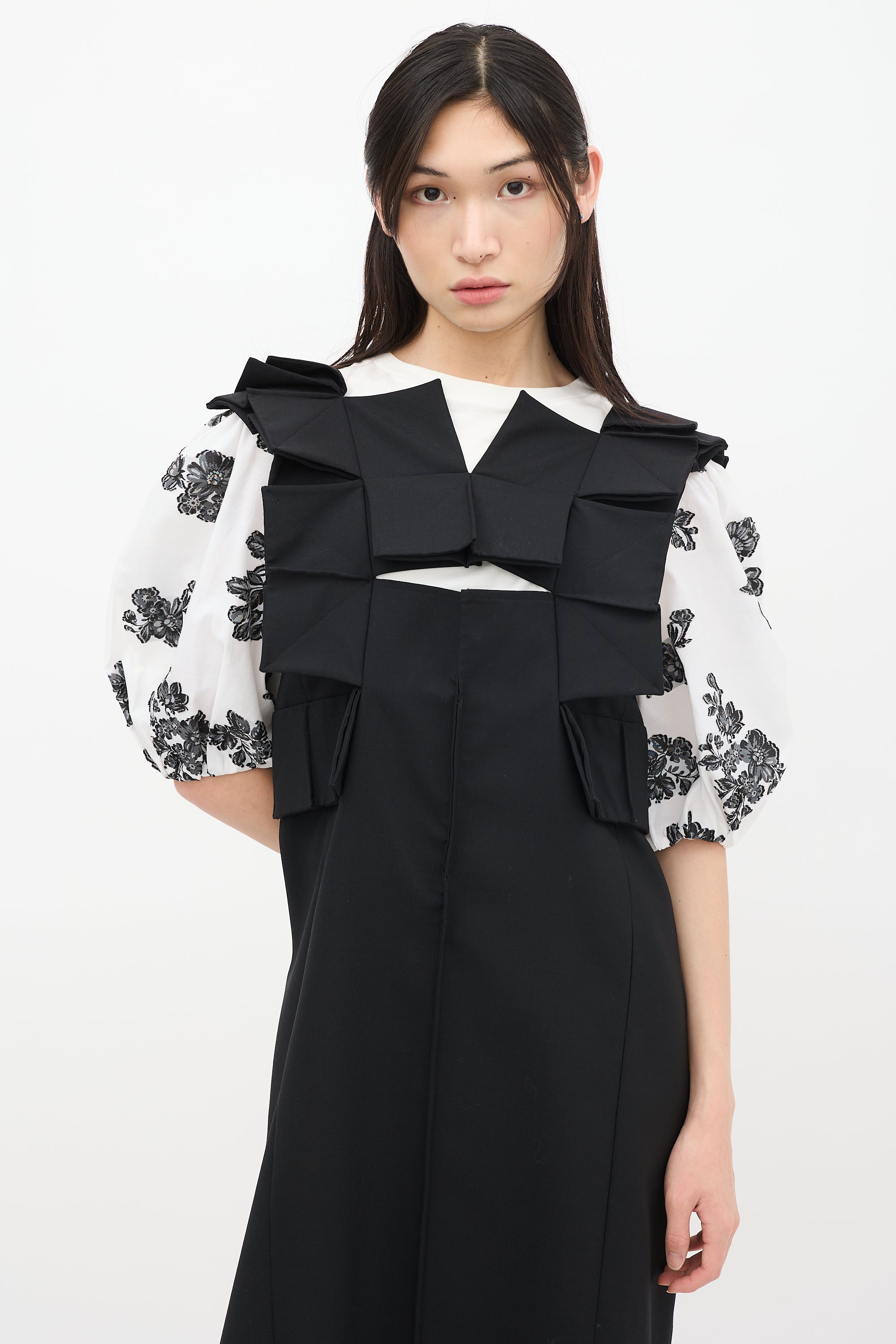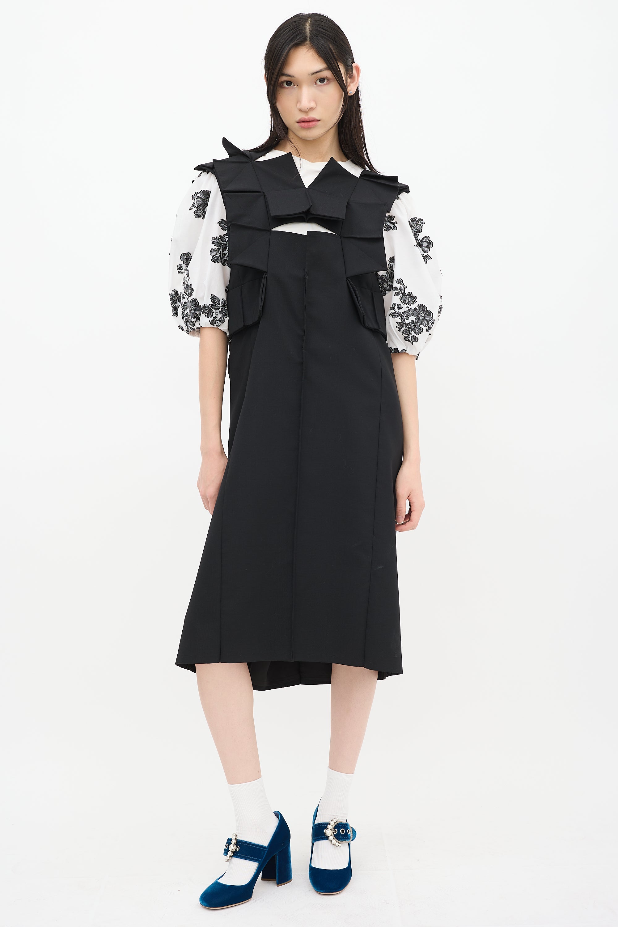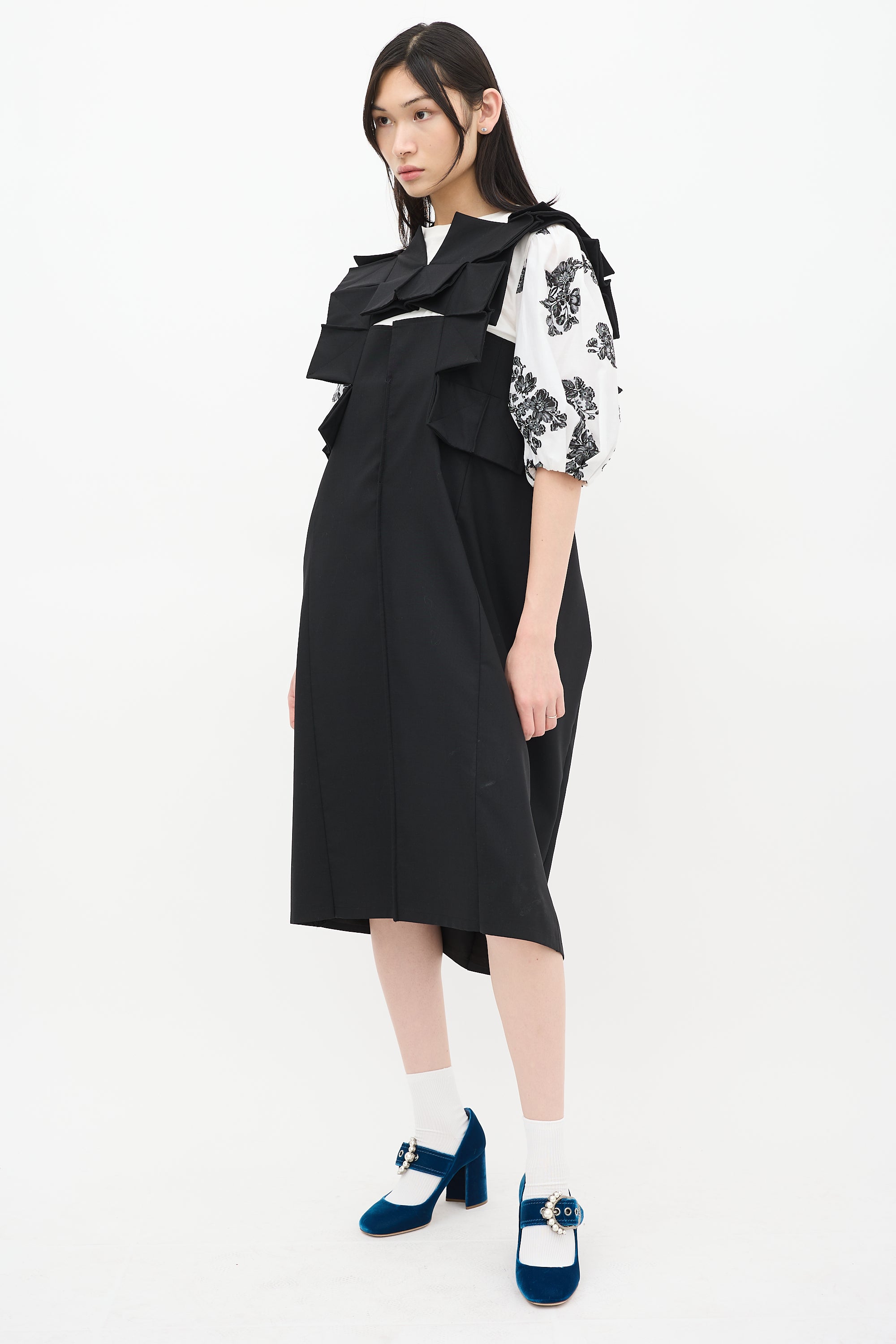 Pre-owned Junya Watanabe Fall/Winter 2016 black wool blend sleeveless midi dress featuring a high neckline, origami inspired square panelled top, and cutout detailing throughout. Lined. Look 34 from collection.