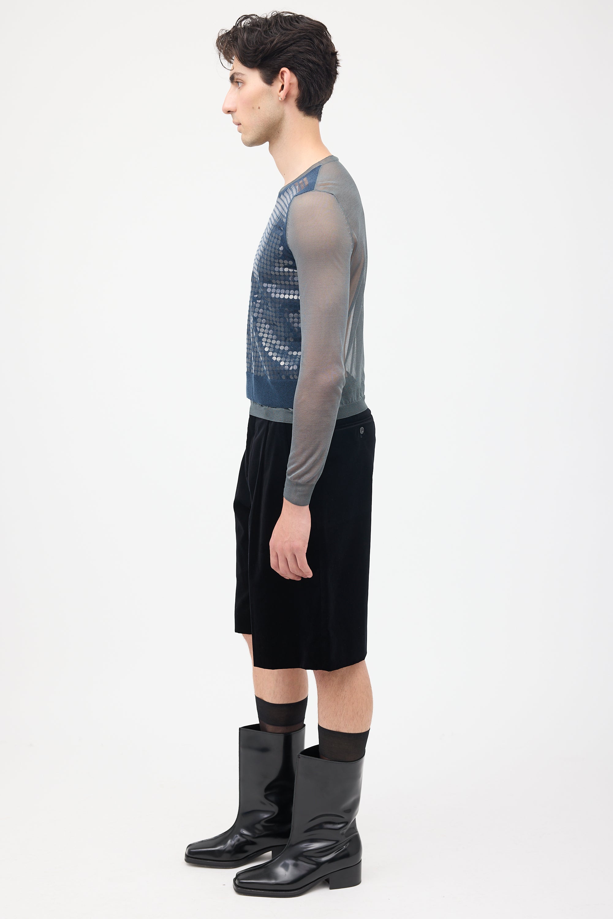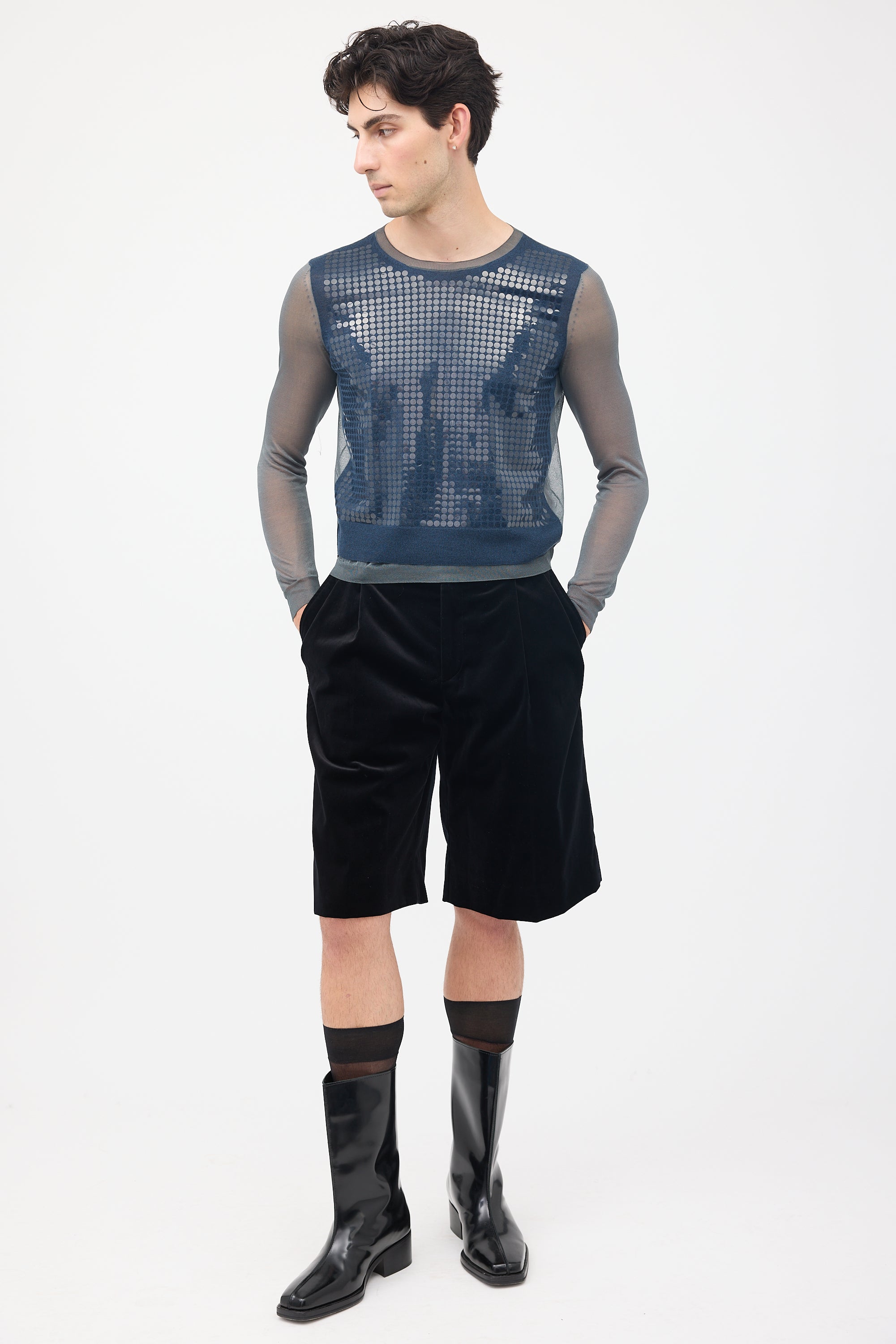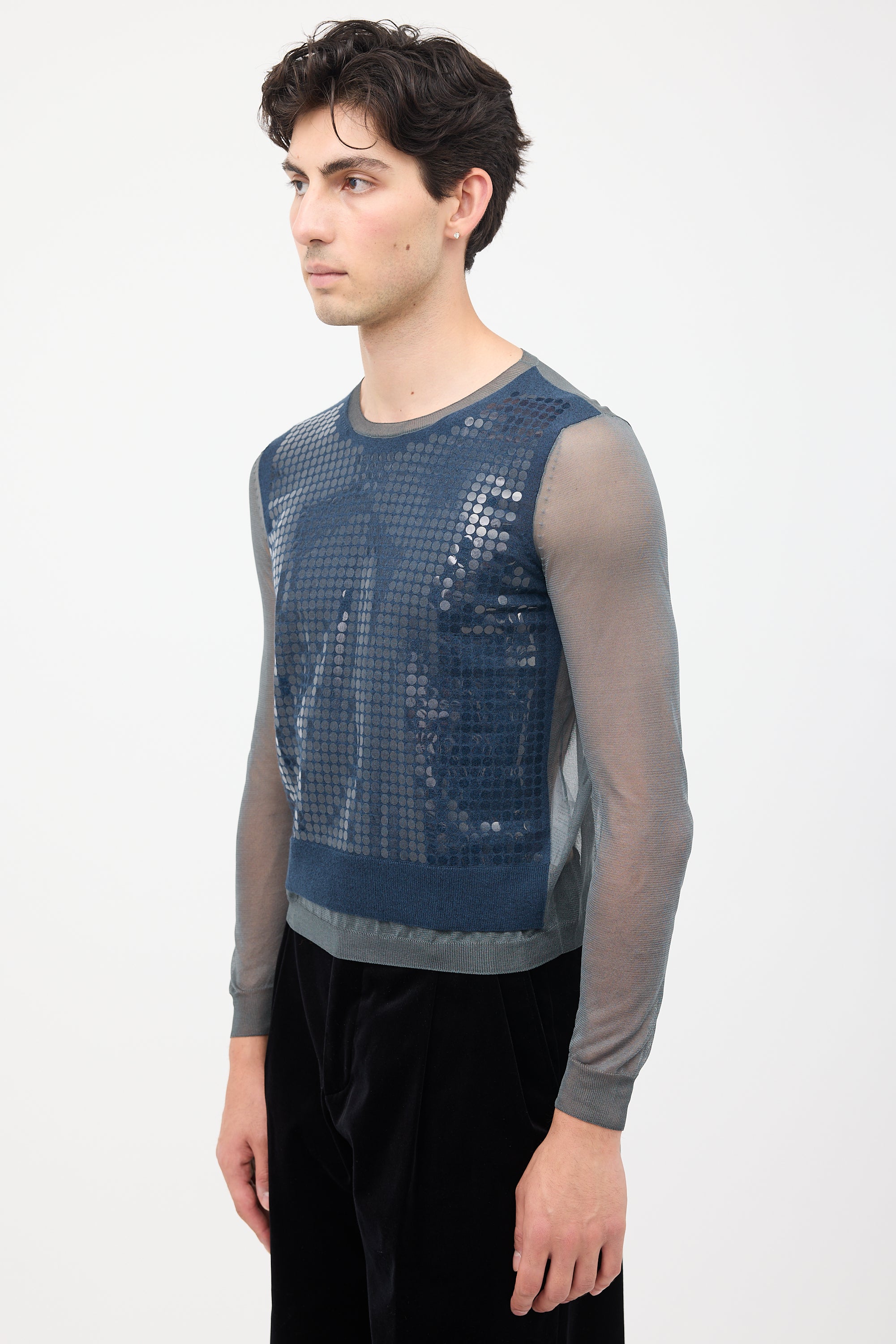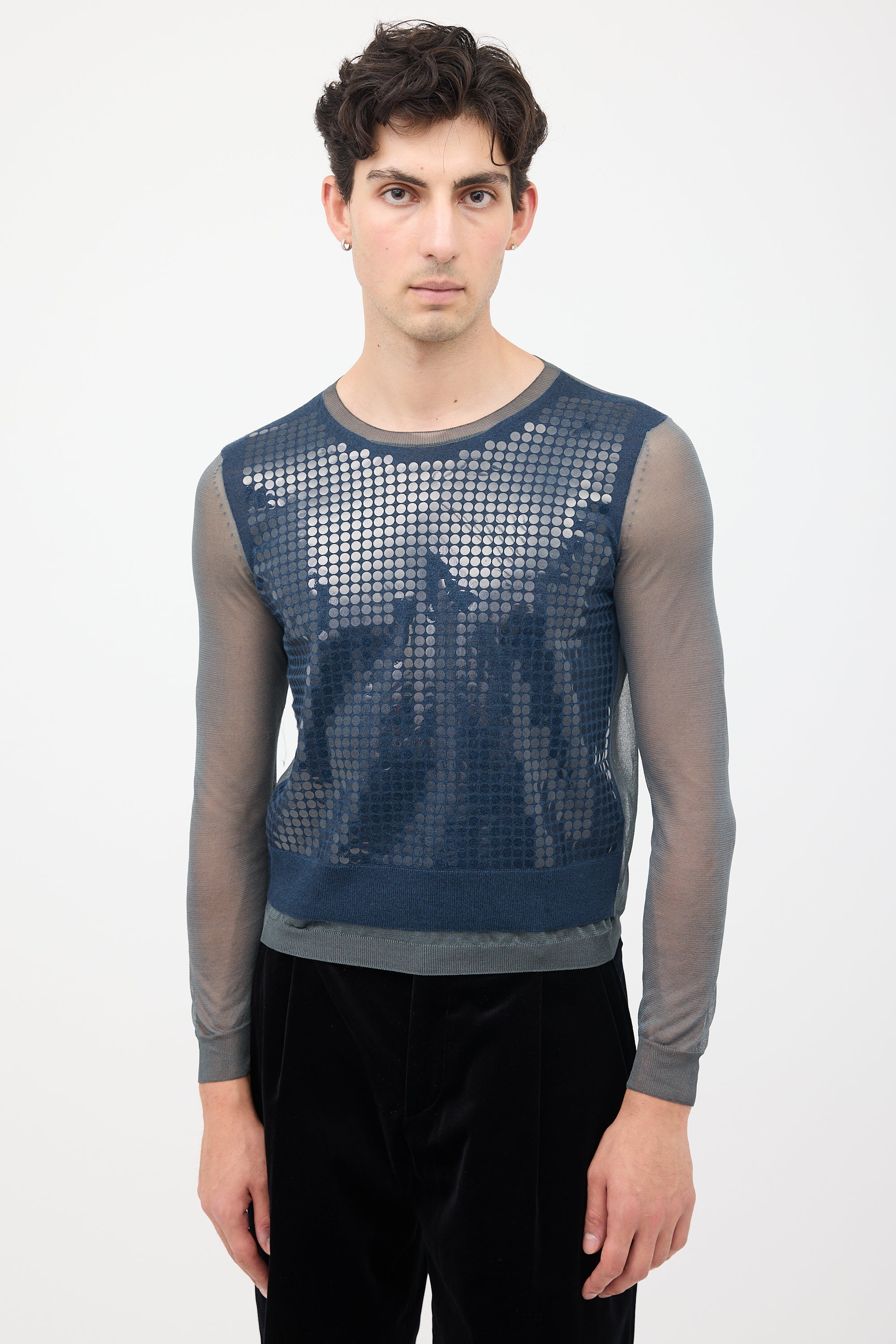 Pre-owned Lanvin Spring 2014 navy and grey top featuring crew neckline and navy front with paillettes embellishment.