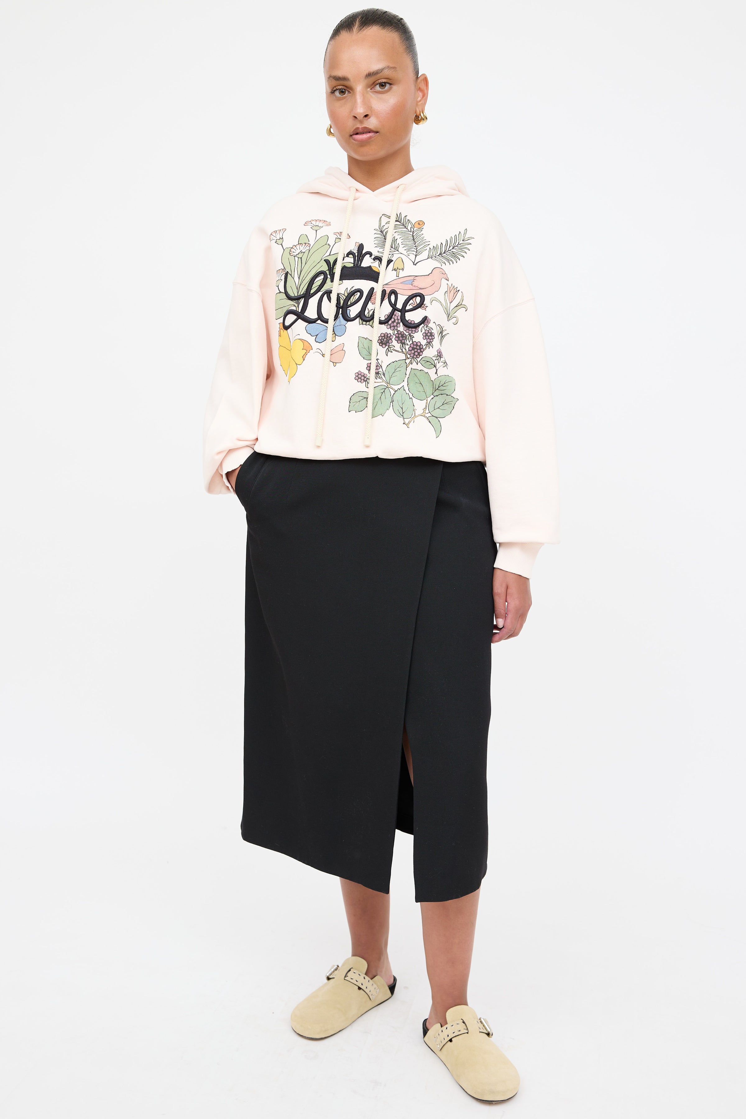 Pre-owned Loewe light pink hoodie featuring a drawstring hood, multicolour printed Herbarium nature graphic at front with logo embroidery, long sleeves, and ribbed hem.