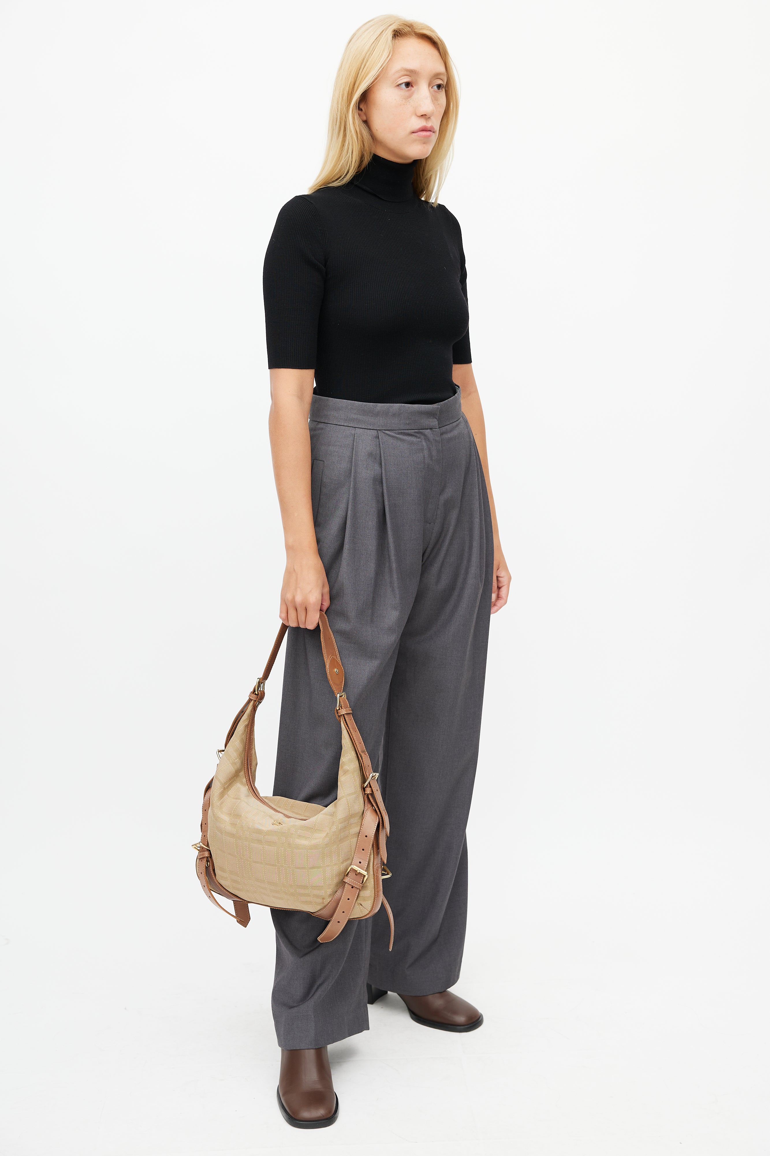 Brown Nylon Check Shoulder Bag