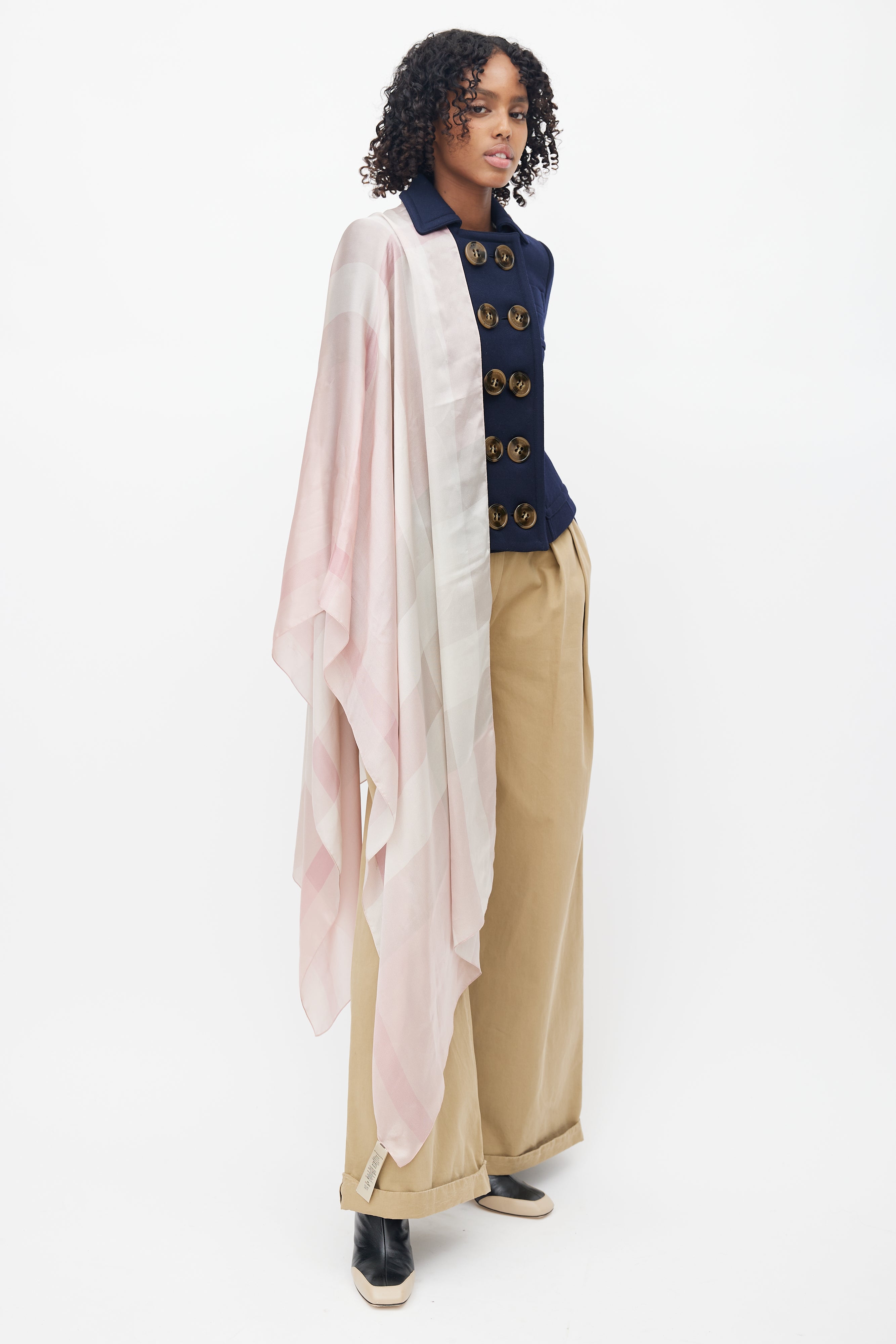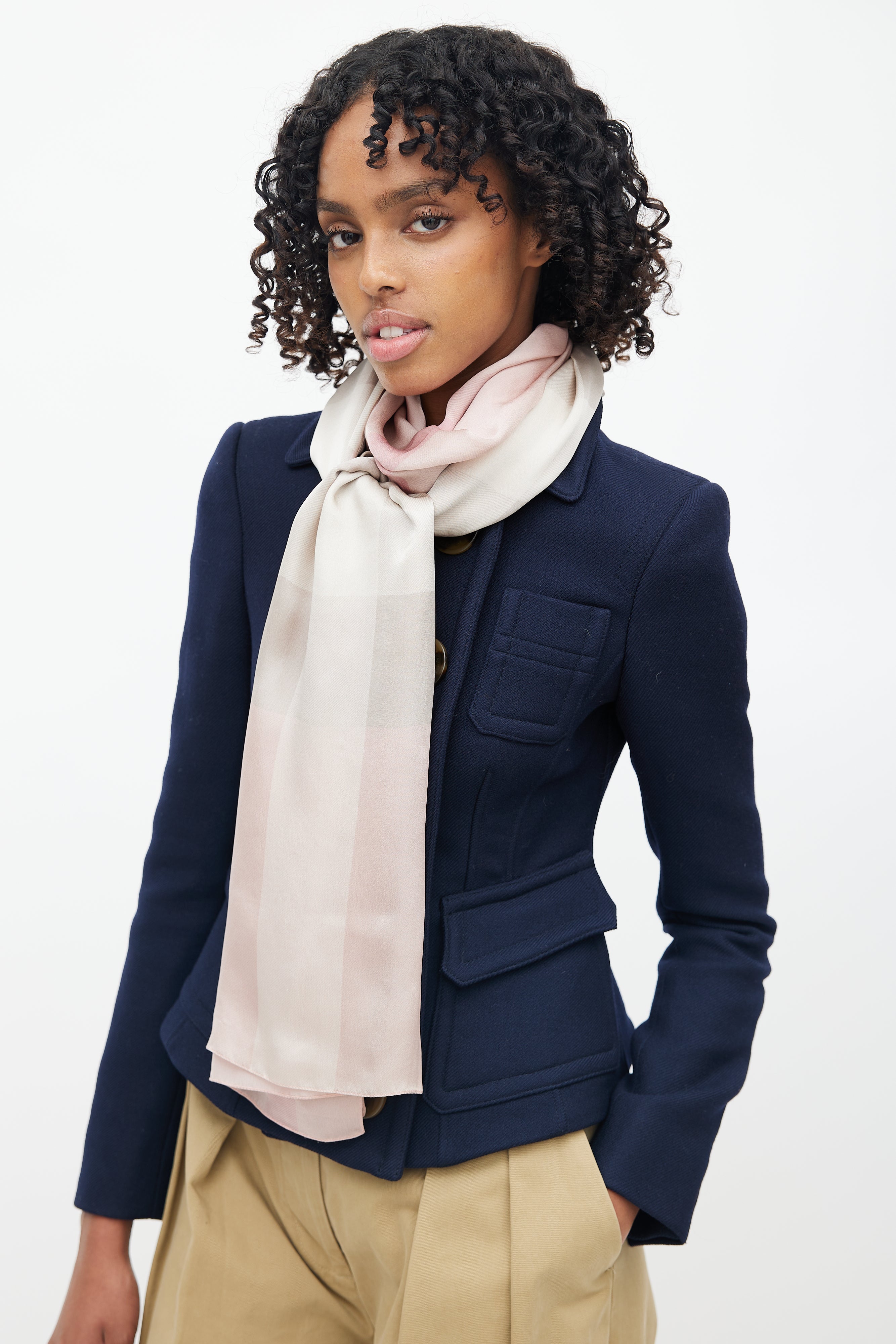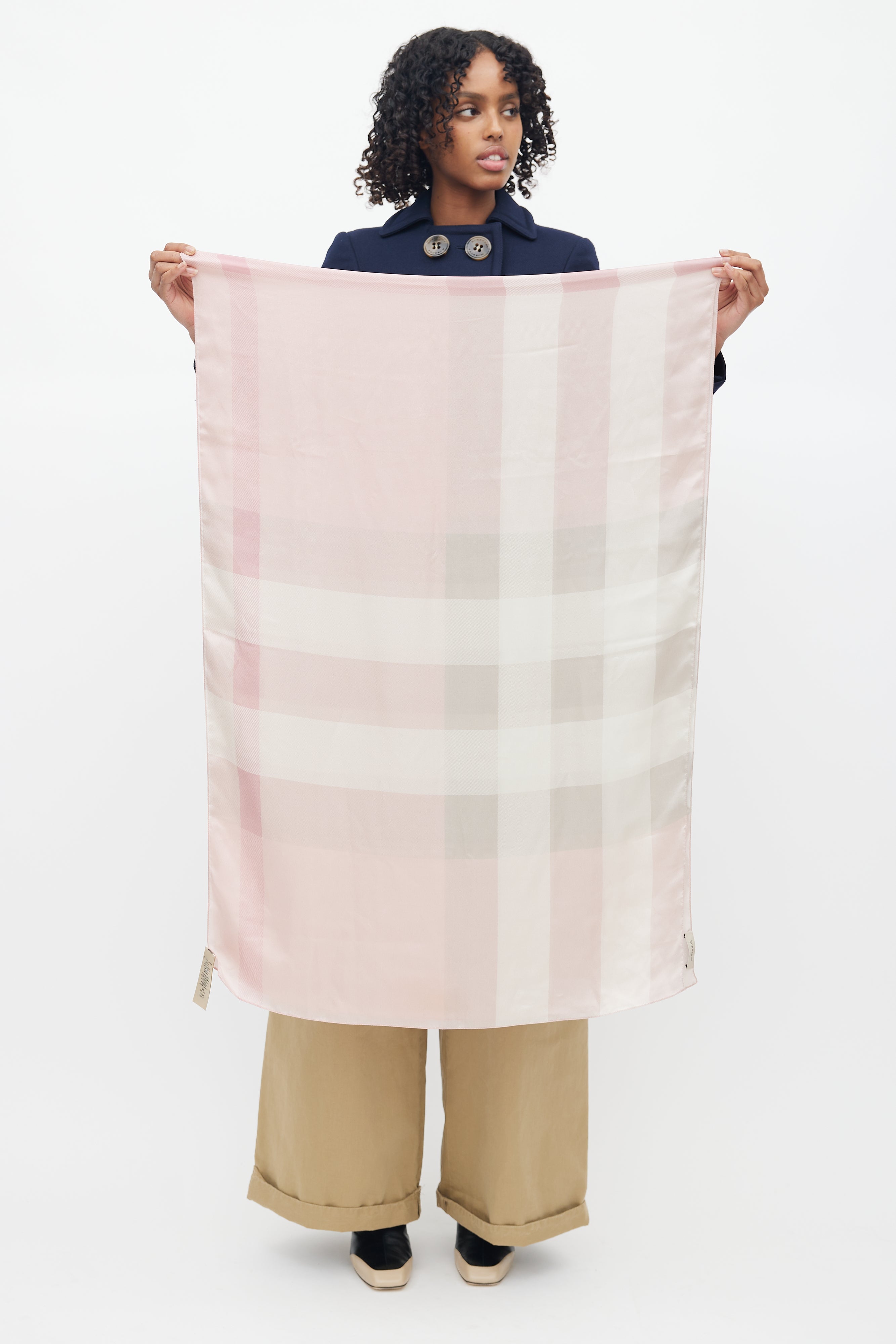 Pre-owned Burberry pink and grey scarf featuring signature House check print and stitched hem.