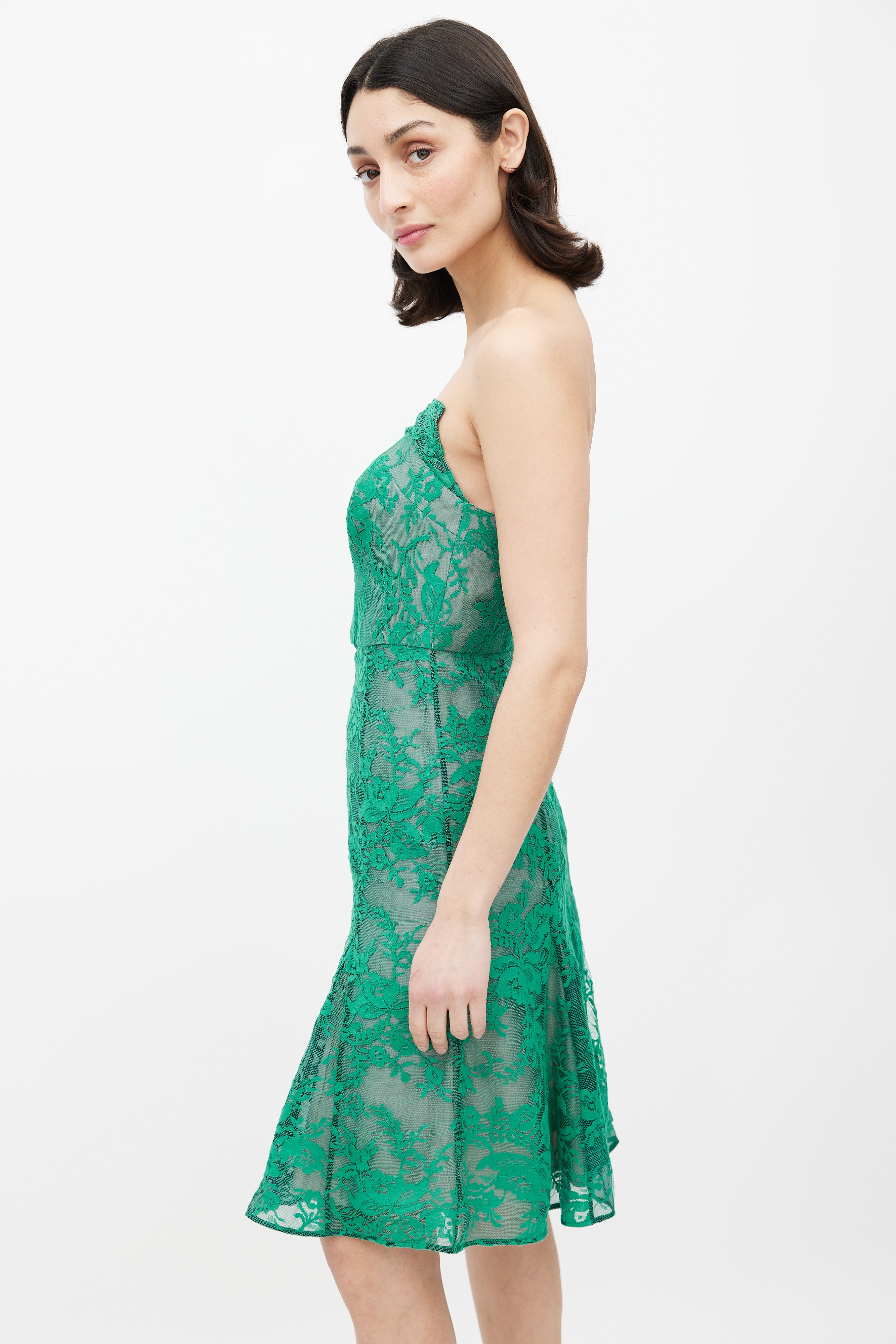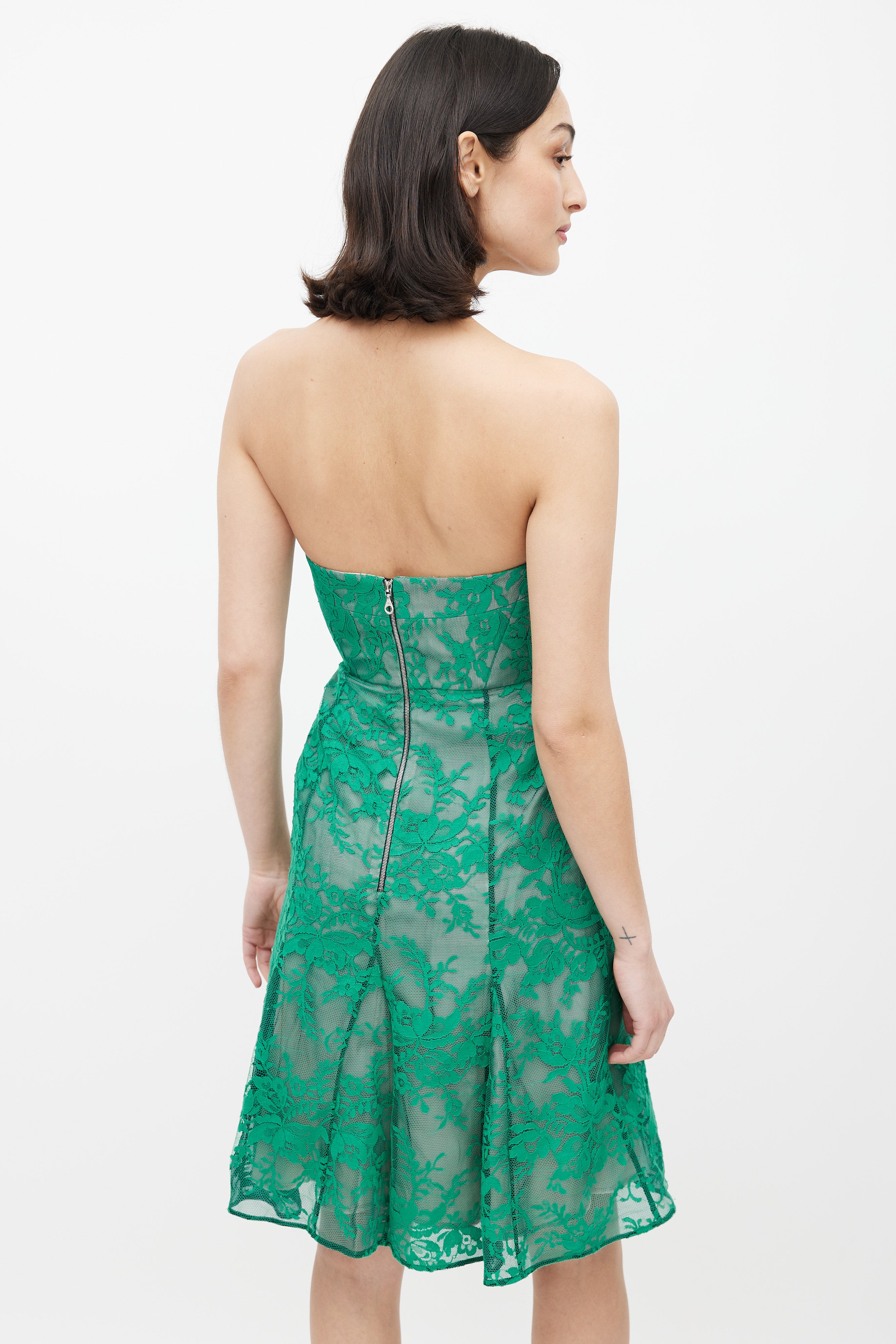 Green Lace Mesh Strapless Dress US 6 Size Guide