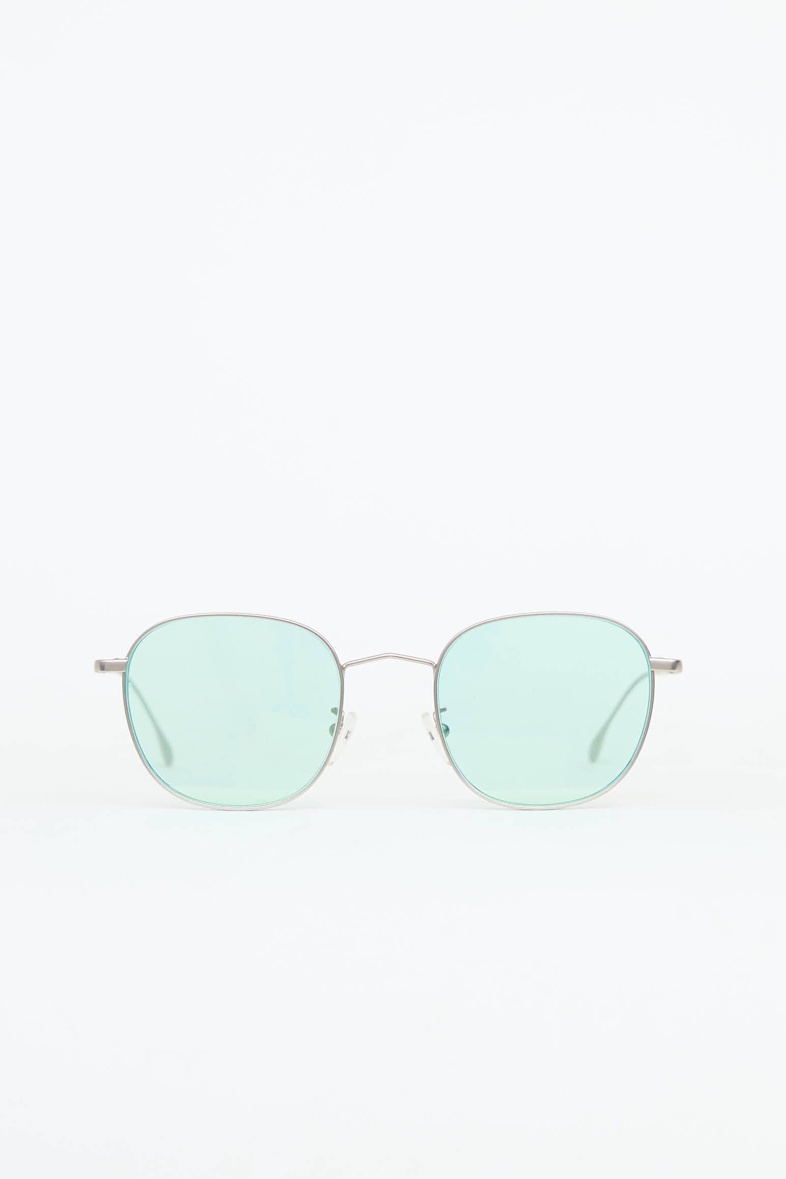 Pre-owned Paul Smith Arnold sunglasses featuring silver tone wire frames, nose pads, green tinted lenses, logo at temples, and wire arms.