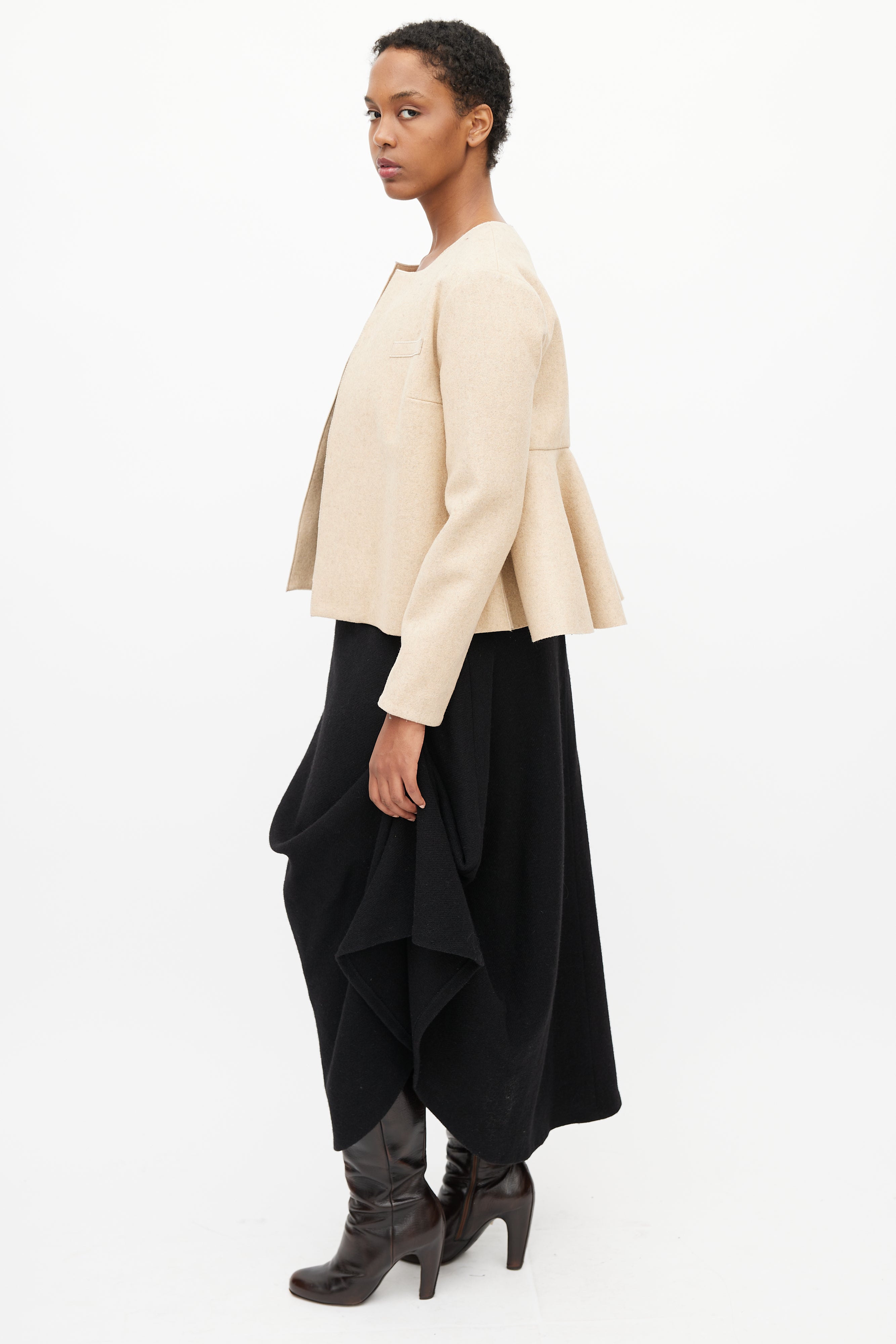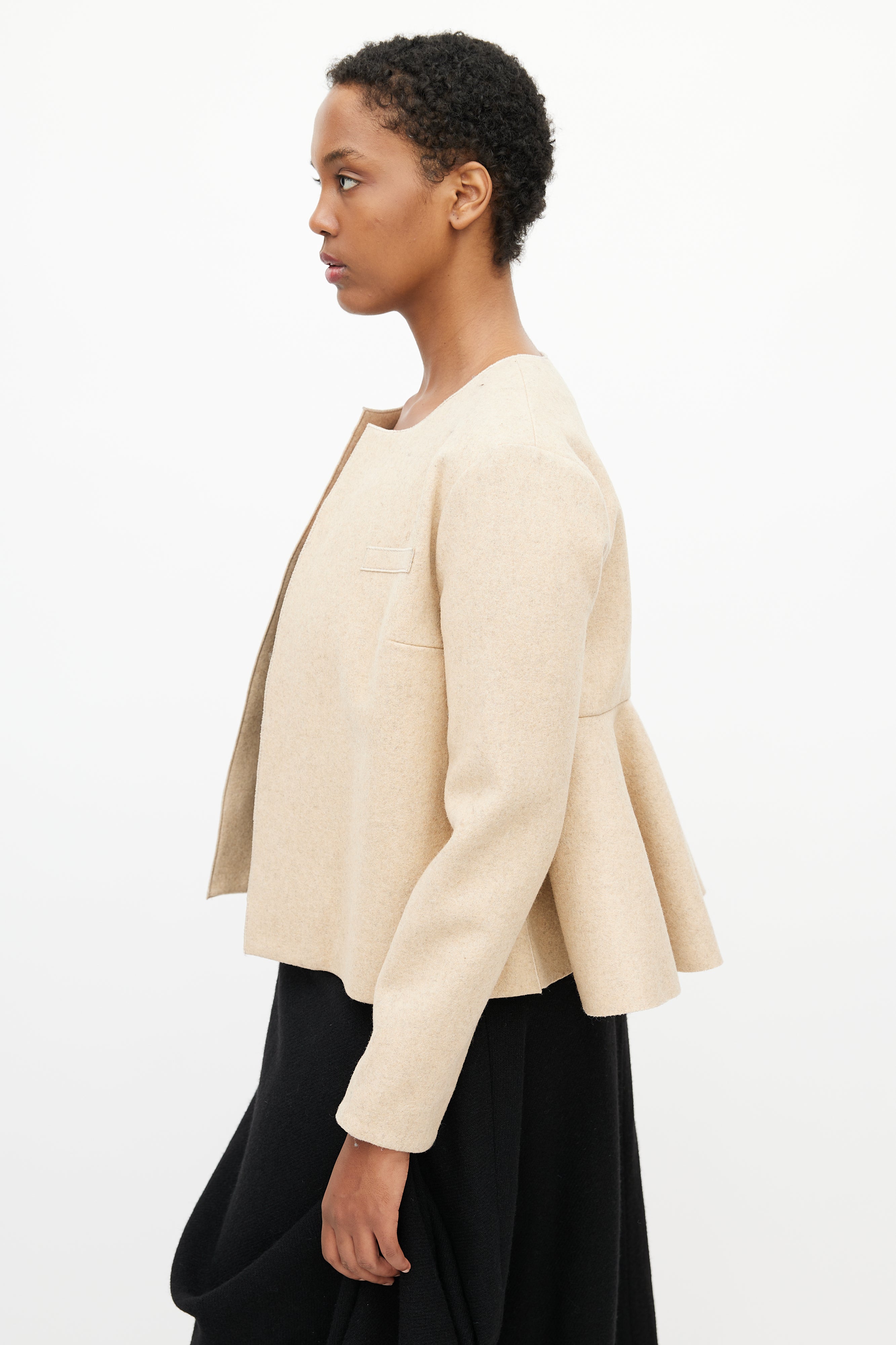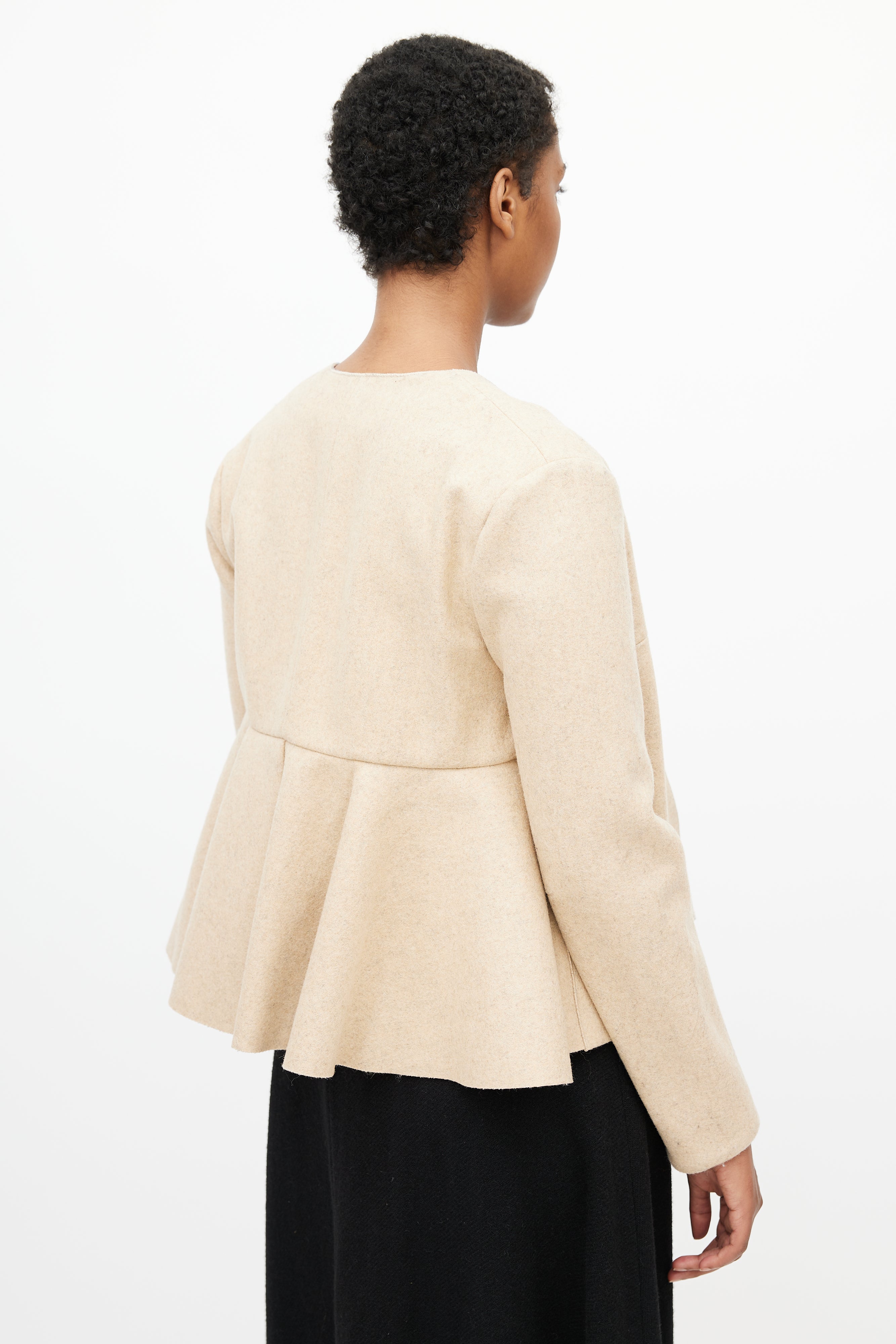 Beige Wool Peplum Open Jacket UK 12 Size Guide