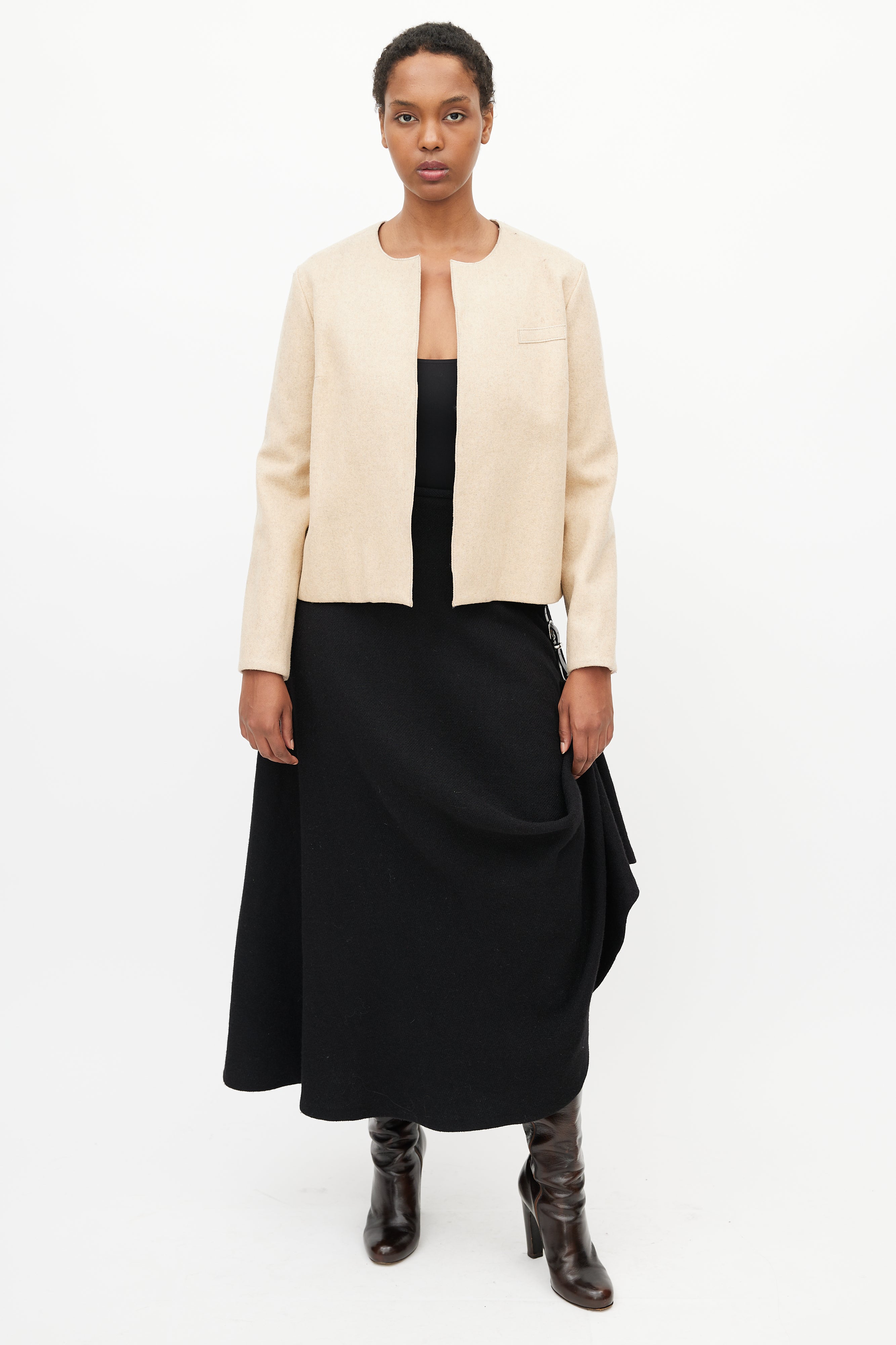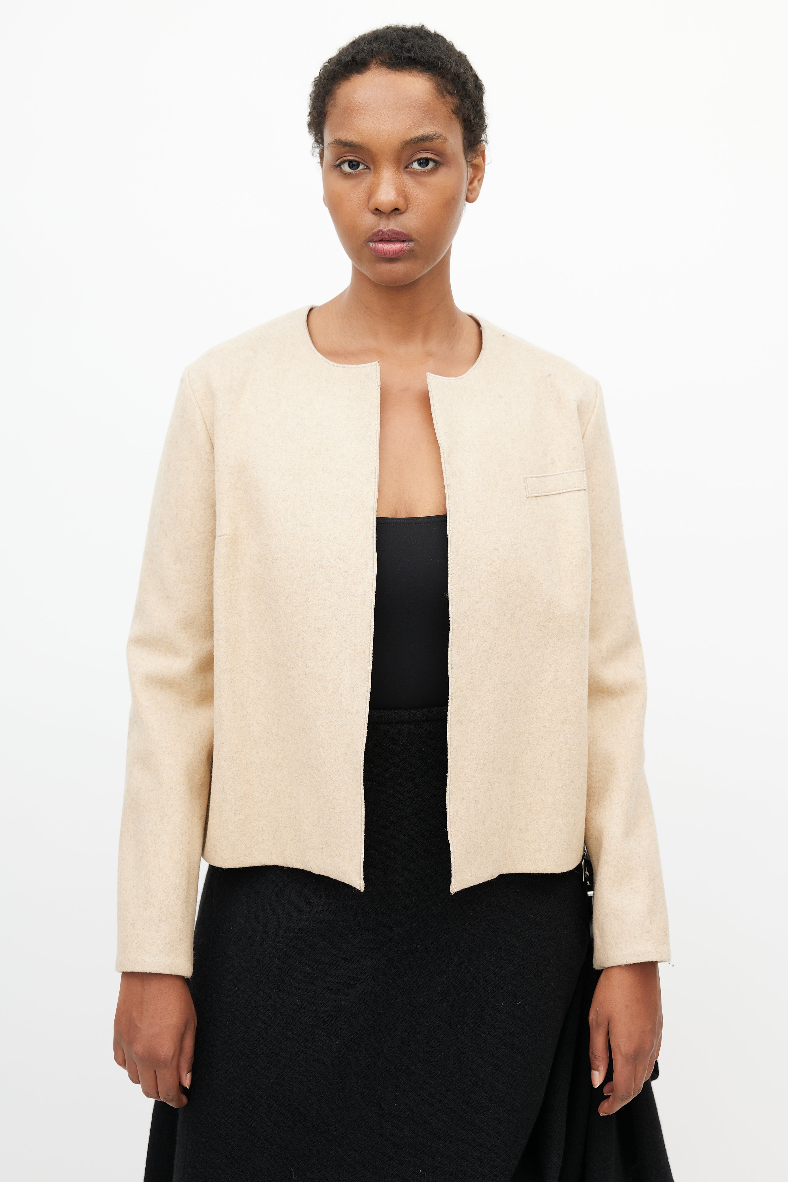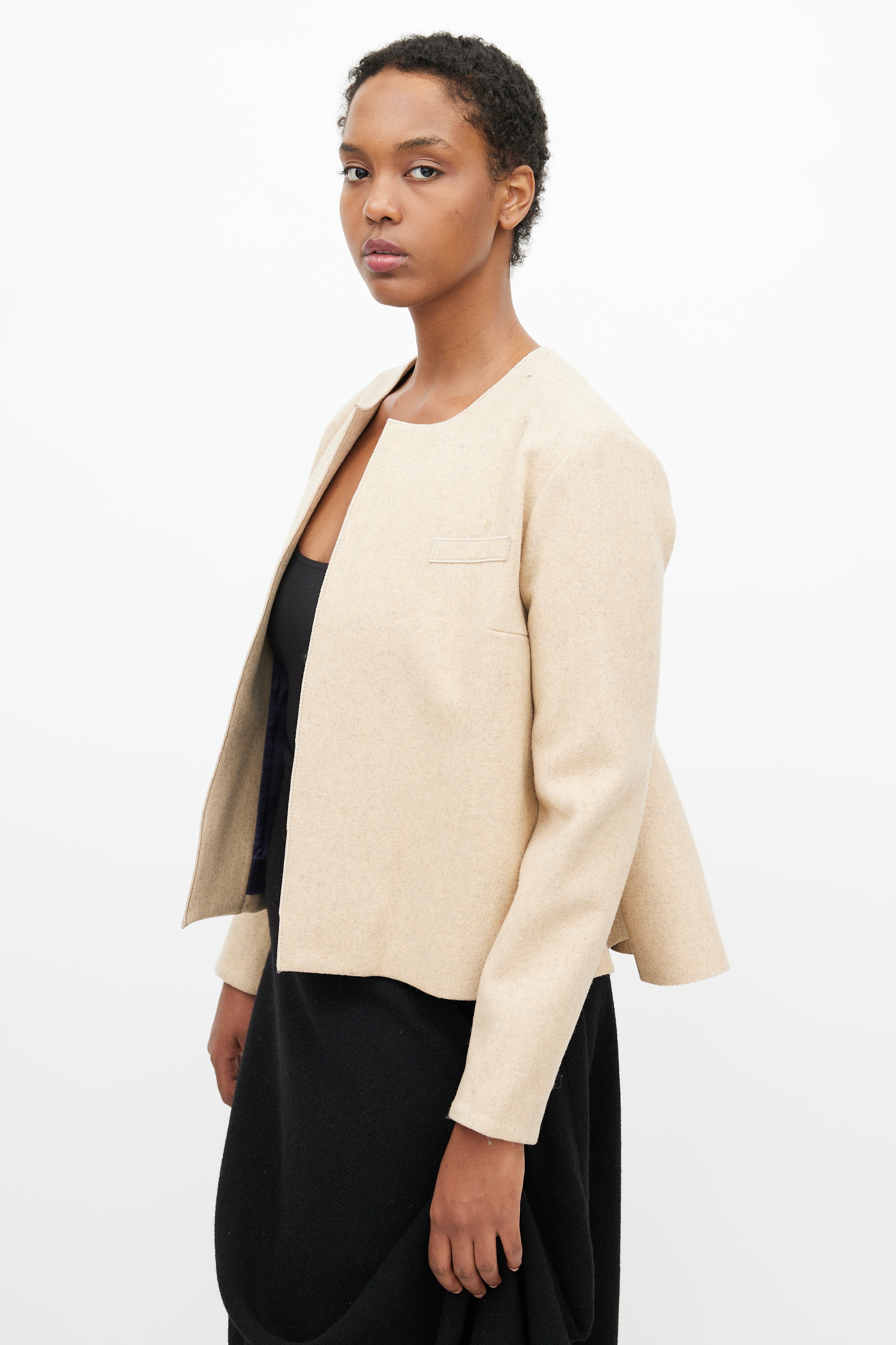 Beige Wool Peplum Open Jacket UK 12 Size Guide