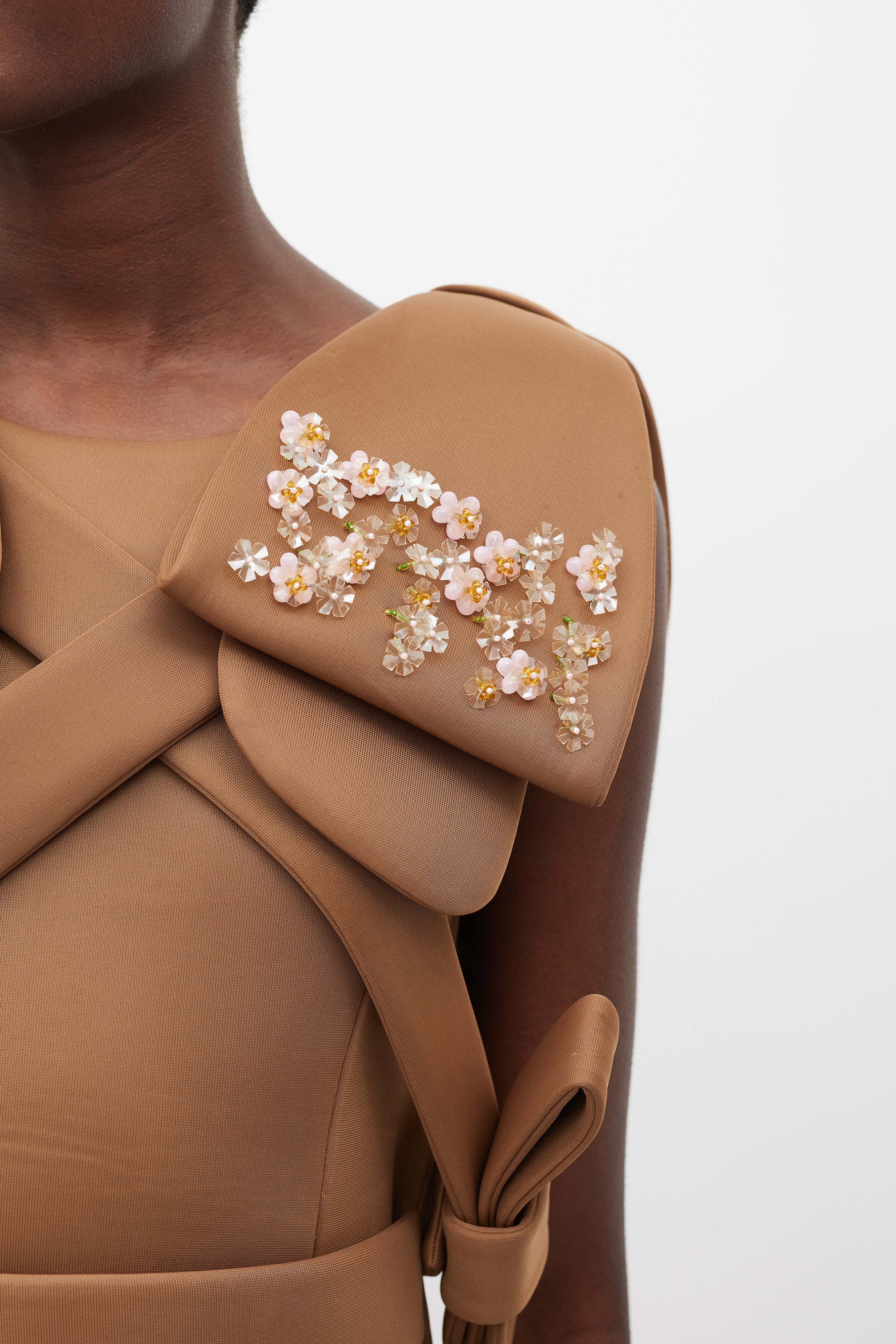 Brown Neoprene Floral Embellished Bow Dress UK 6 Size Guide