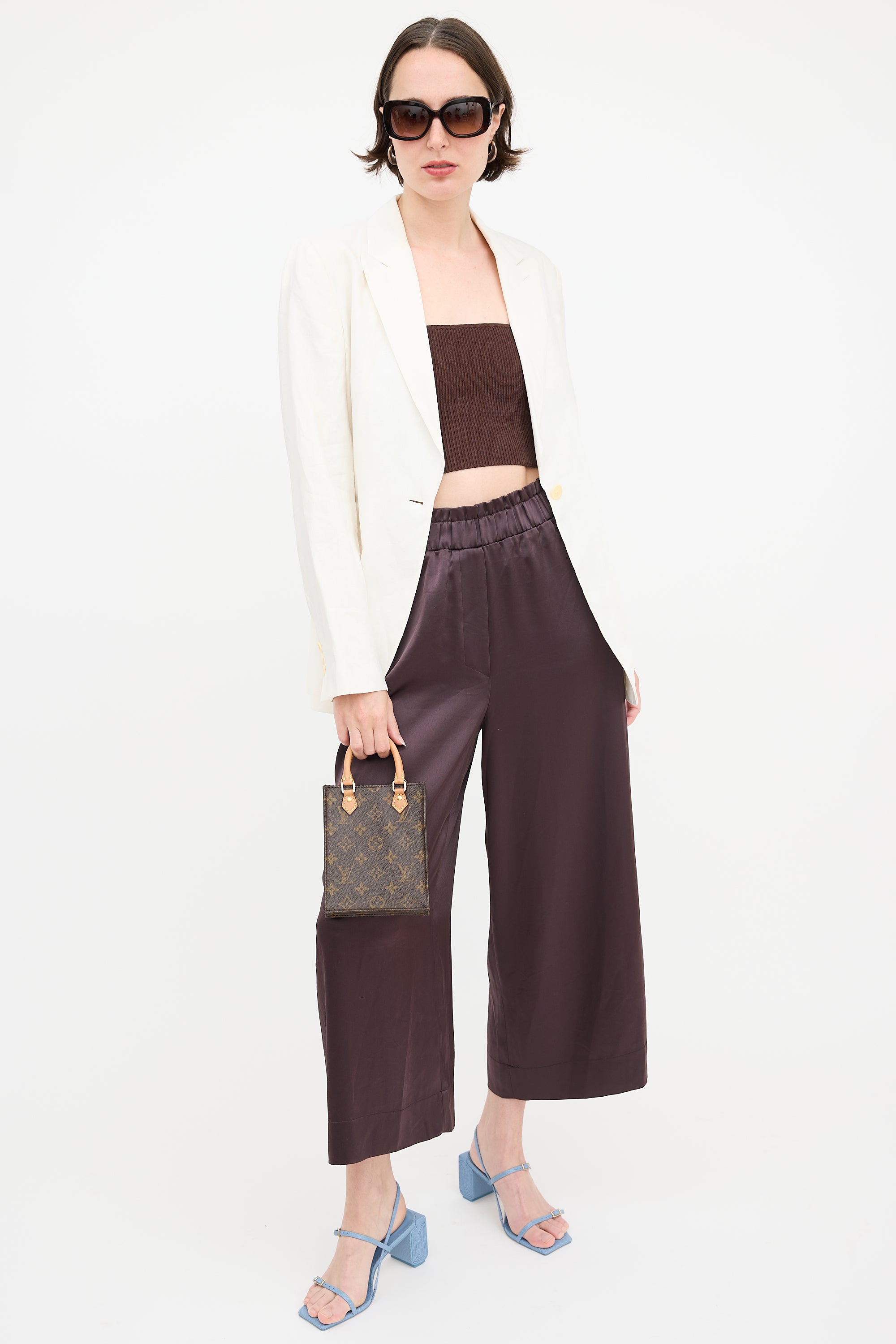 Pre-owned Louis Vuitton 2020 brown Petit Sac Plat bag featuring signature monogram coated canvas, brown Vachetta leather trim, dual rolled top handles, open top, and one lined main compartment with one slip pocket.