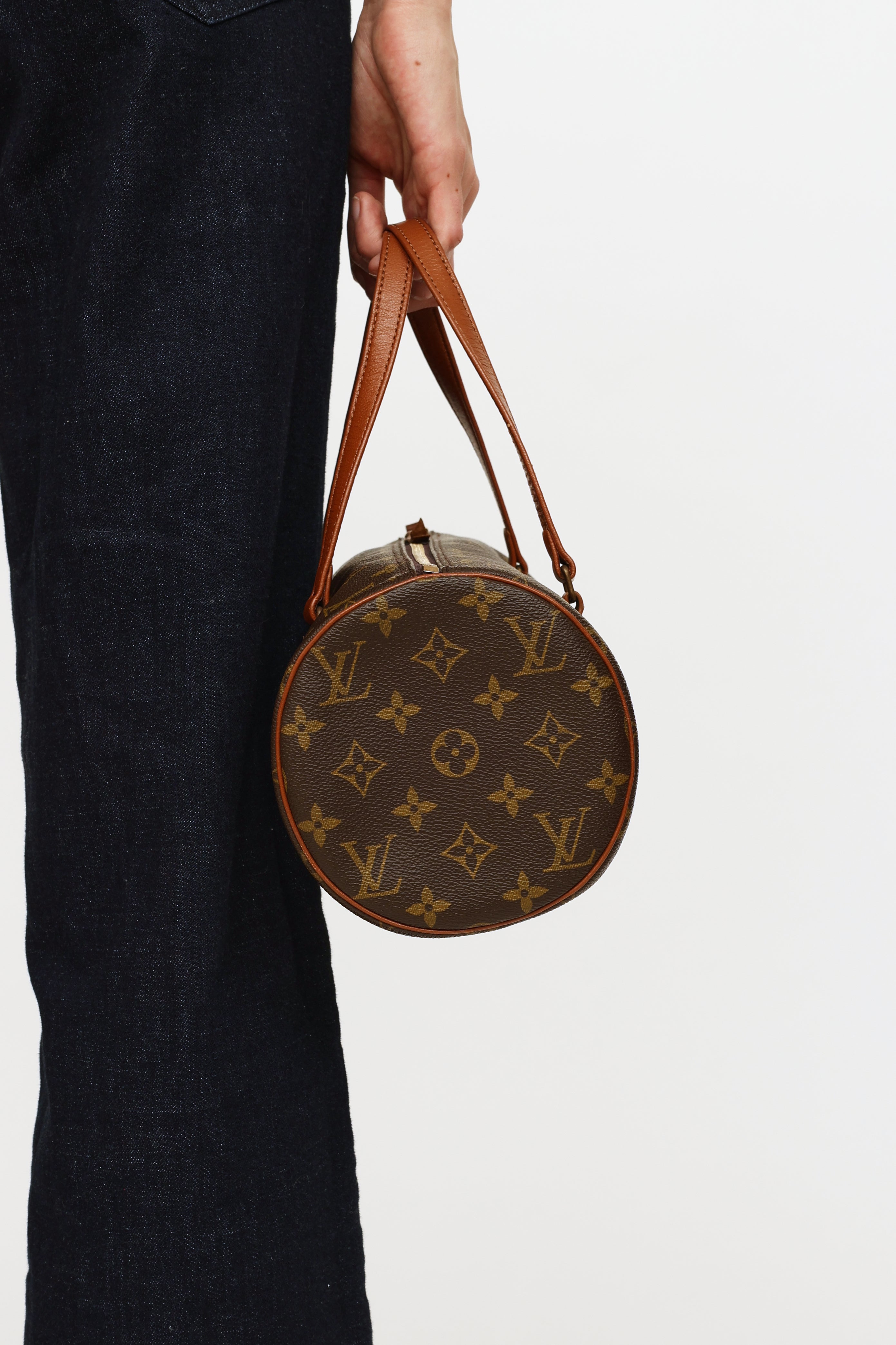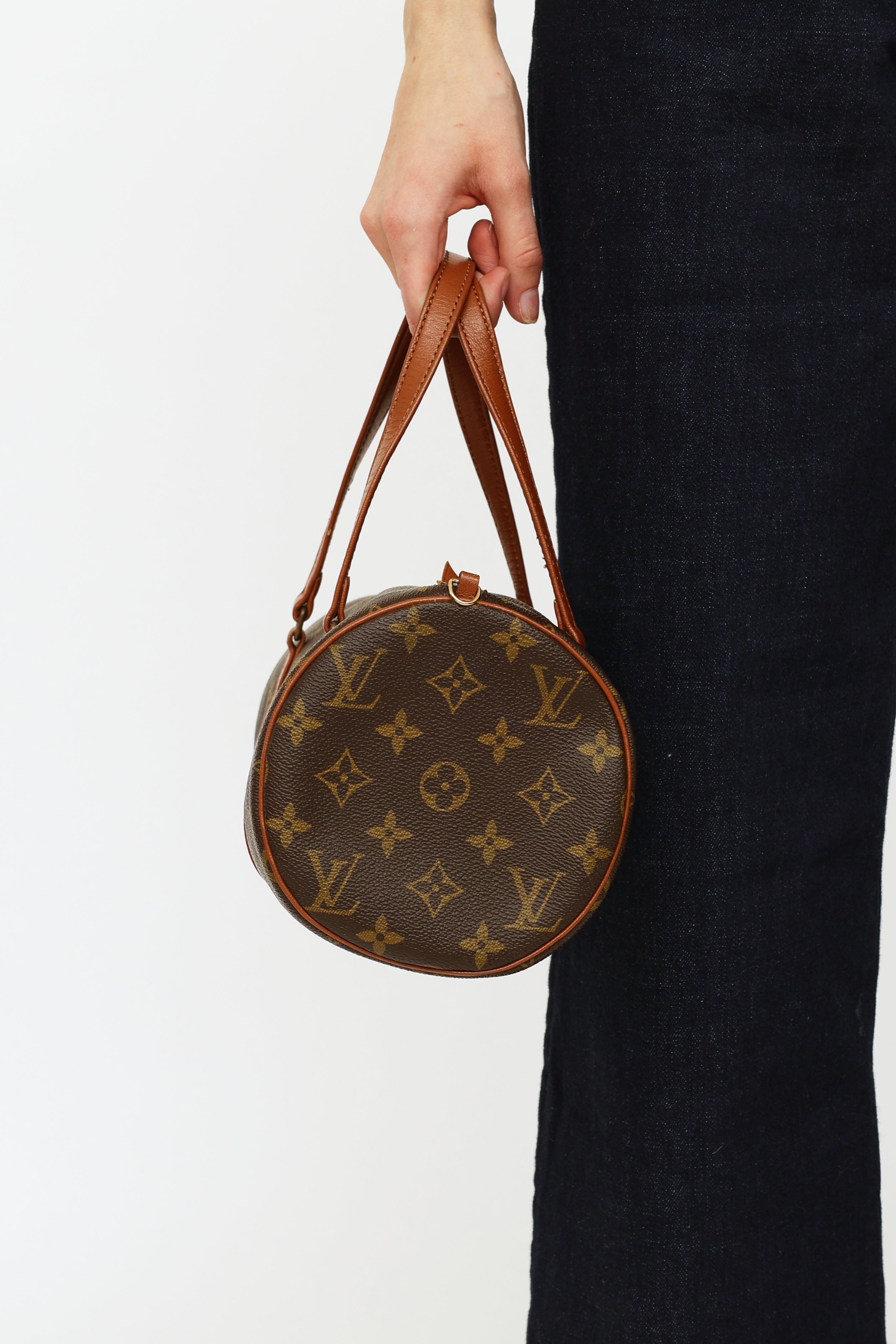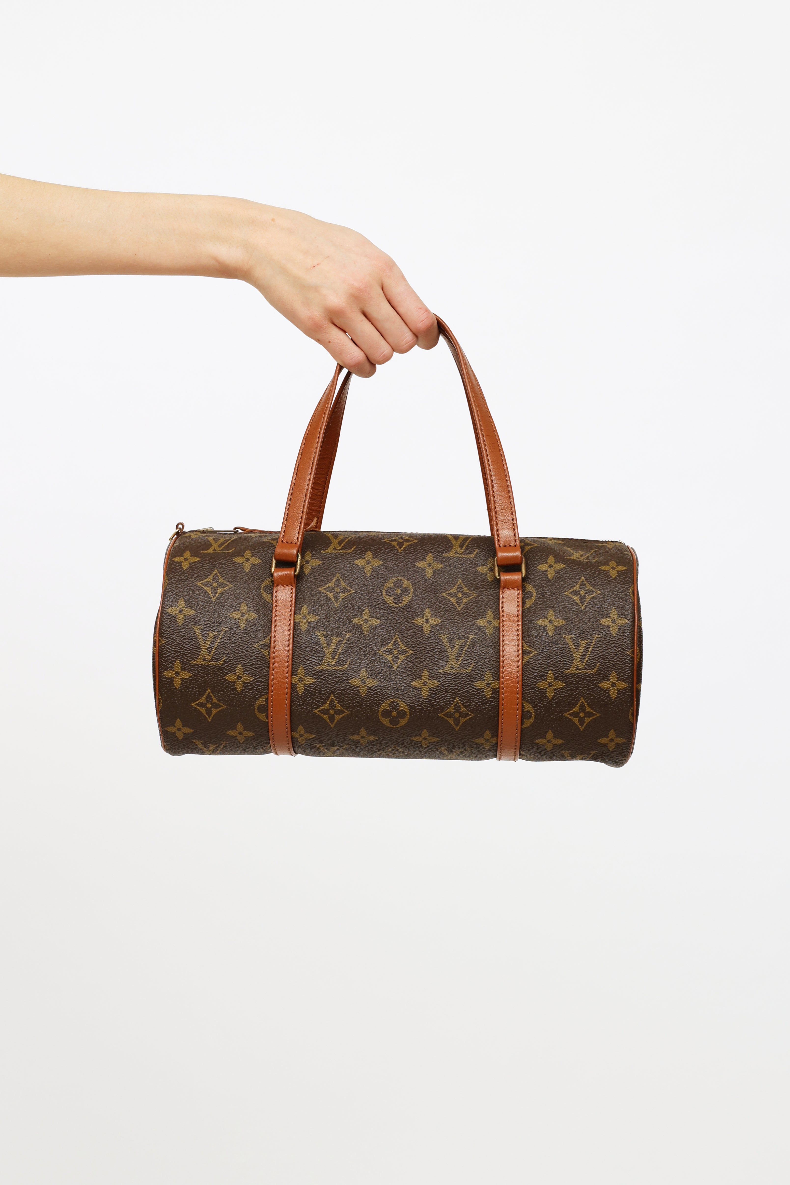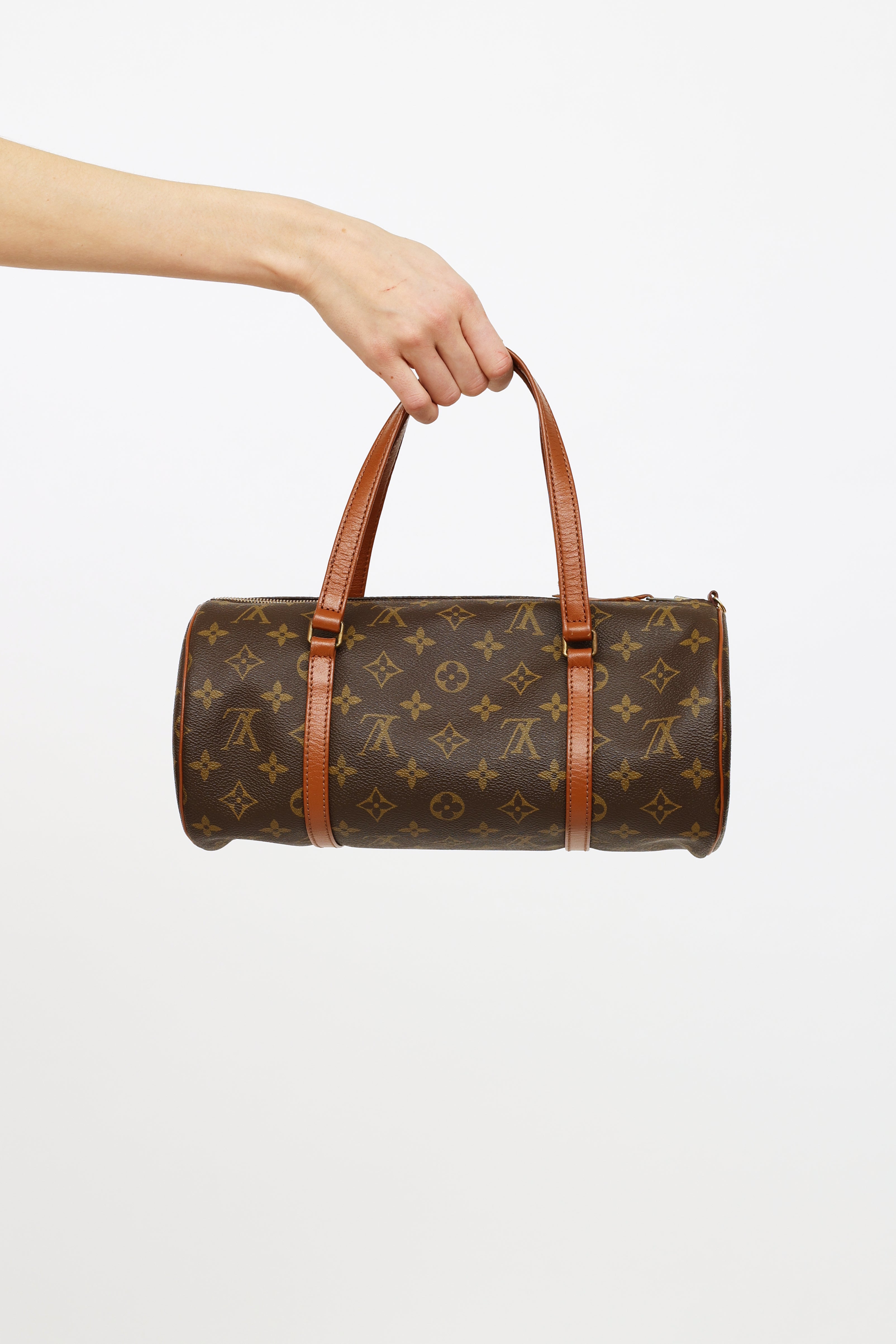 Pre-owned Louis Vuitton Papillon bag in brown features monogram coated canvas two brown top handles, brown cross-grain leather interior, brass hardware, top zipper closure and matching detachable mini Papillon bag.