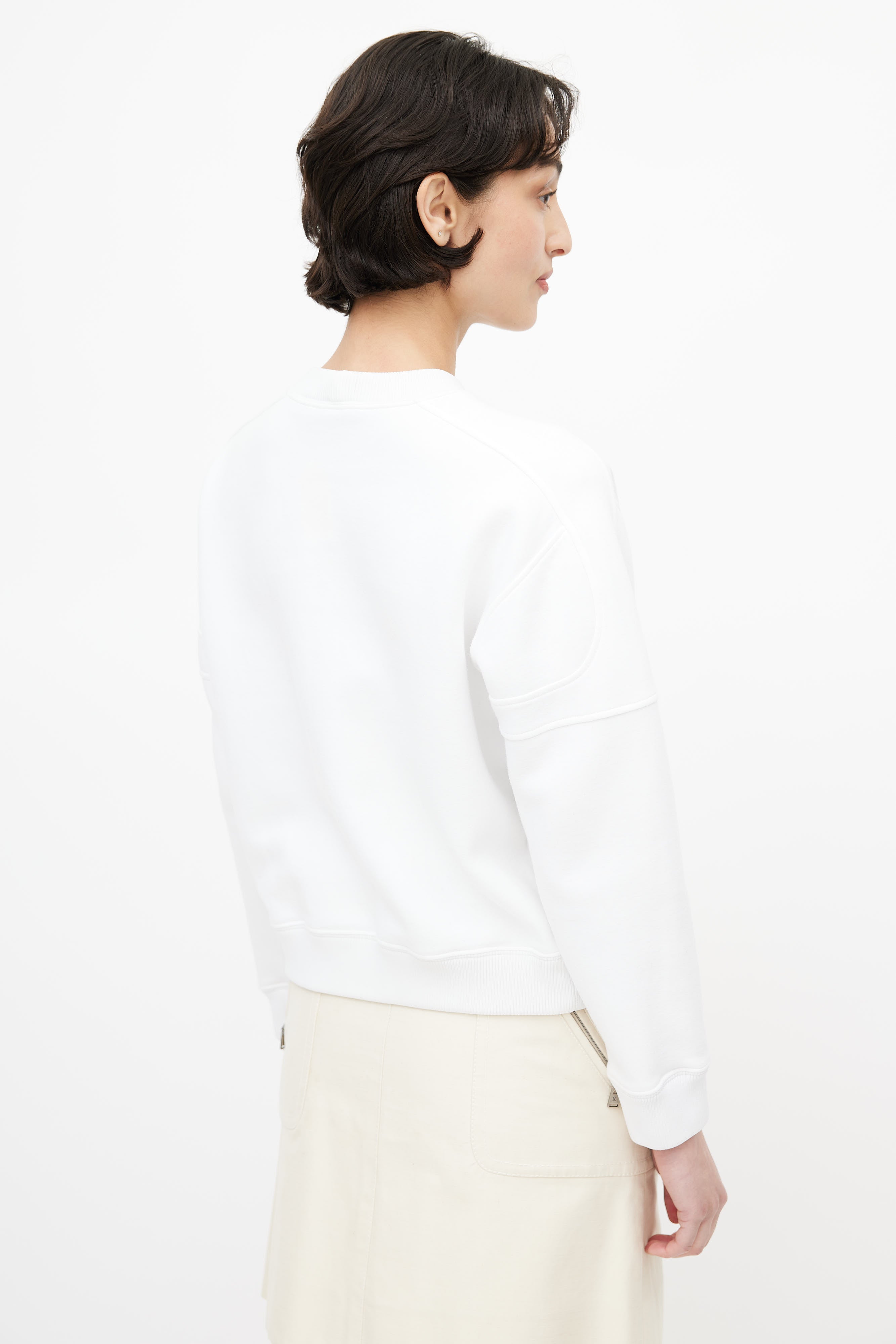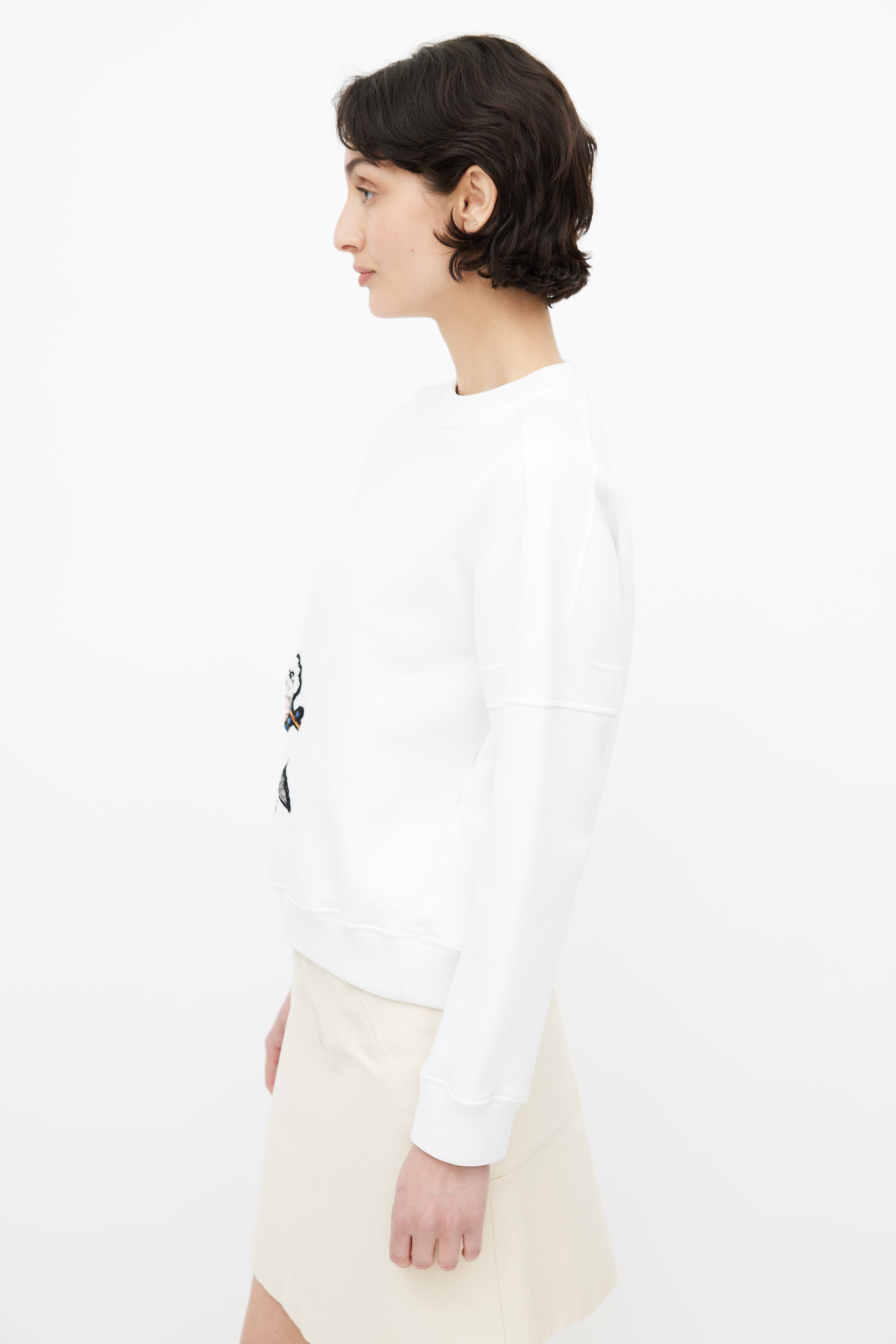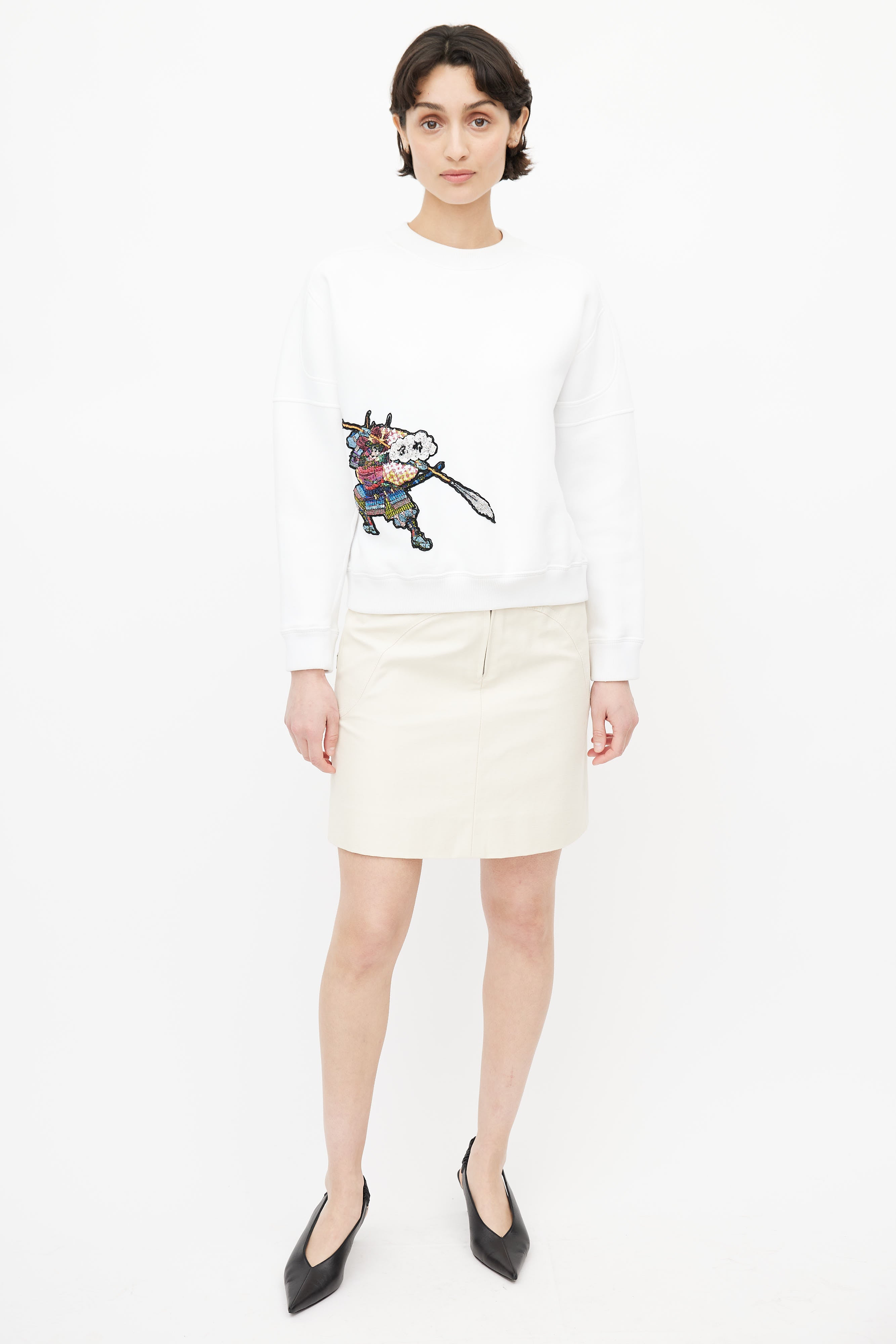 Pre-owned Louis Vuitton white sweatshirt featuring crew neckline, ribbed cuffs and hem, and multicolour samurai sequin embellishment at front.