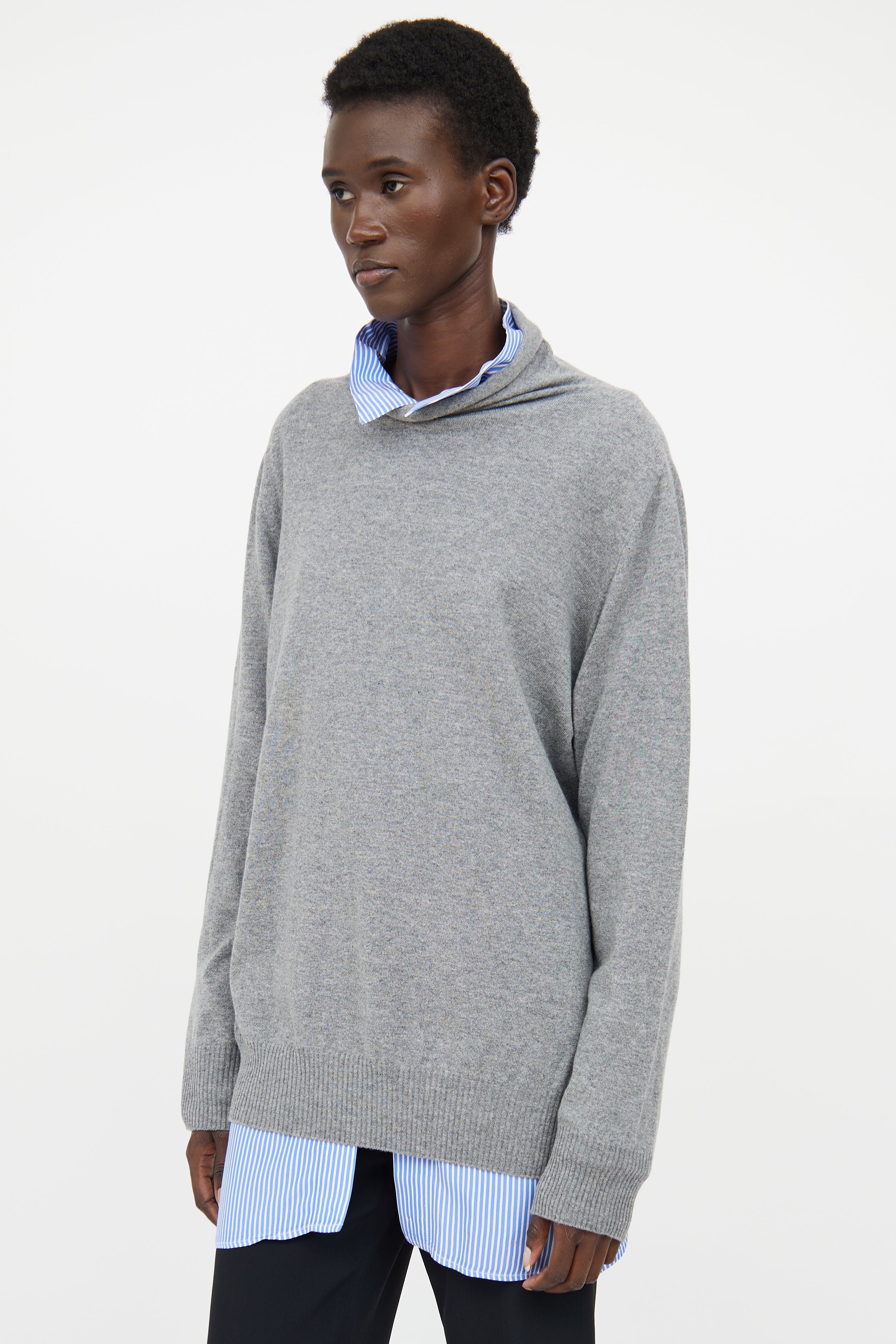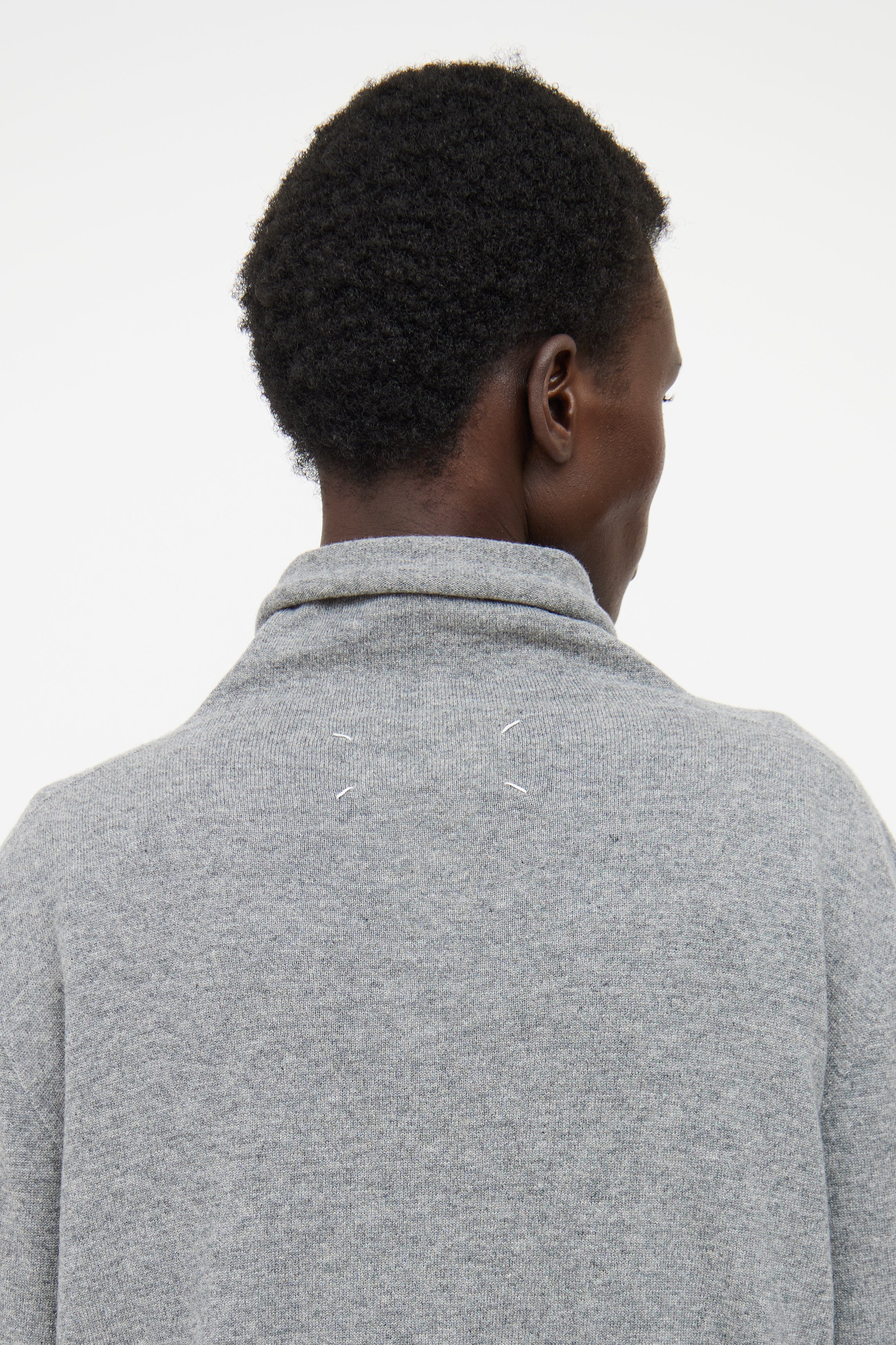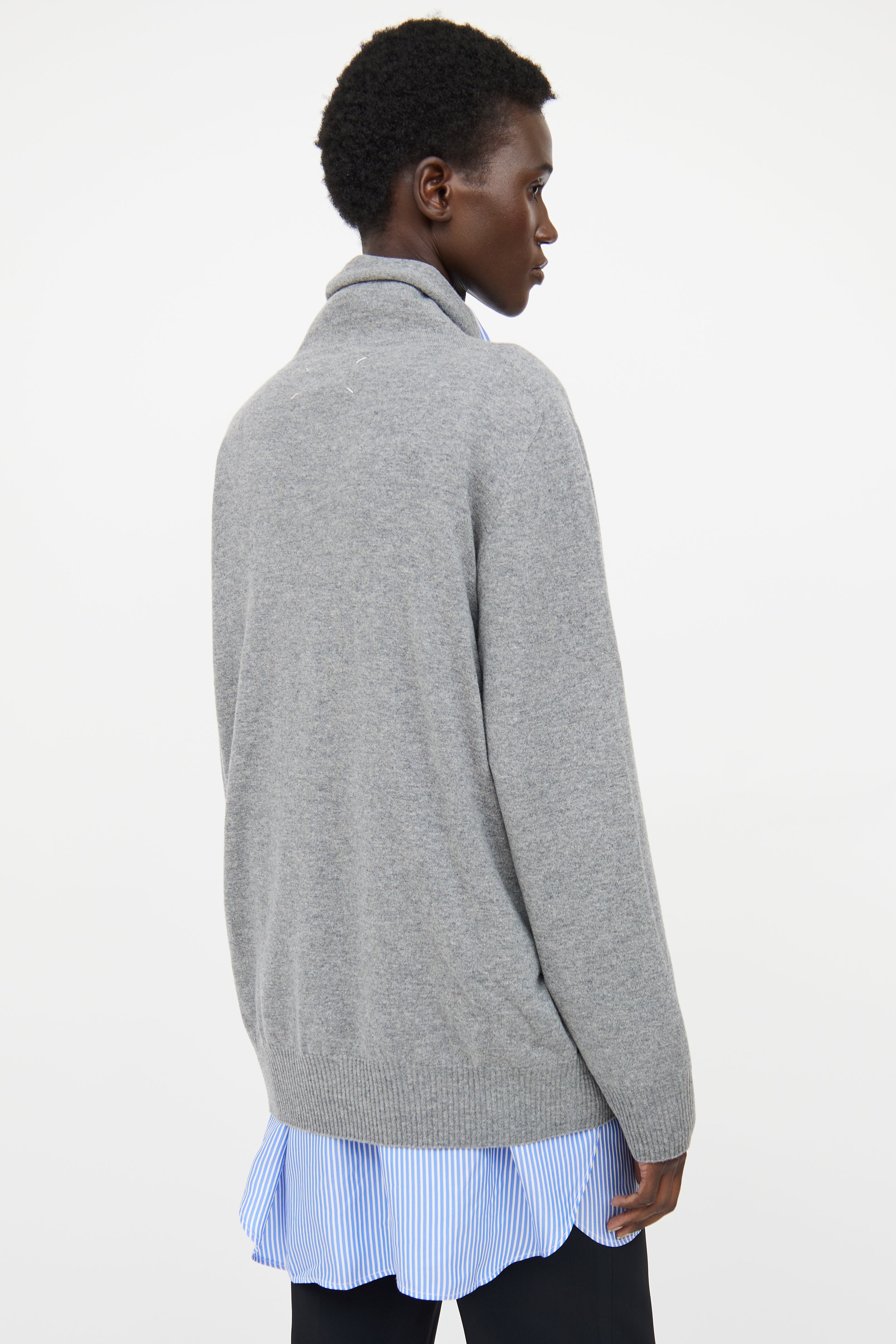 Pre-owned Maison Margiela grey long sleeve cashmere sweater featuring mock neck, ribbed cuffs and hemline.