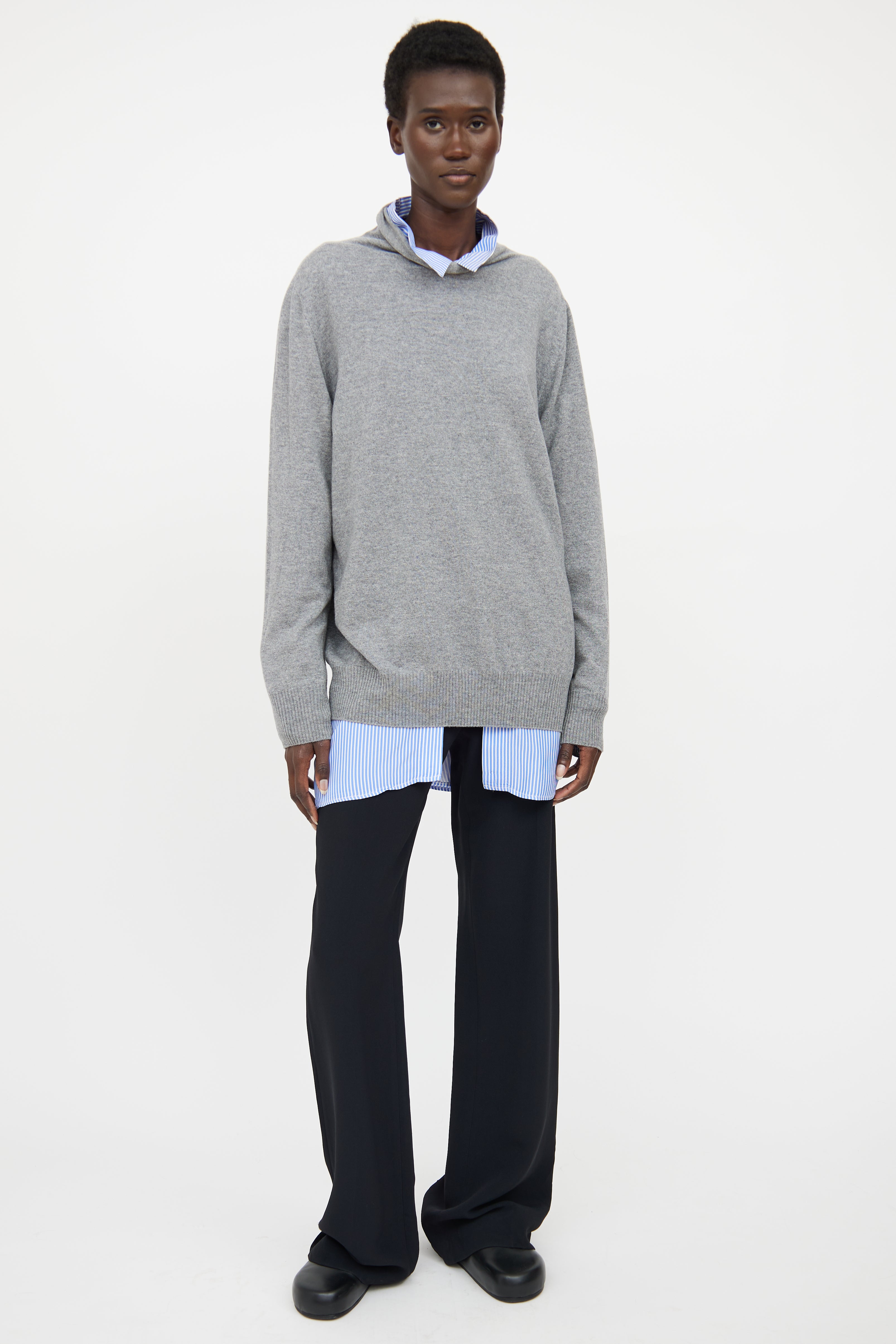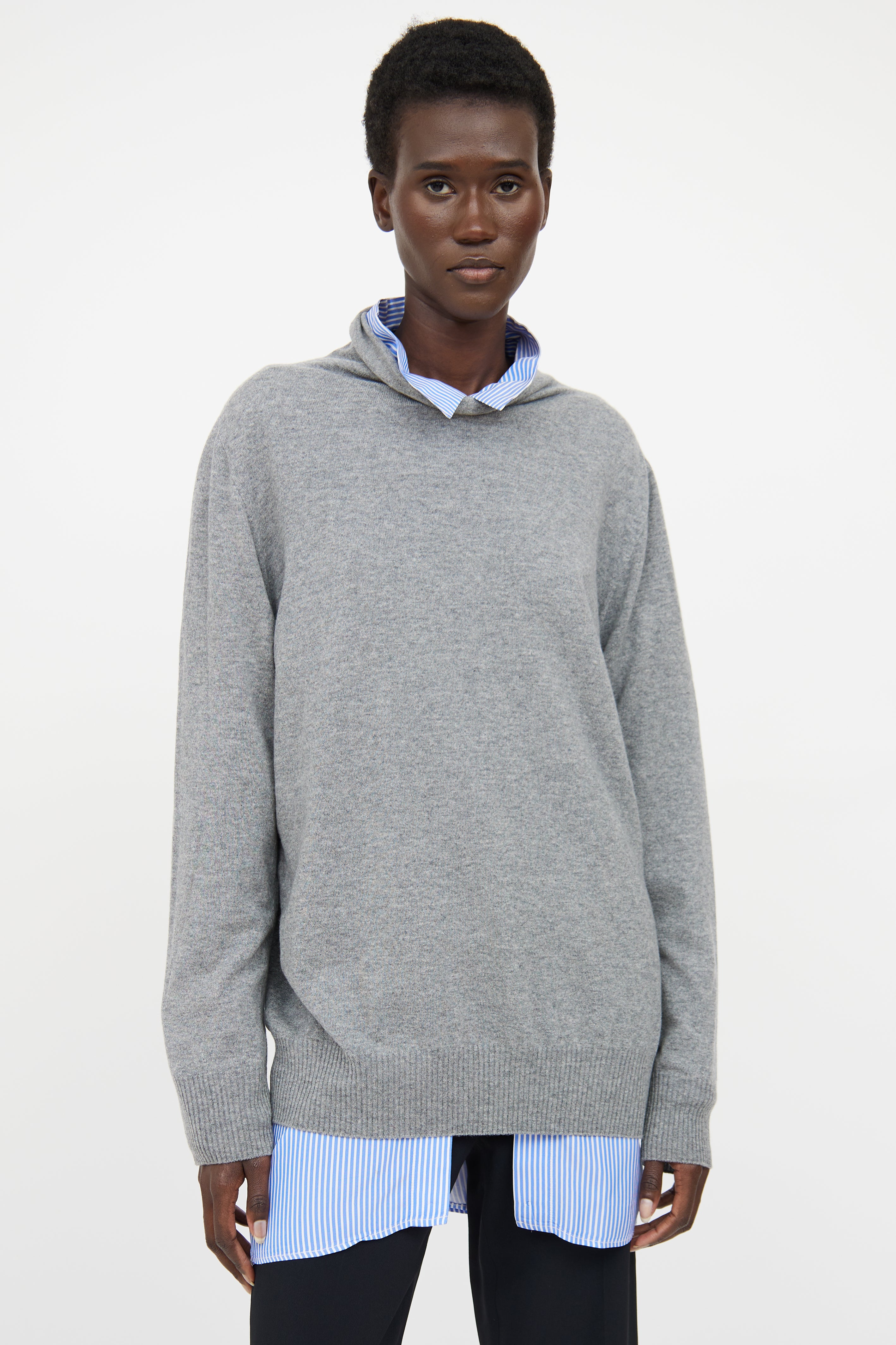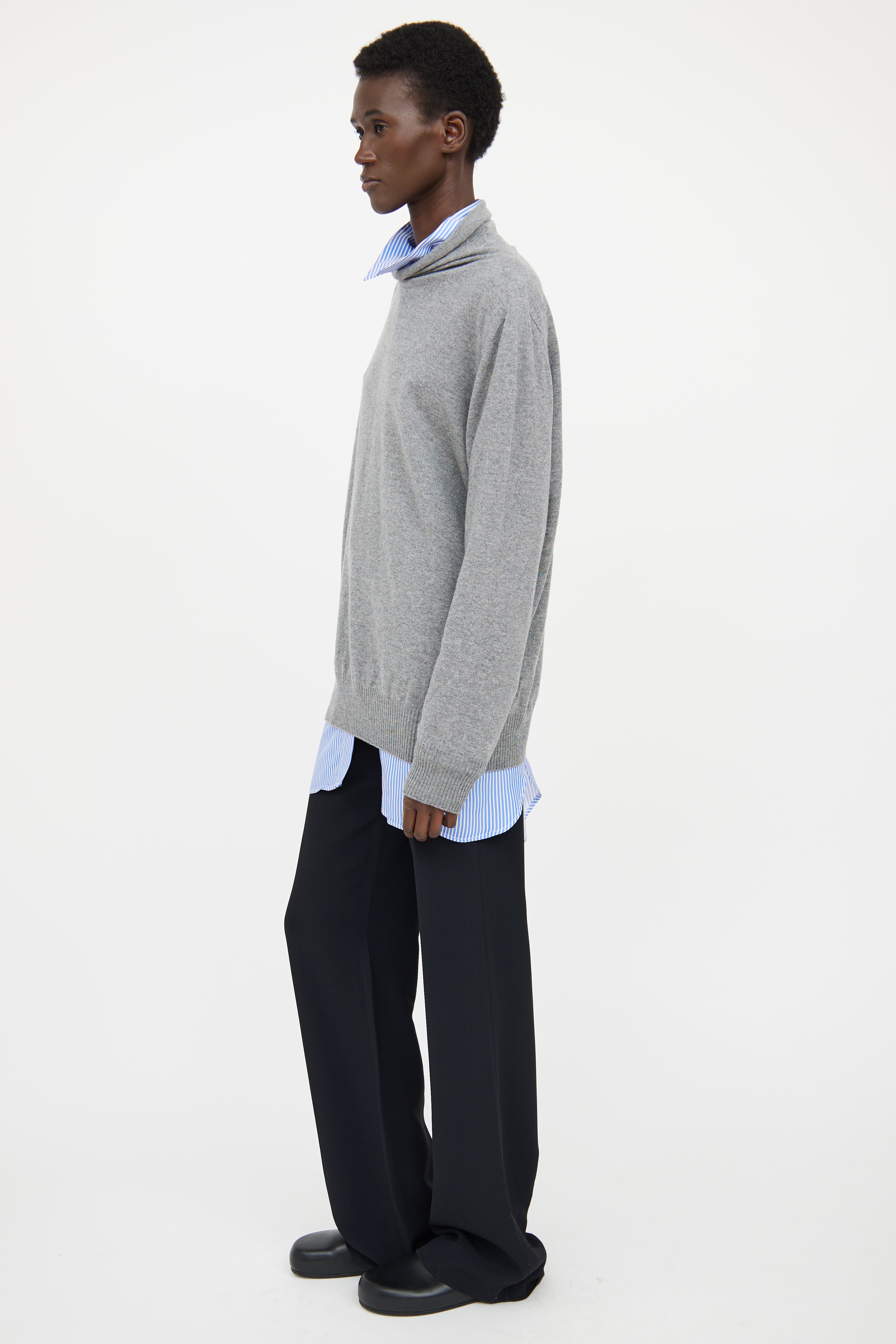 Pre-owned Maison Margiela grey long sleeve cashmere sweater featuring mock neck, ribbed cuffs and hemline.
