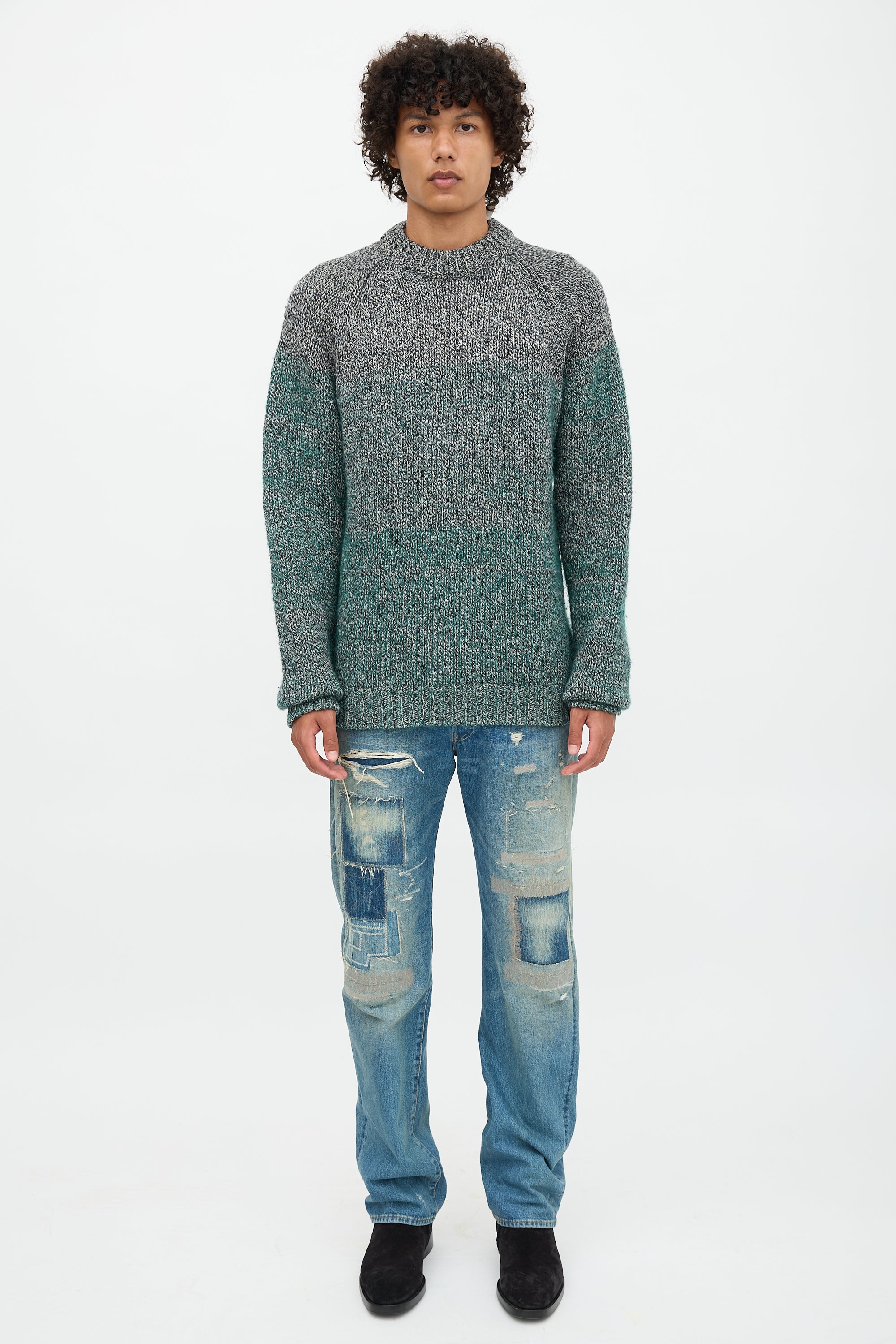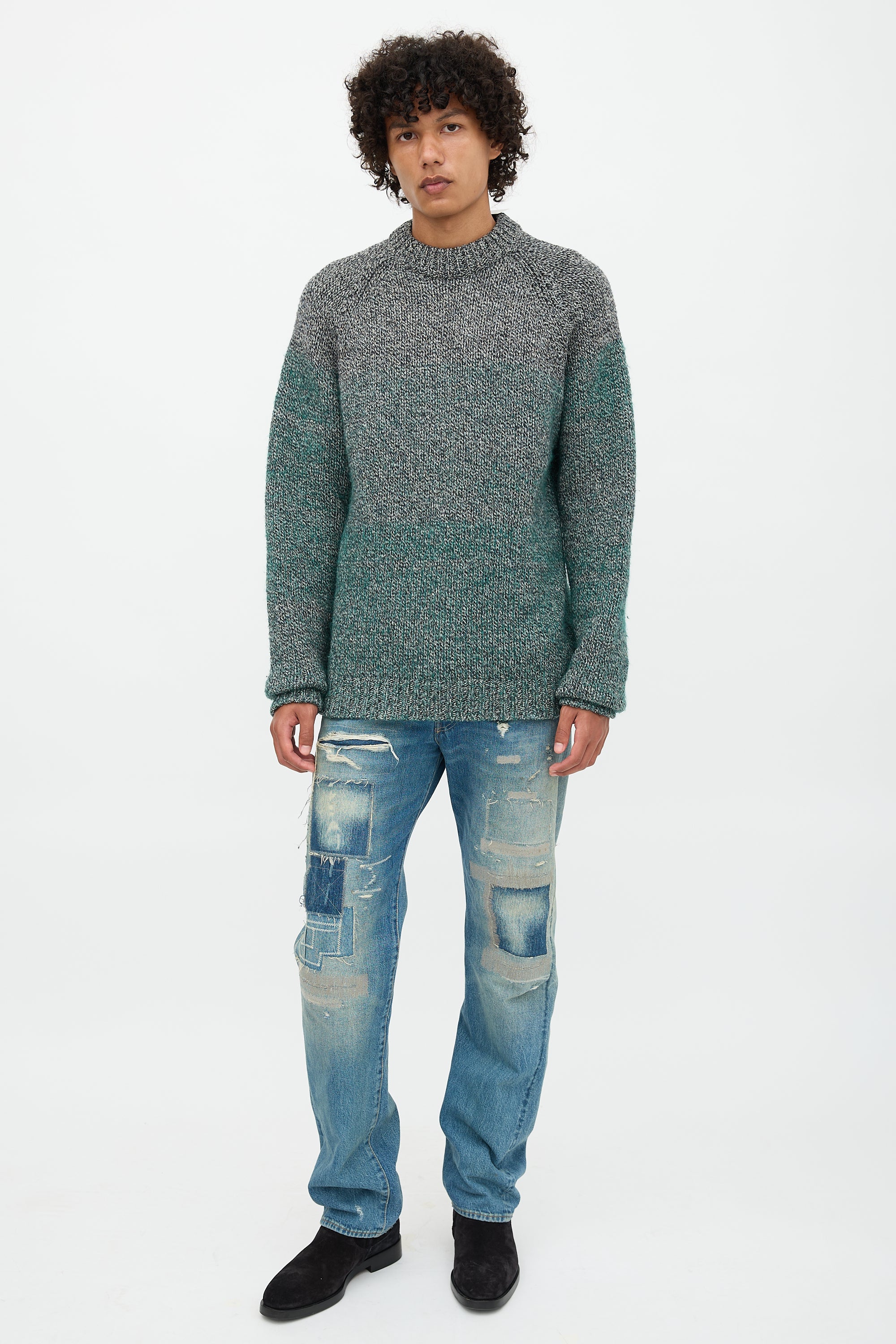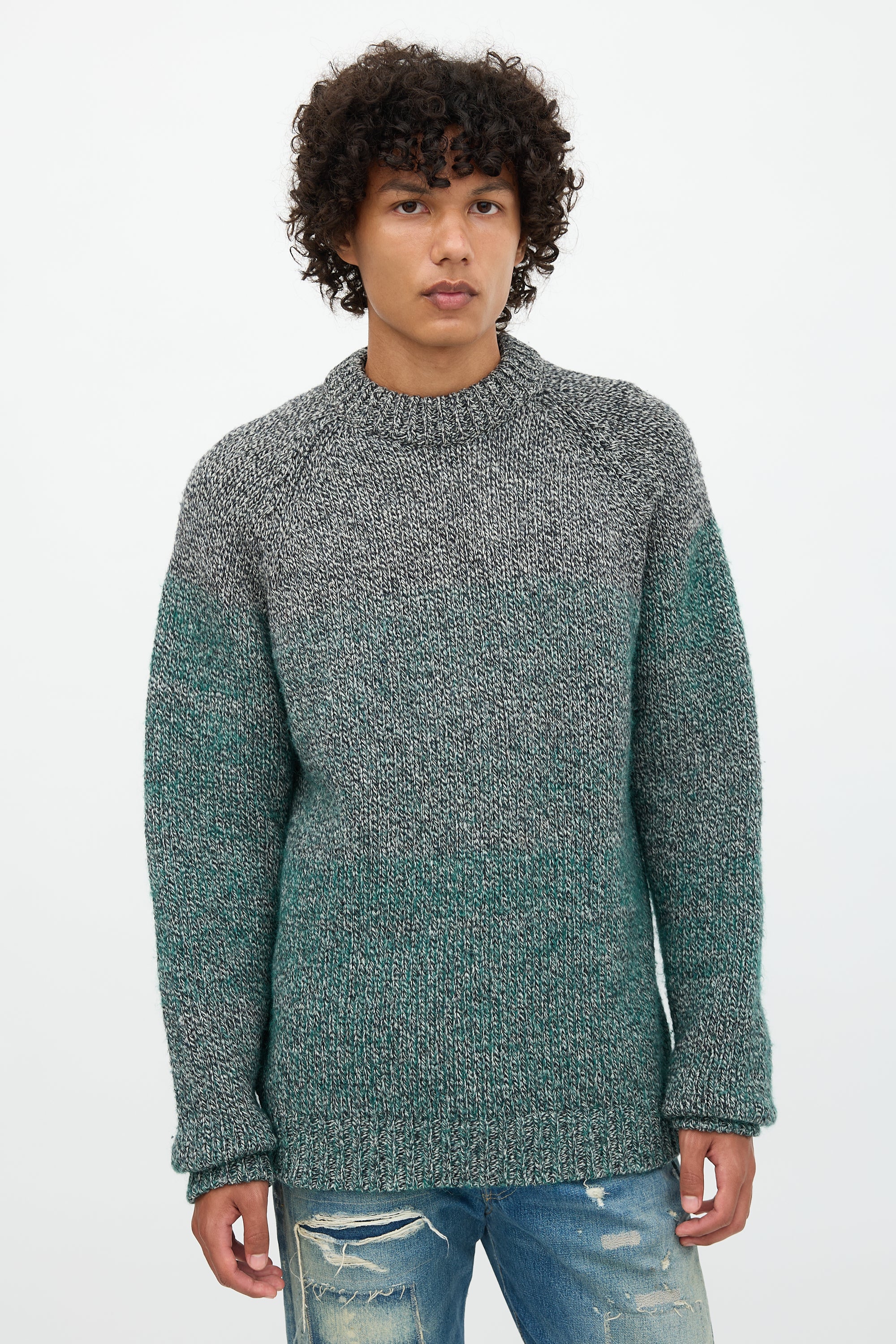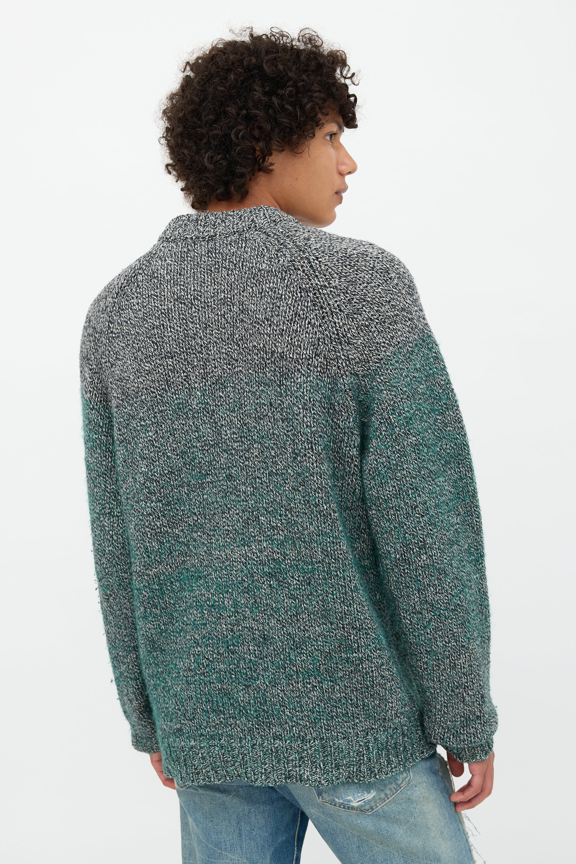 Pre-owned Marni black, white, and green sweater featuring crew neck, melange knit, gradient effect, and ribbed collar, hem, and cuffs.