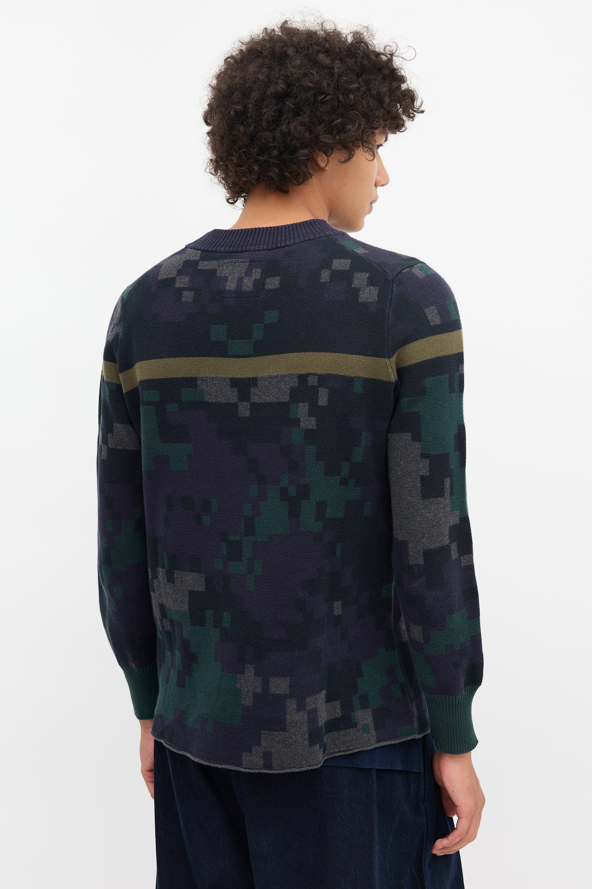 Pre-owned Sacai sweater featuring multicolour geometric intarsia throughout, crew neckline, and an unfinished hem.