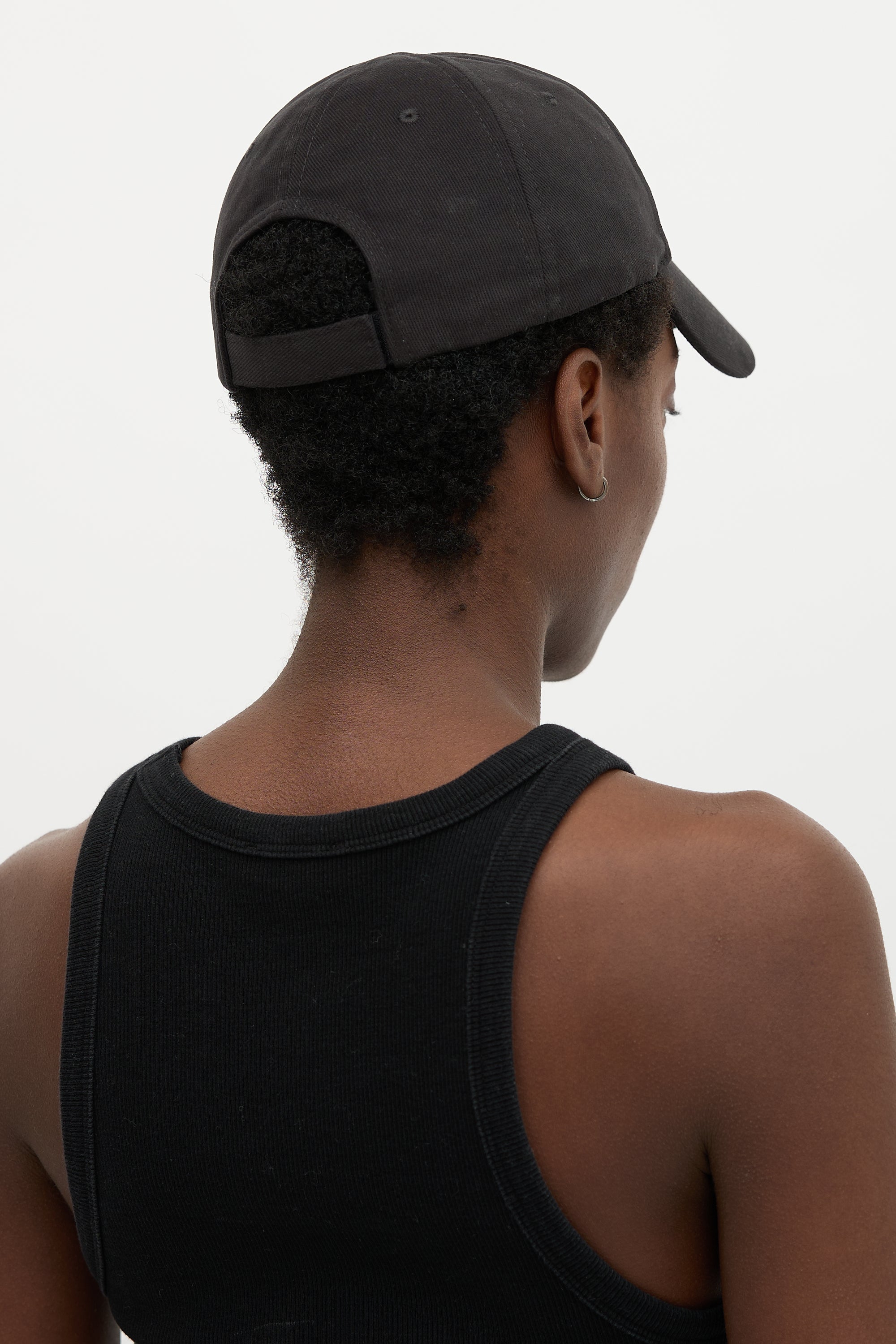 Pre-owned Balenciaga black baseball cap featuring a structured brim, white embroidered logo front, and velcro back strap. Comes with original dust bag.