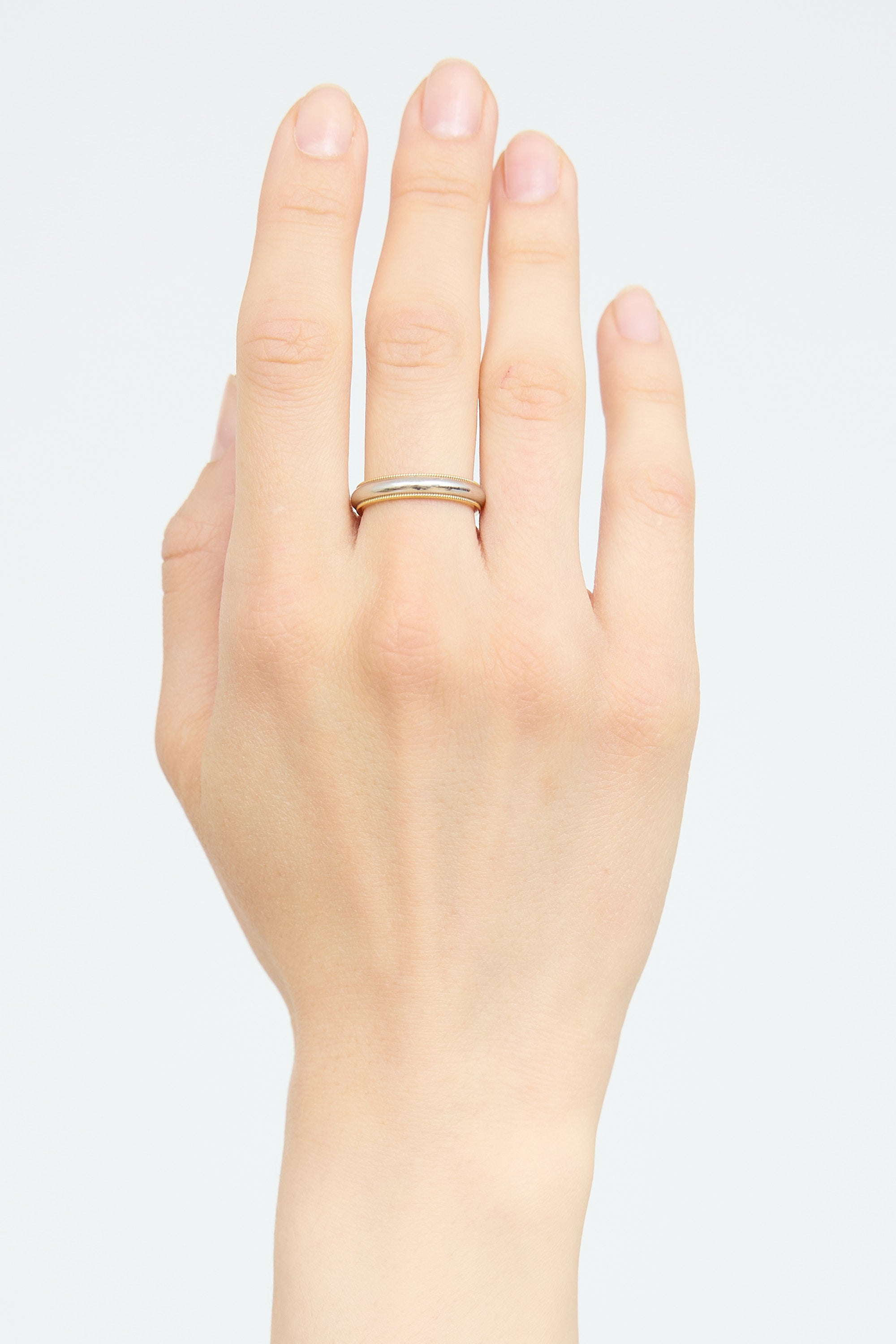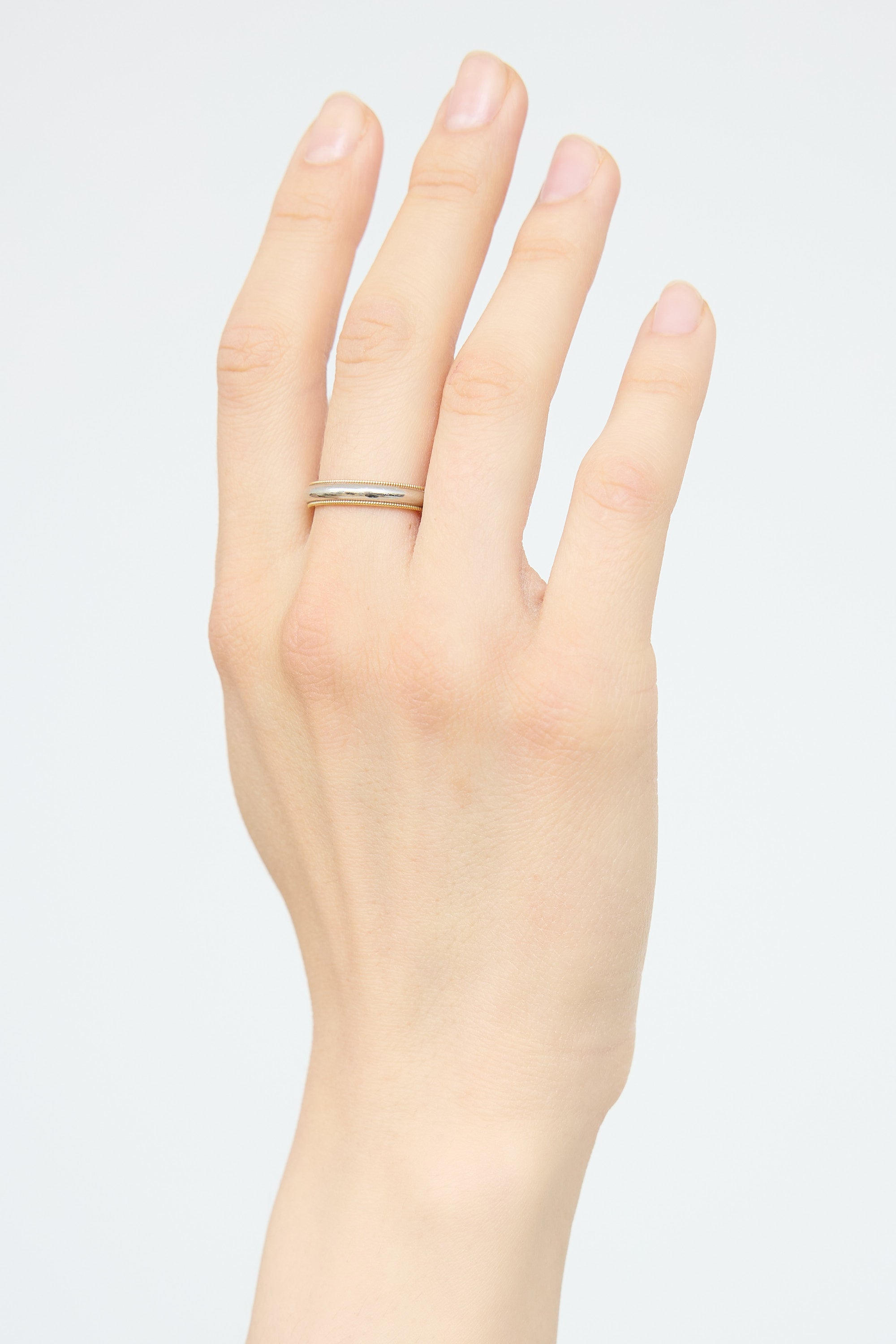 Pre-owned Tiffany & Co. 18K gold and platinum ring featuring milgrain detailing and stamped with "Tiffany&Co", "AU750", and "Pt950".