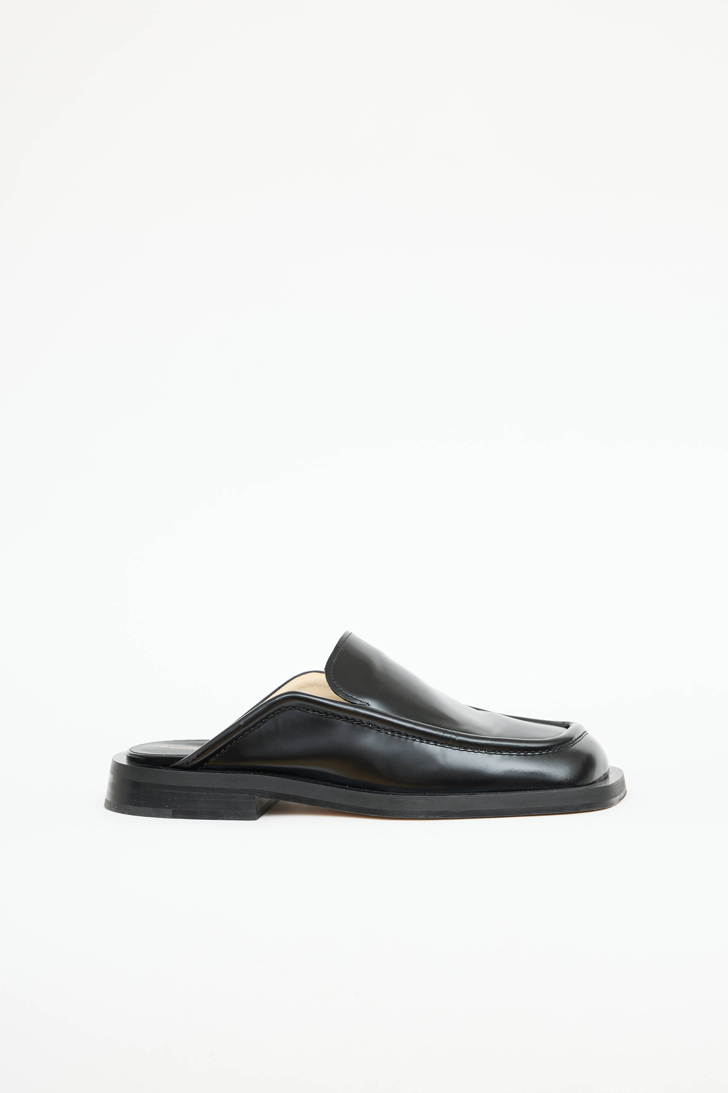 Pre-owned Proenza Schouler black mules featuring square toe, notched topline, and stacked heel.