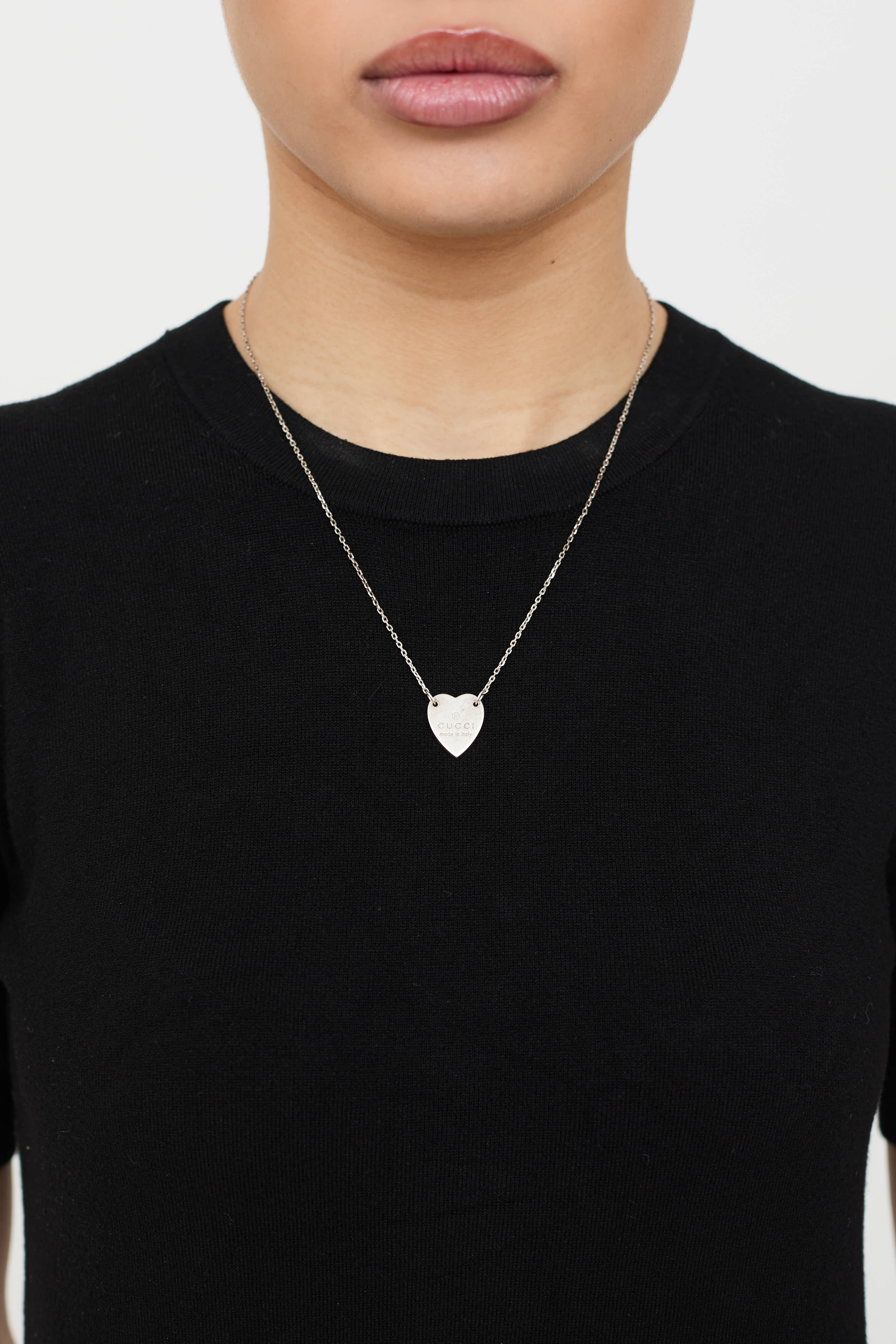 Gucci Sterling Silver Heart Logo Necklace